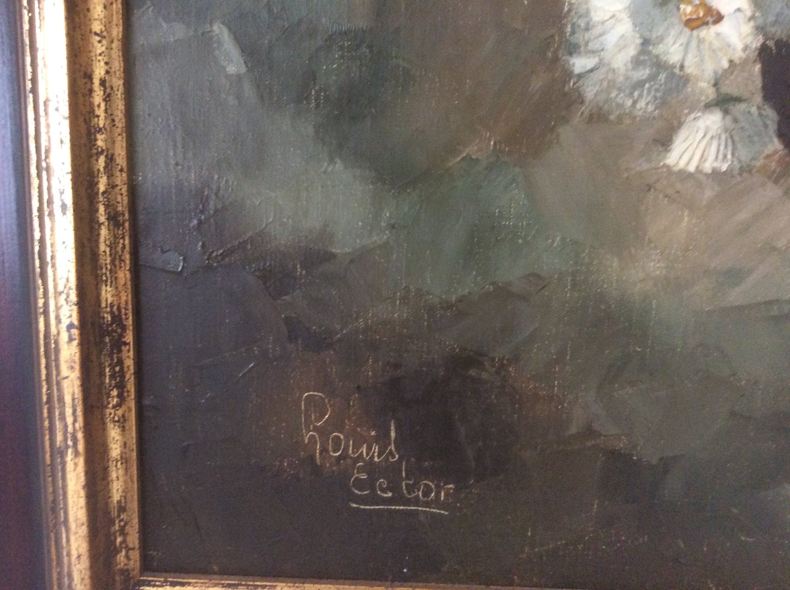Louis Ector is een Brabantse schilder van de vorige eeuw. Hij maakte vooral landschappen en stillevens. Werken bevinden zich in museum Kempenland Eindhoven. Dit schilderstuk heeft hij op mijn verzoek gemaakt. Moet helaas verkopen vanwege verhuizen naar een kleiner appartement.