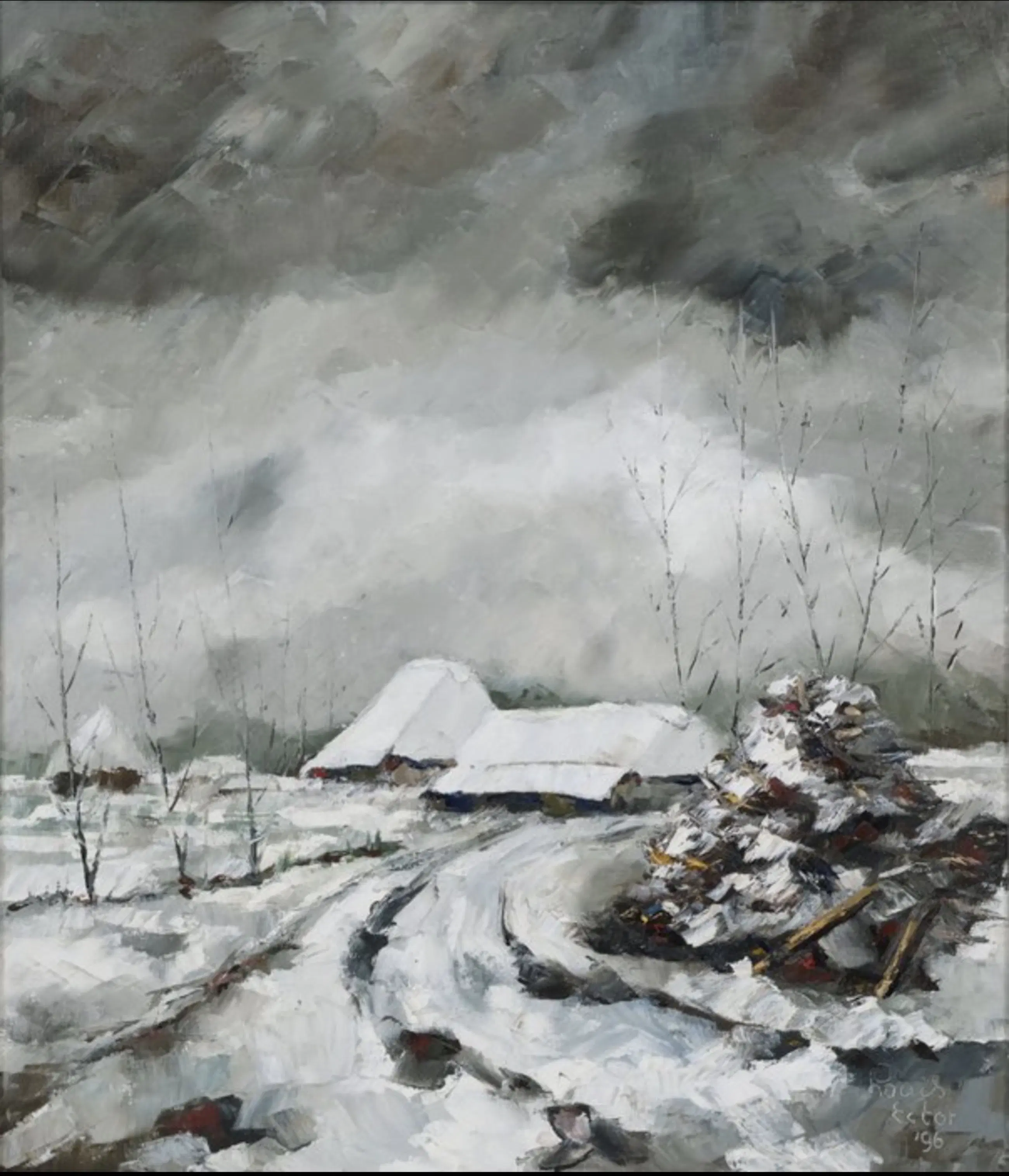 Winterse stilte op het platteland. Eén prachtig schilderij uit het Eindhoven museum.