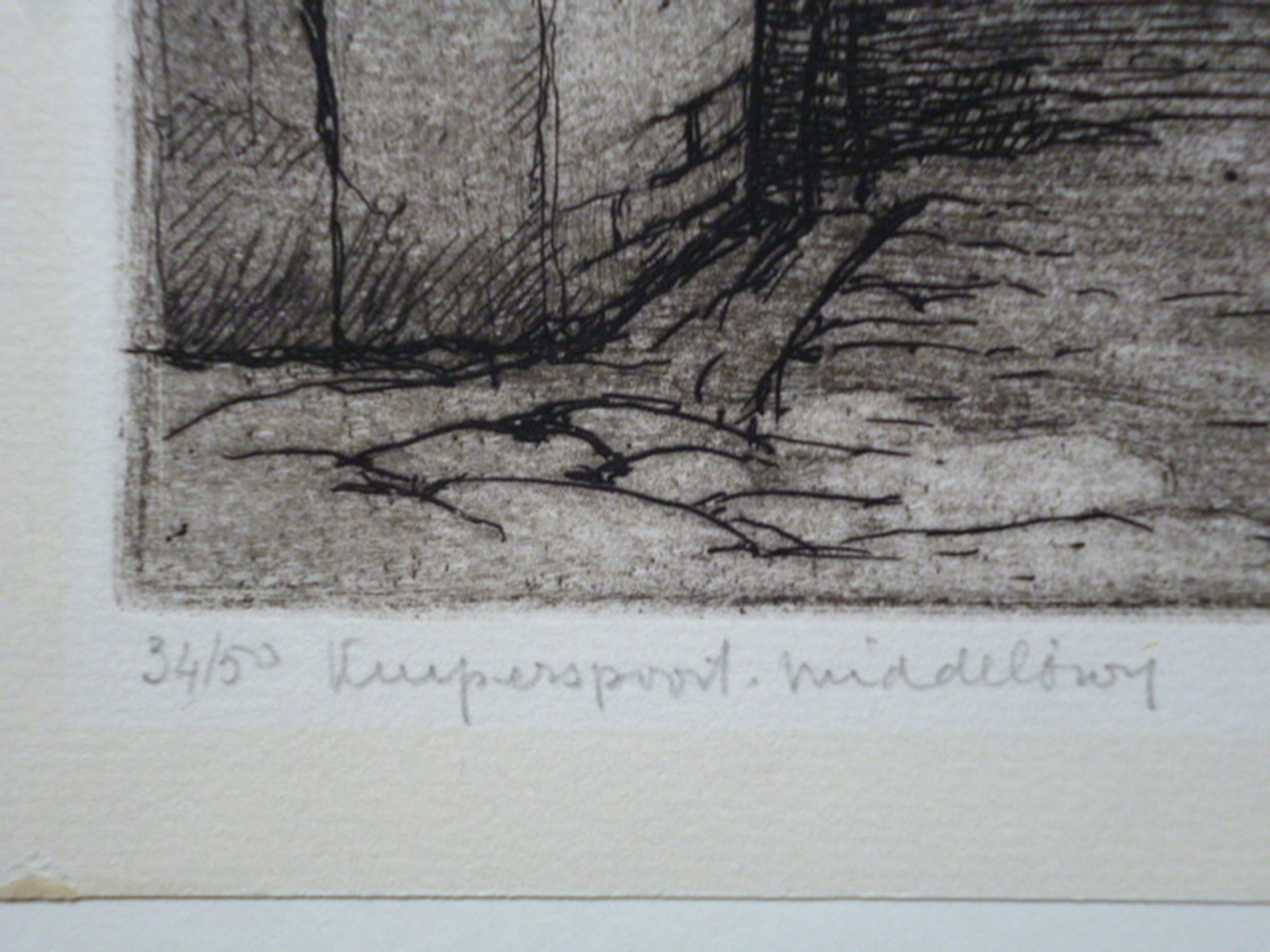 Ets, potlood gesigneerd rechtsonder. Genummerd 34/50 en getiteld linksonder.