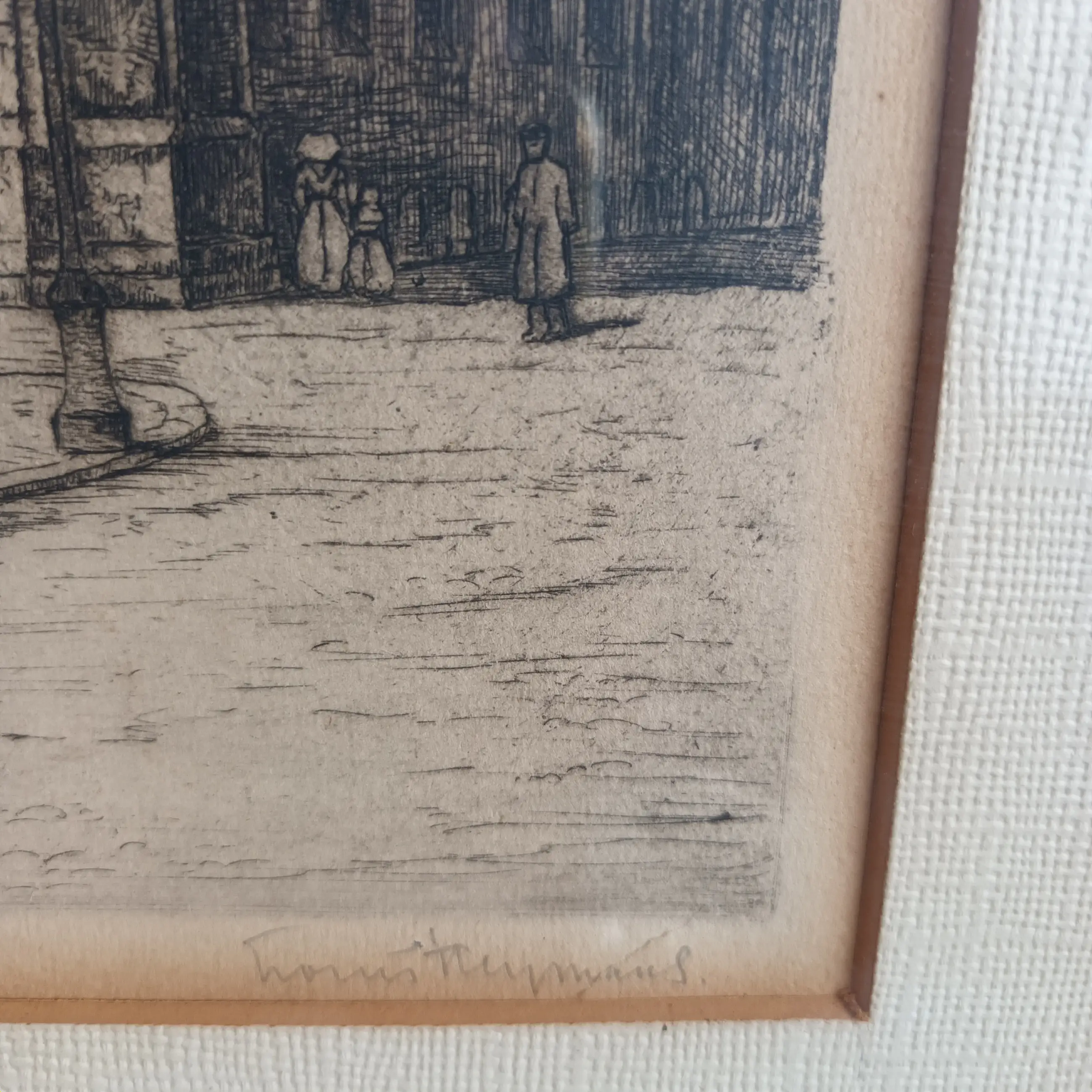 Klein vochtvlekje onderaan de prent.