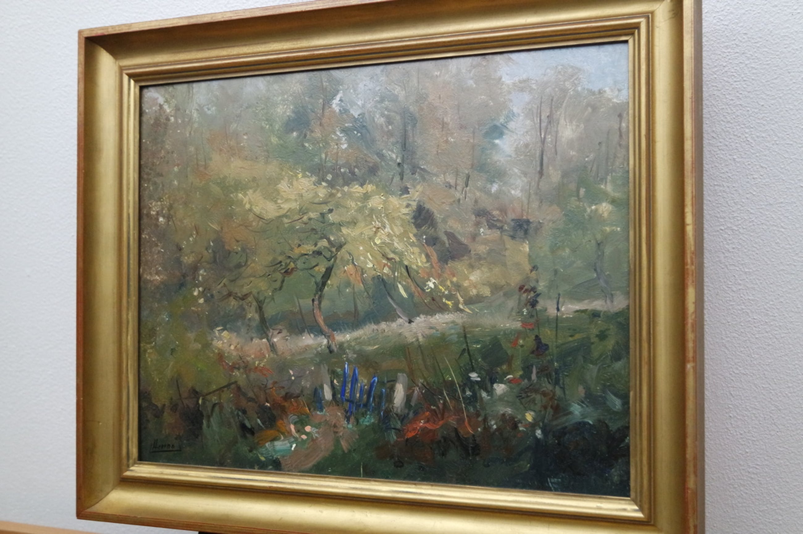 Een prachtig bosgezicht van de Belgische kunstenaar Louis Henno (1903-1990). Met een mooie lijst. Gesigneerd links onder. Afmetingen met lijst: 54 cm. x 44 cm. Boardmaat: 46 cm. x 35,5 cm. Conditie: heel goed. Het schilderij wordt goed gepakt en verzekerd verzonden. Afhalen is mogelijk. Info: www.rkd.nl/henno.