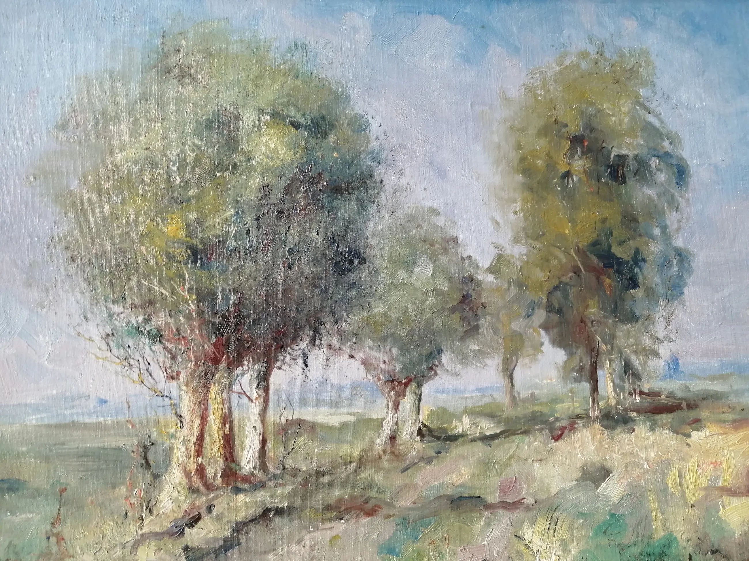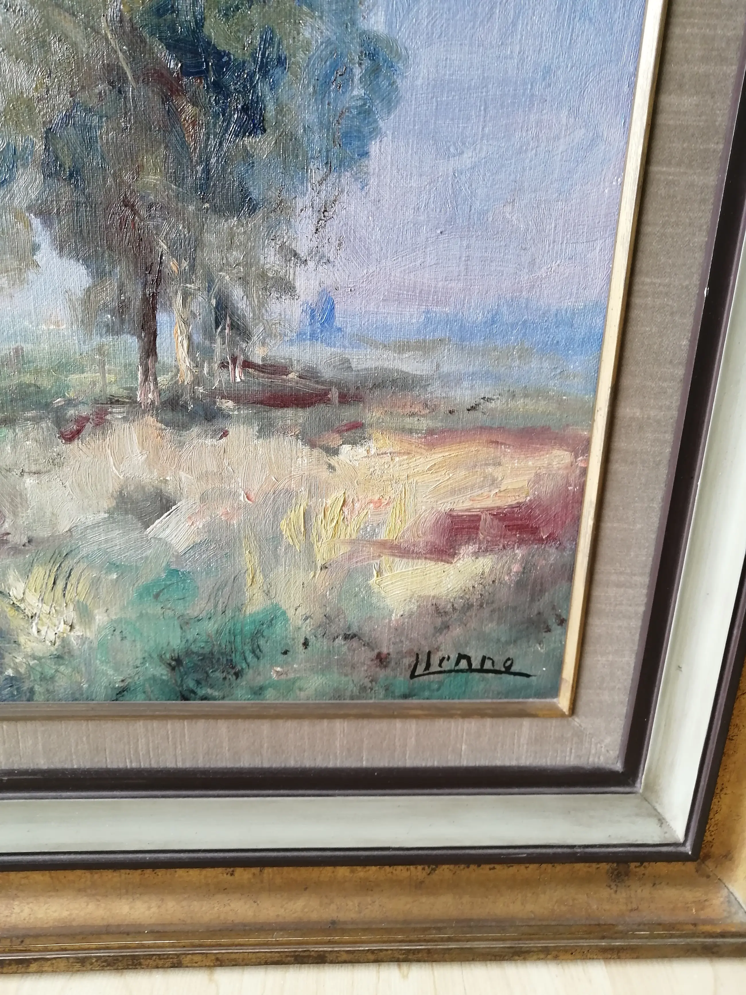 Het schilderij is in onaangetaste staat. De omlijsting is zeer licht beschadigd.