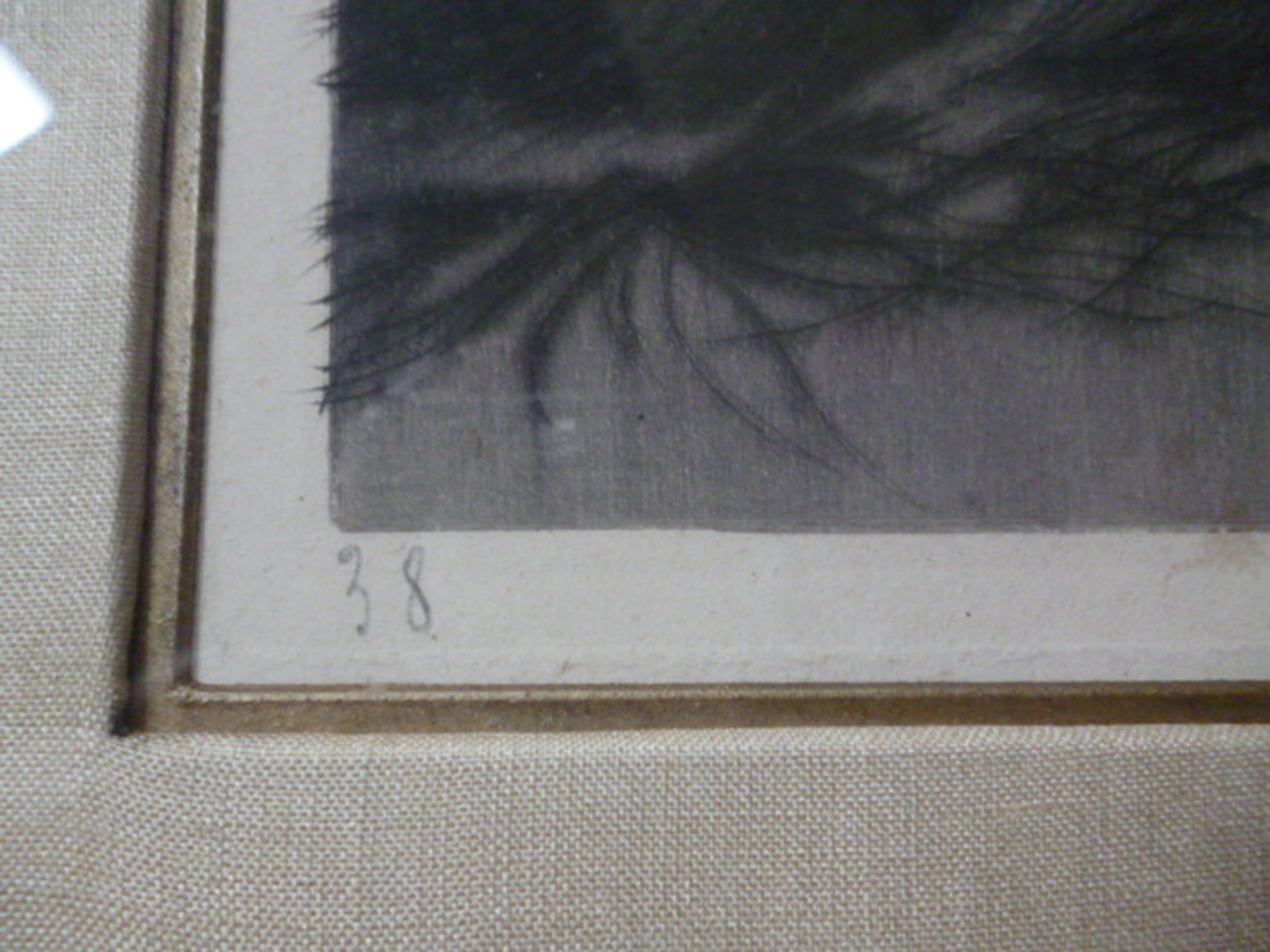 Kleurenets met aquatint uit 1921, potlood gesigneerd rechtsonder. Genummerd 38 linksonder.