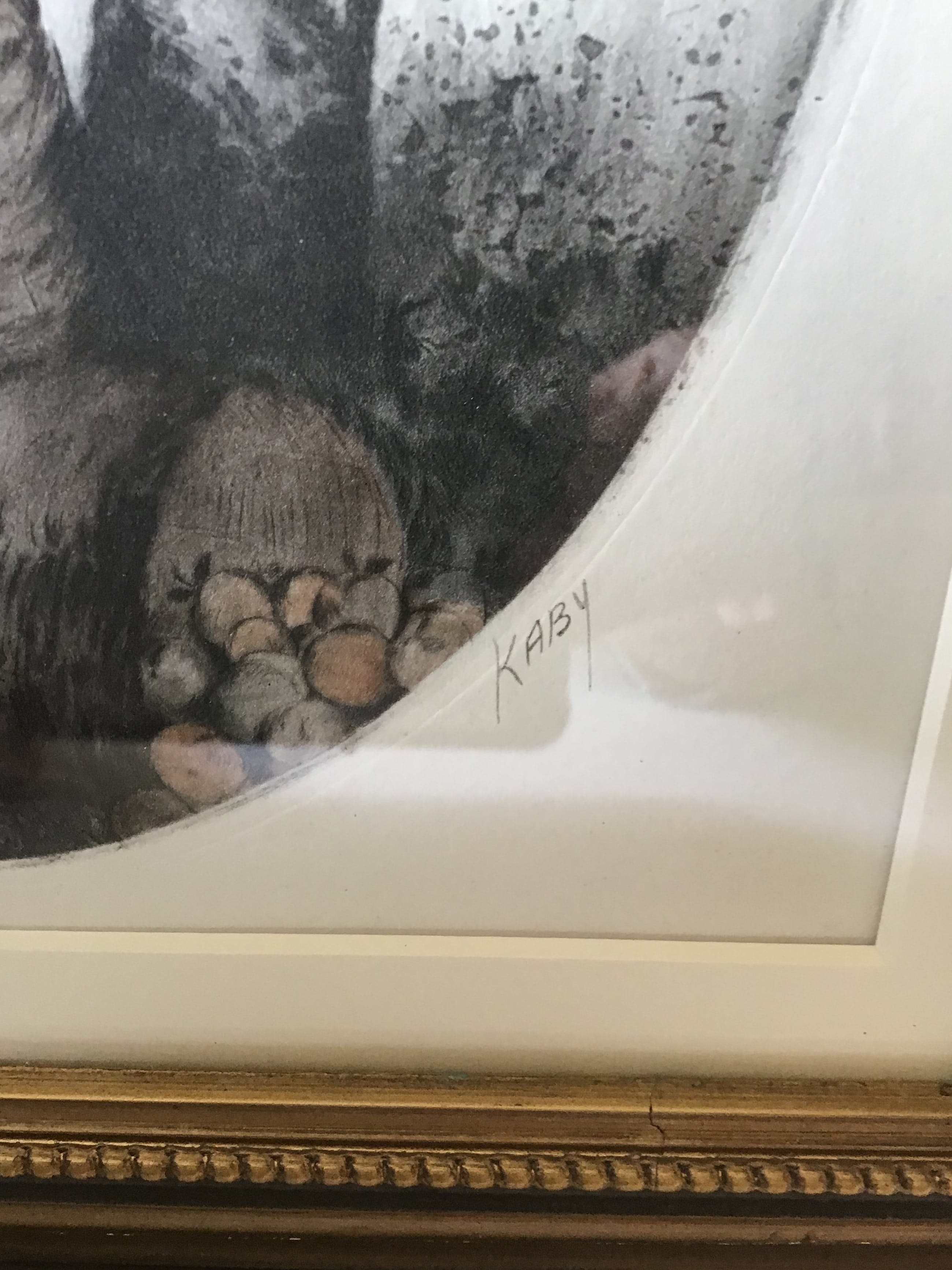 Louis Icart 1888-1950Dame voor vogelkooi Gesigneerd rechtsonder Kaby19x25 achter glasLijst 34x40