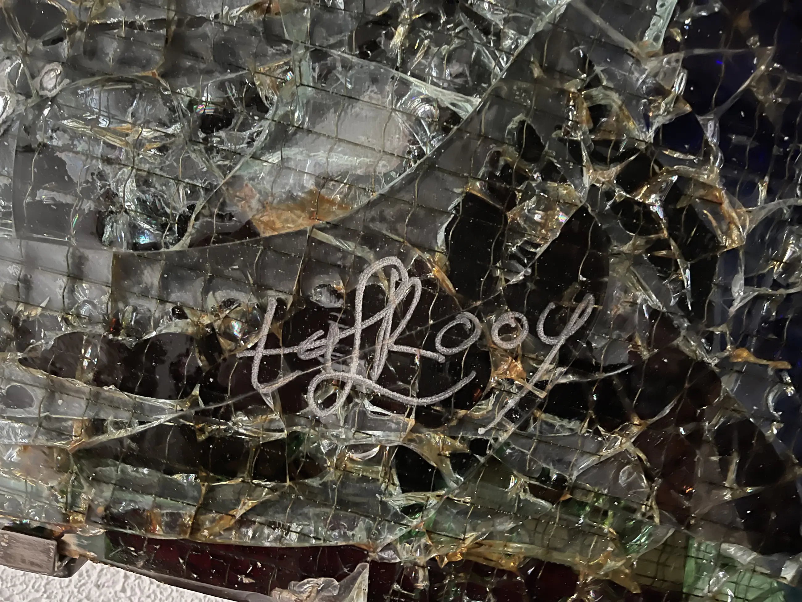 Het glas is niet glad, sommige gedeeltes zijn dikker zodat het 3 dimensionaal is.