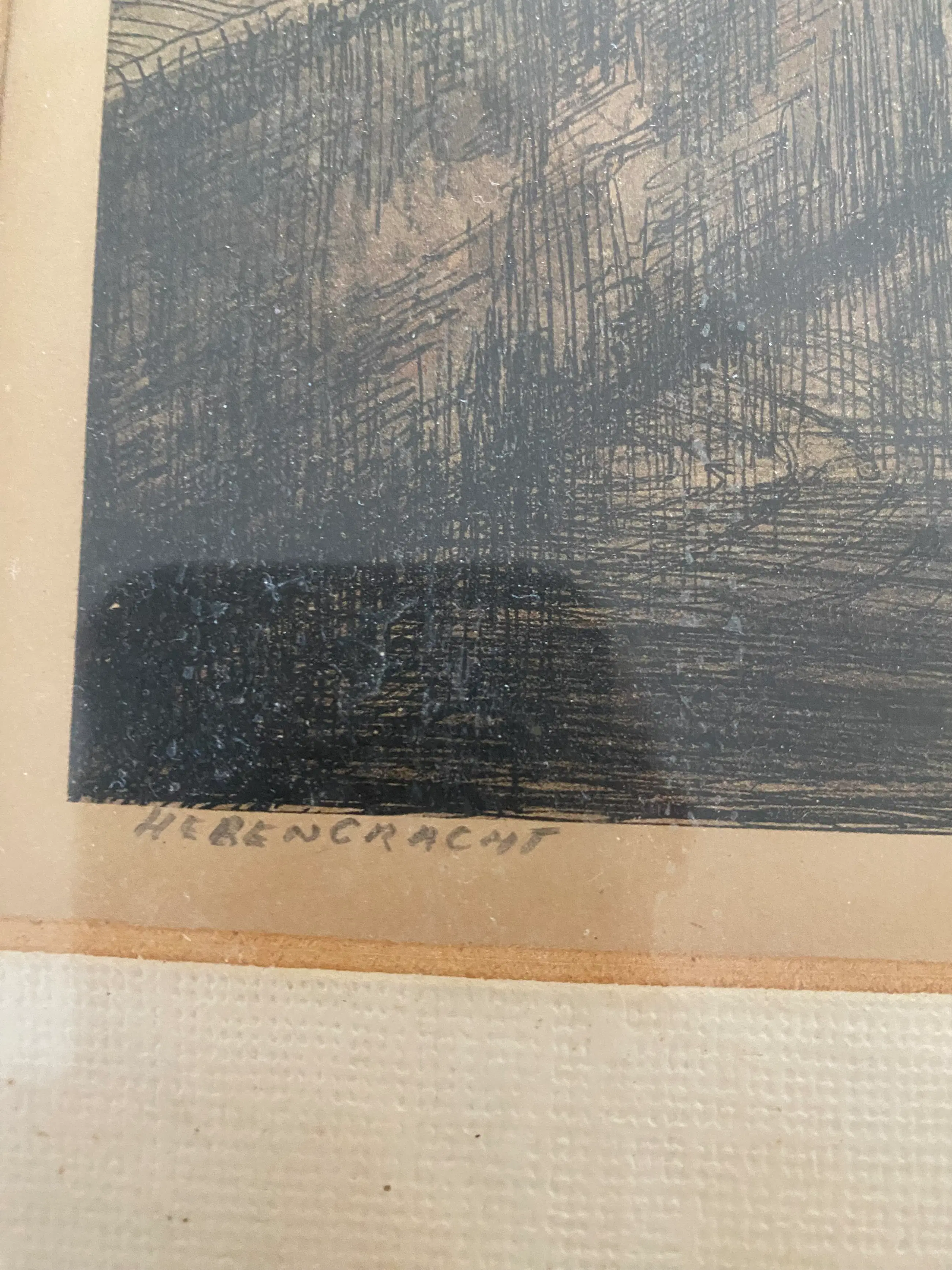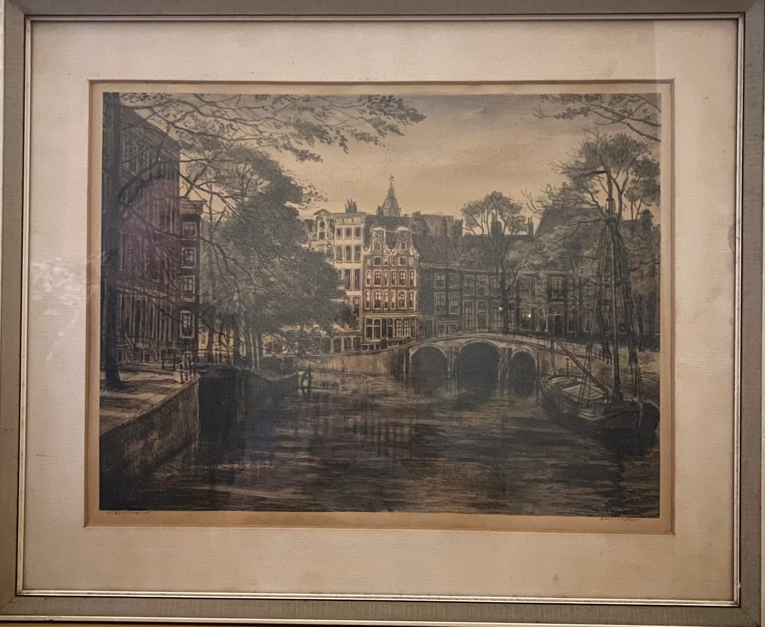 Een ets (of reproductie van een ets) van een Amsterdams grachtengezicht, Herengracht. Deze afdruk is mogelijk iets later gedrukt.