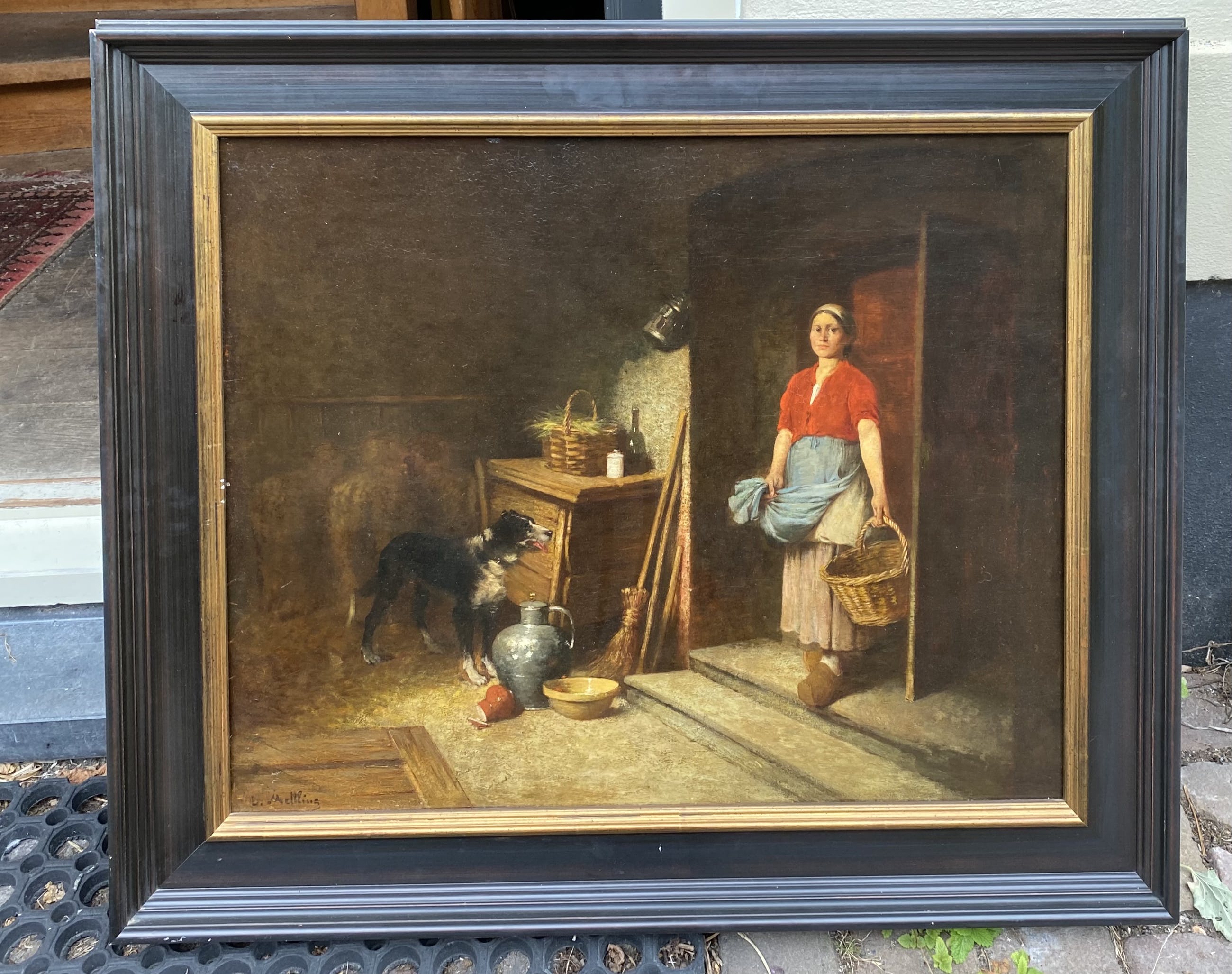 | Werk bevat oppervlaktevuil en verkleurde vernis door de tijd, de lijst bevat oppervlaktevuil en slijtschade door de tijd. | |