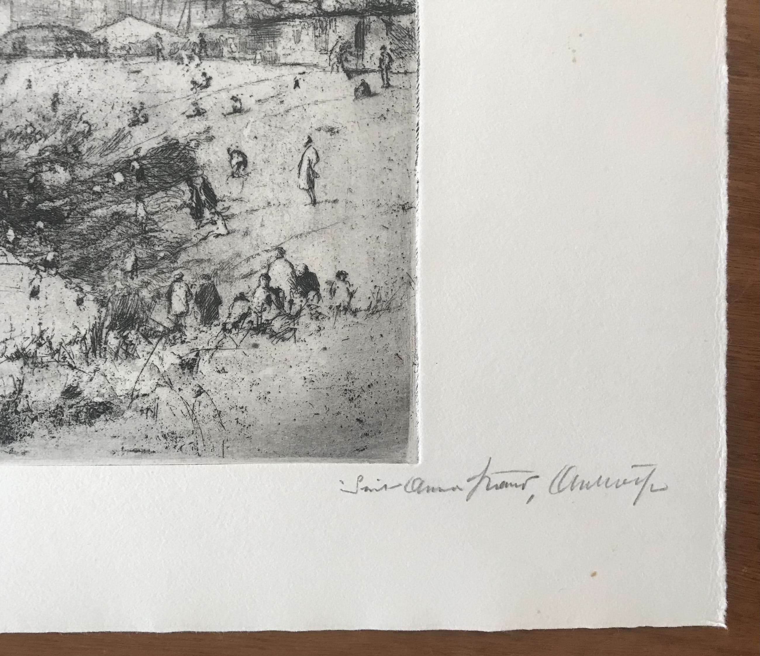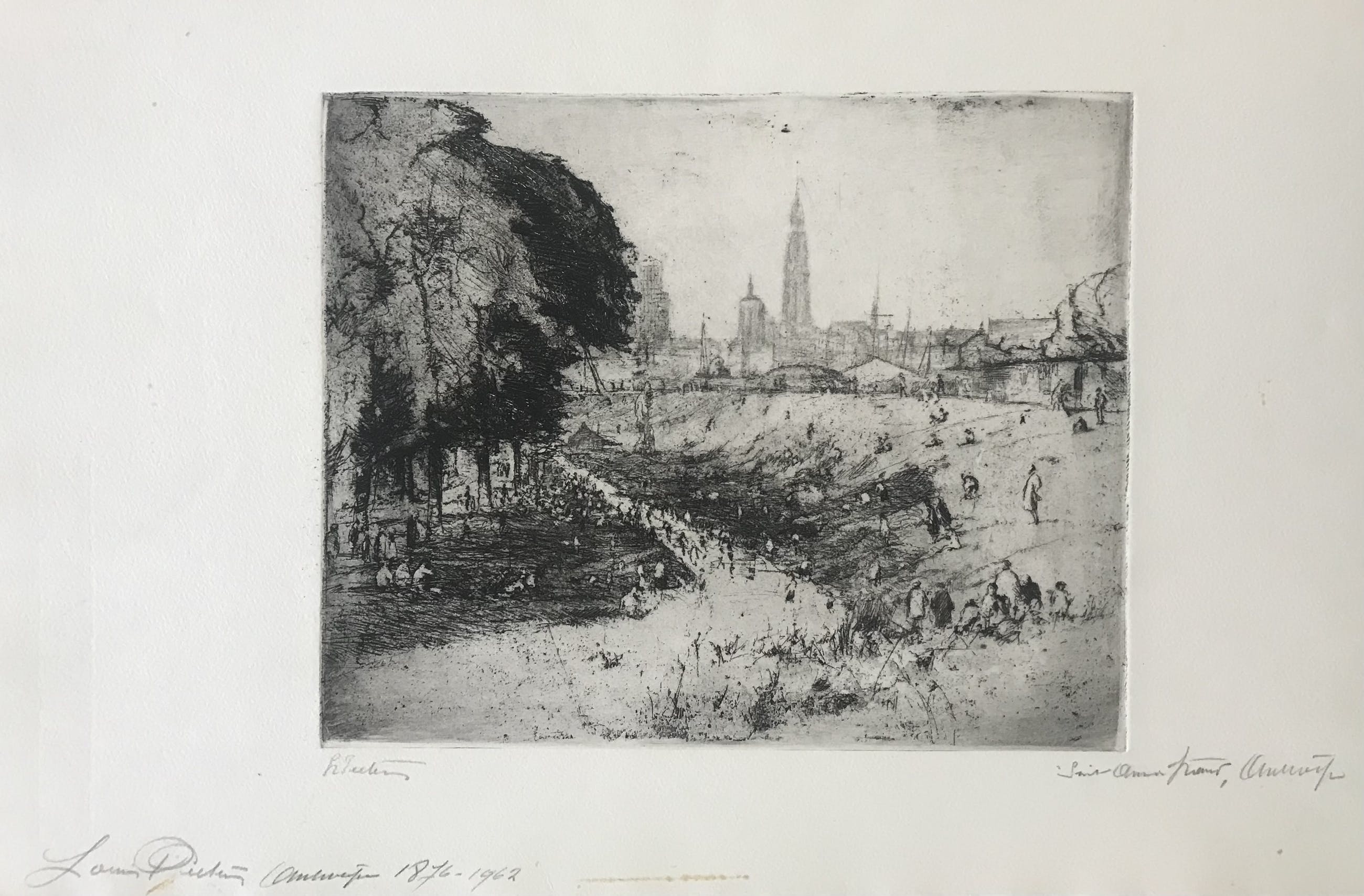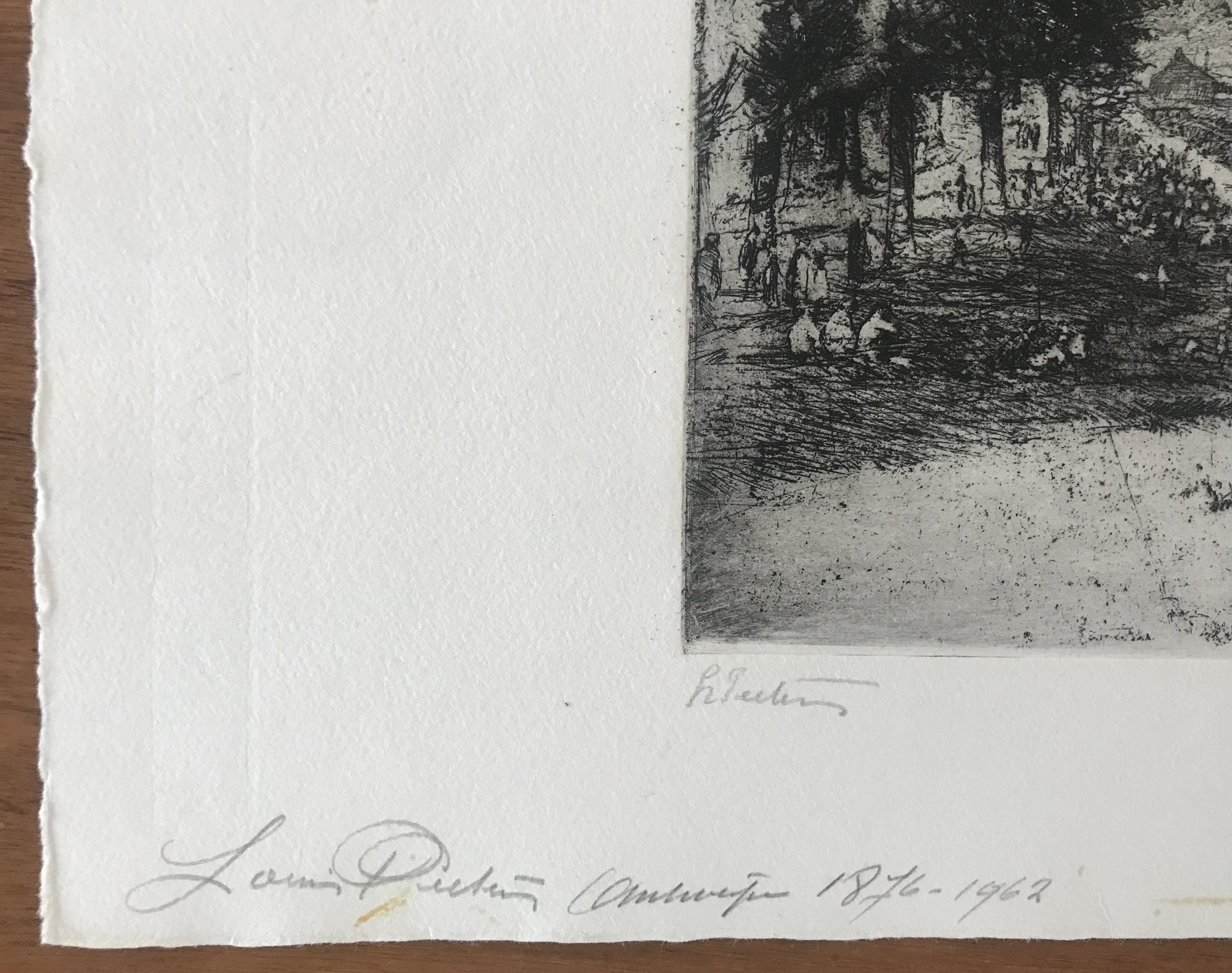 Kunstenaar: Louis Peeters (Antwerpen 1876 - 1964) Techniek: Ets Titel: "Sint Anna Strand Antwerpen" Staat: Goed Gesigneerd en getiteld in potlood door de kunstenaar. Gedrukt op 'Hahnemuhle' papier. Afmeting ets: 18 cm x 22,5 cm Totale afmetingen van het werk: 26 cm x 39 cm