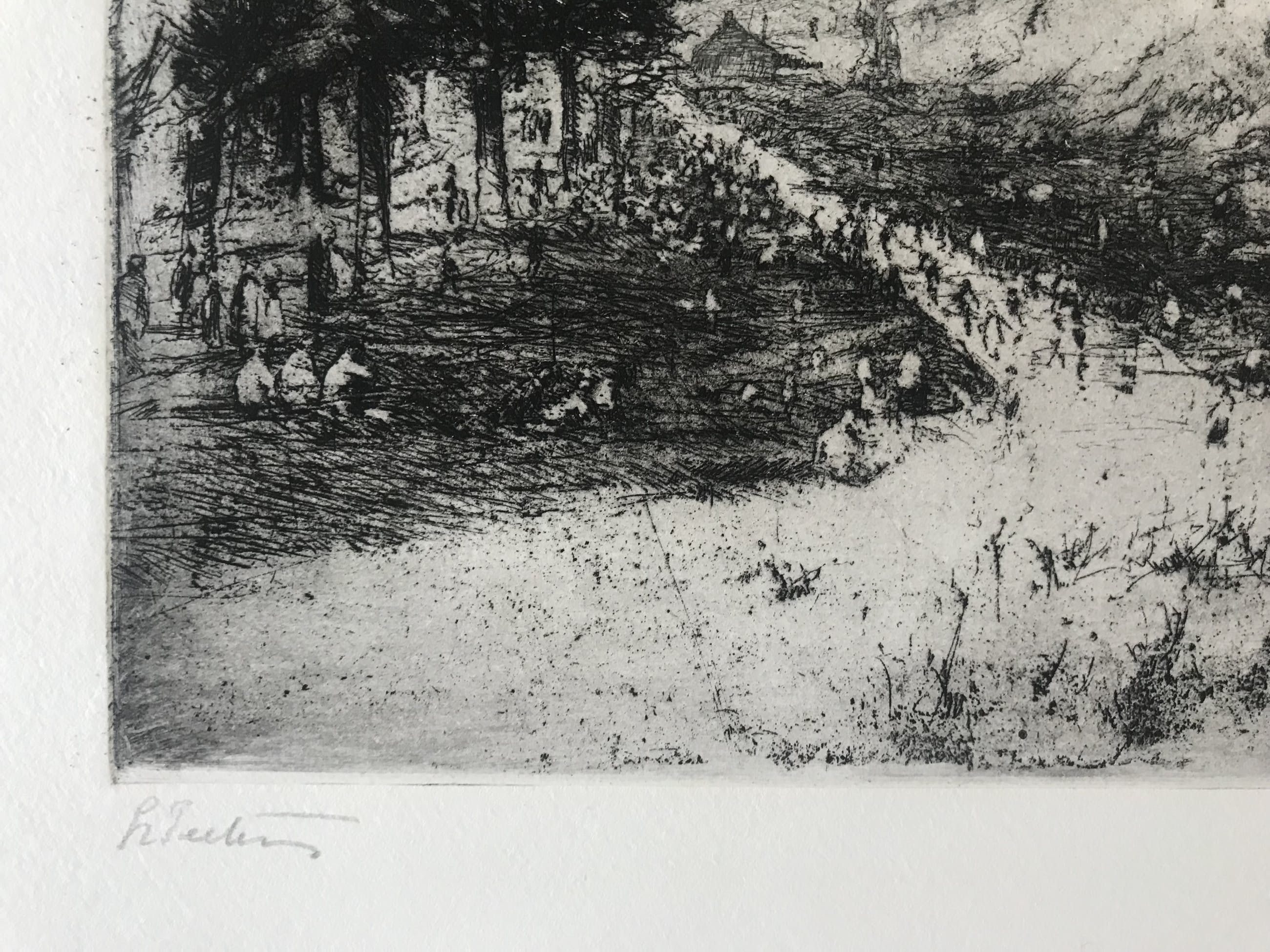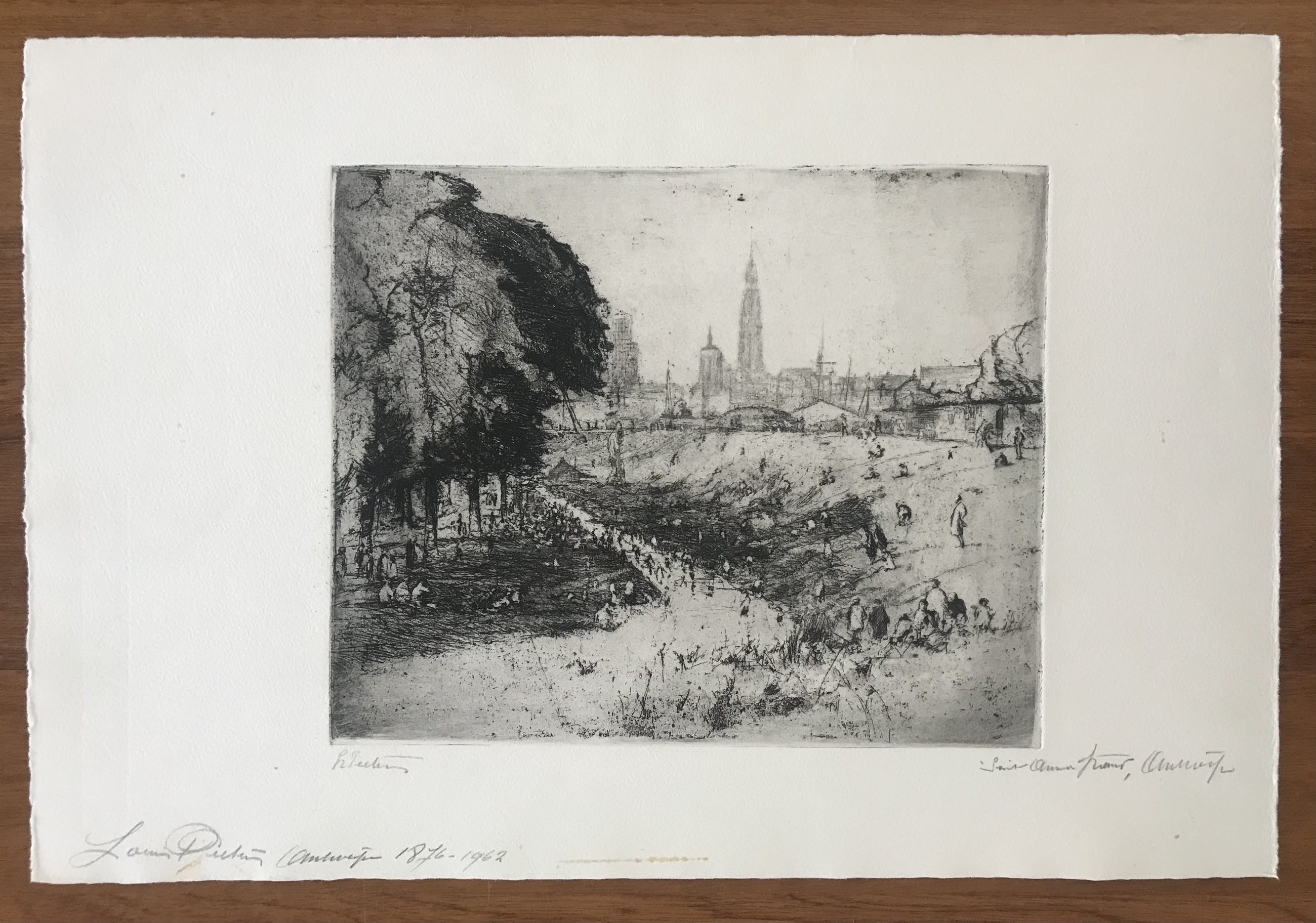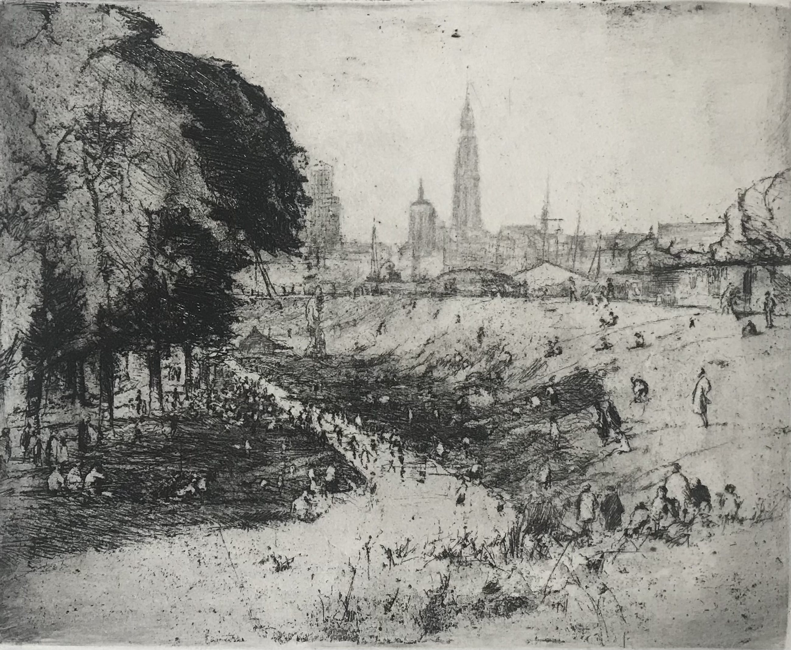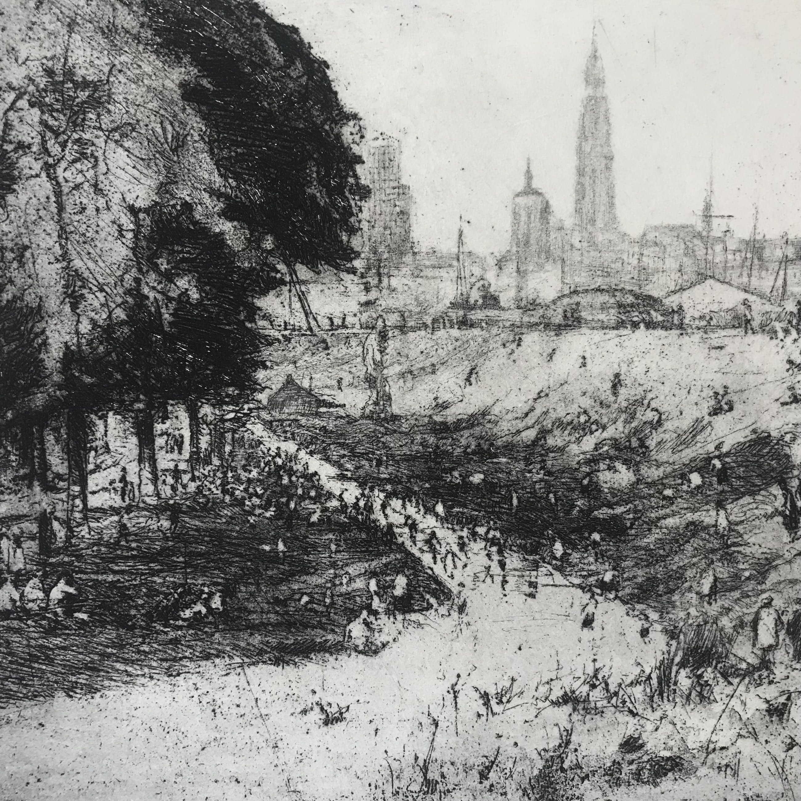 Kunstenaar: Louis Peeters (Antwerpen 1876 - 1964) Techniek: Ets Titel: "Sint Anna Strand Antwerpen" Staat: Goed Gesigneerd en getiteld in potlood door de kunstenaar. Gedrukt op 'Hahnemuhle' papier. Afmeting ets: 18 cm x 22,5 cm Totale afmetingen van het werk: 26 cm x 39 cm