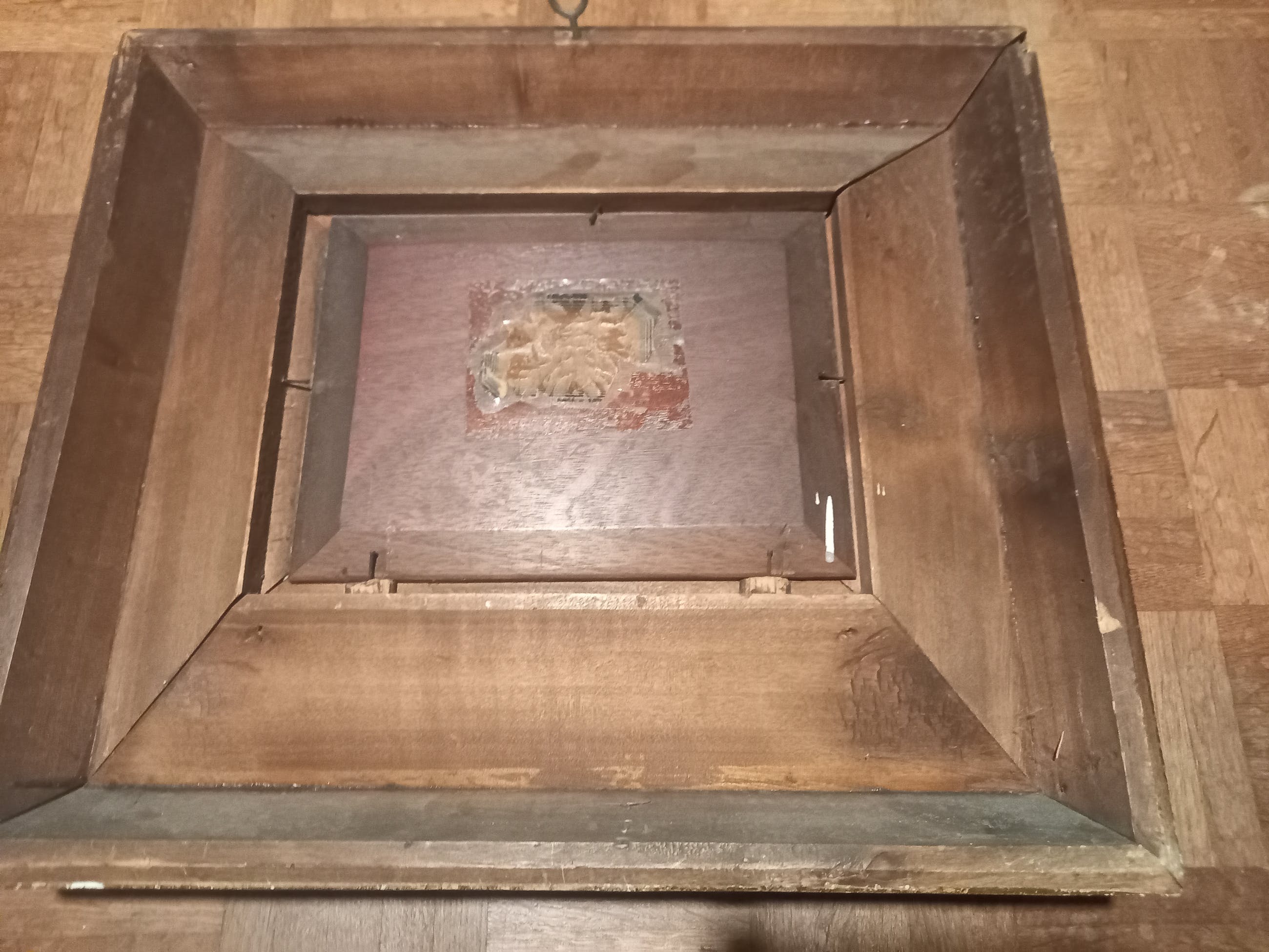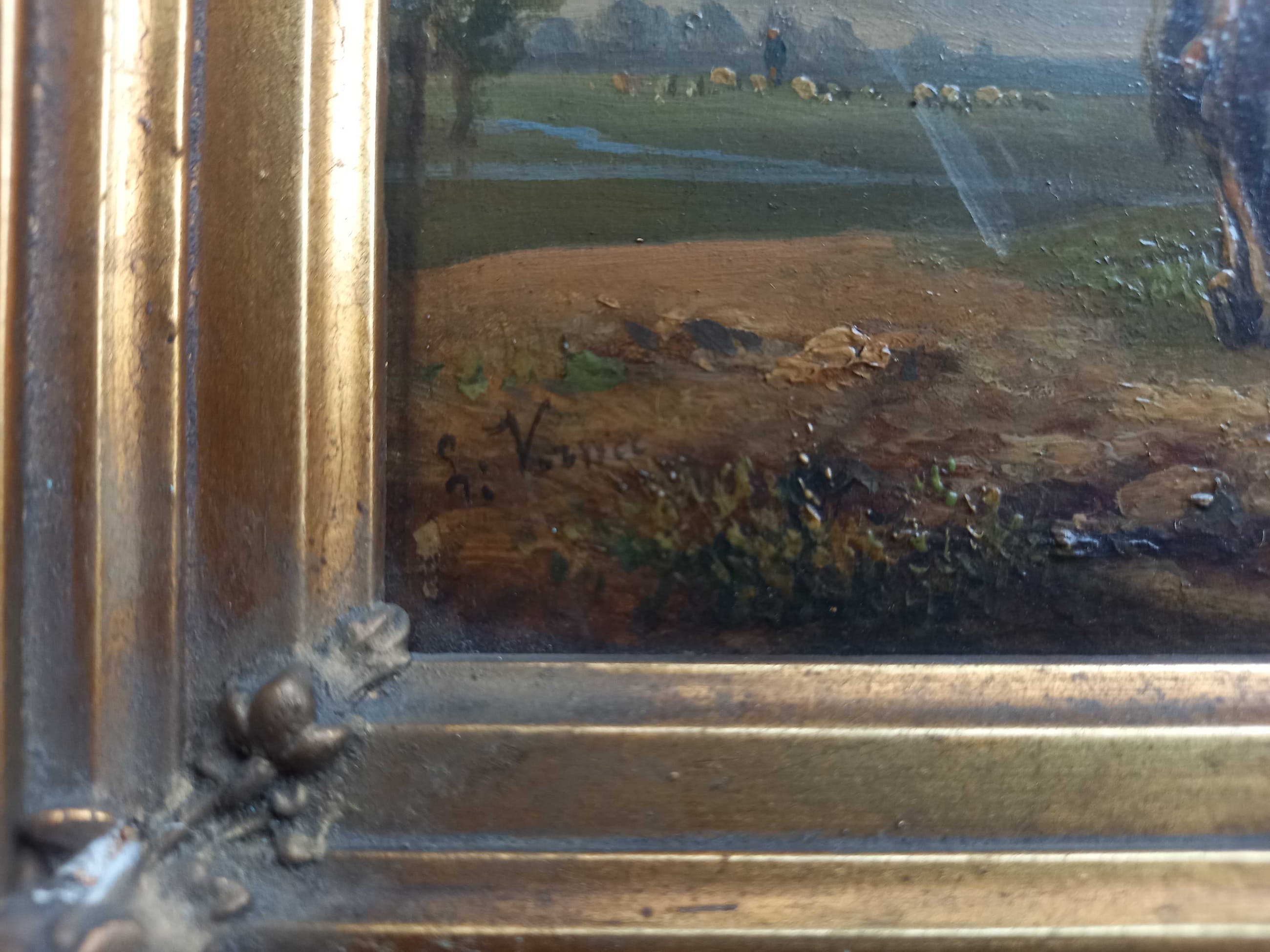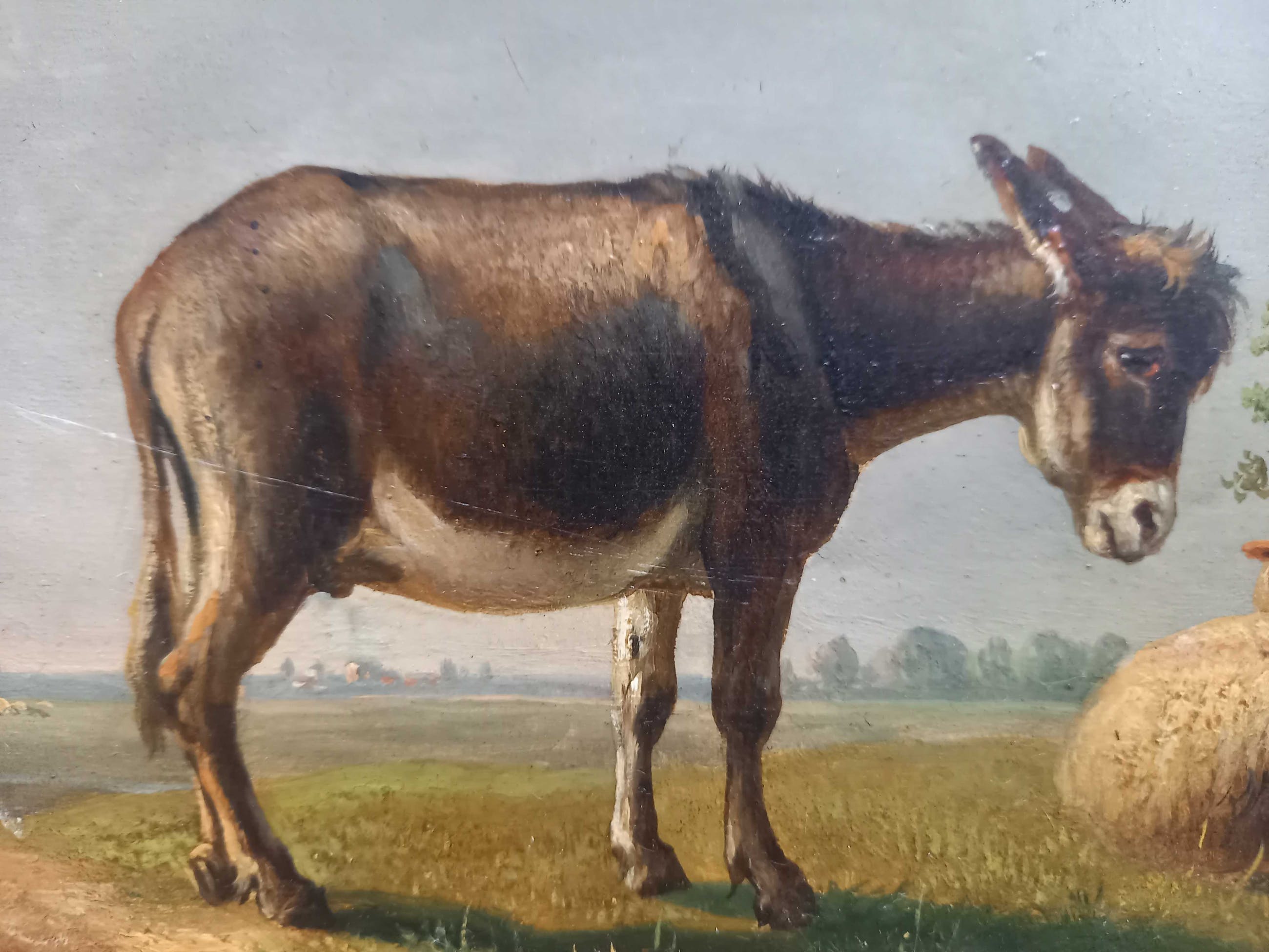 Het paneel verkeert in goede conditie. Minuscule kras op achterwerk ezel.De lijst vergt enige restauratie.Gezien de kwetsbaarheid van de lijst heeft afhalen in Amsterdam of Tongeren de voorkeur.