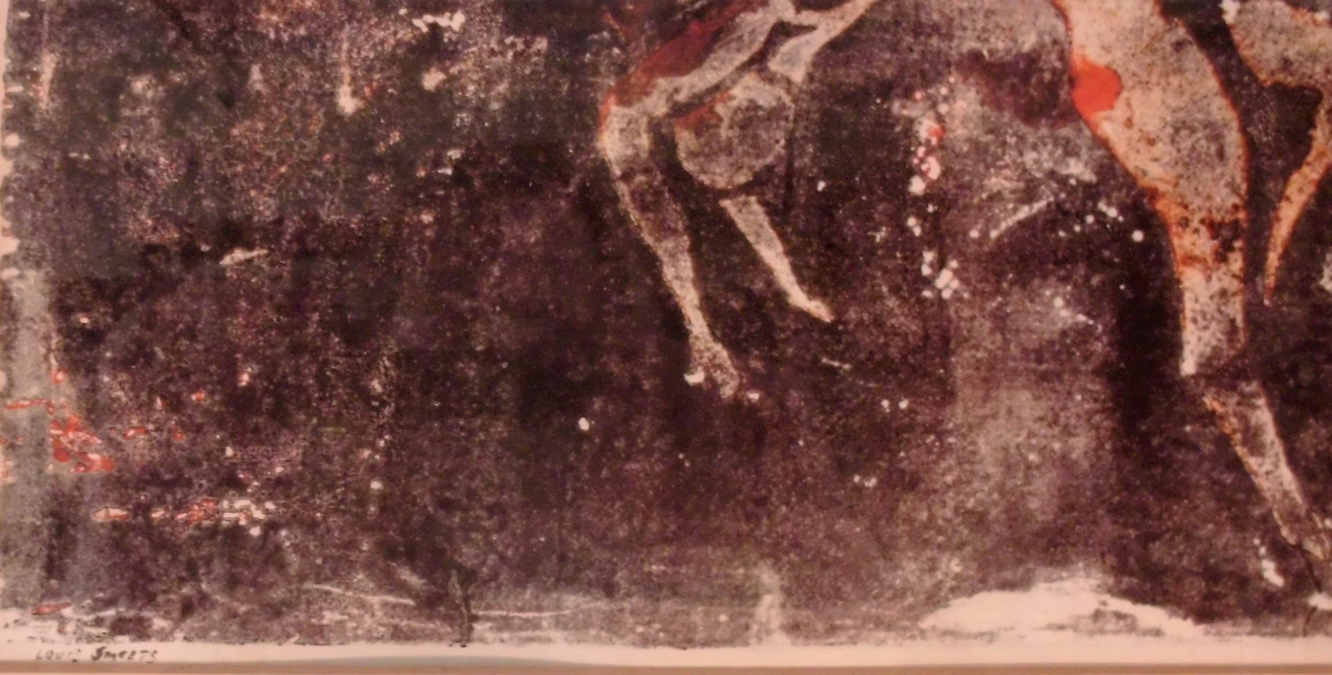 Ludovicus Josepha Johannus Smeets Amsterdam 1818 Blerick 2005. O.A. beeldhouwer, glasschilder. Abstracte kleuren ets,gesigneerd in potlood en genummerd 1/3.Keurig ingelijst in aluminium lijst.