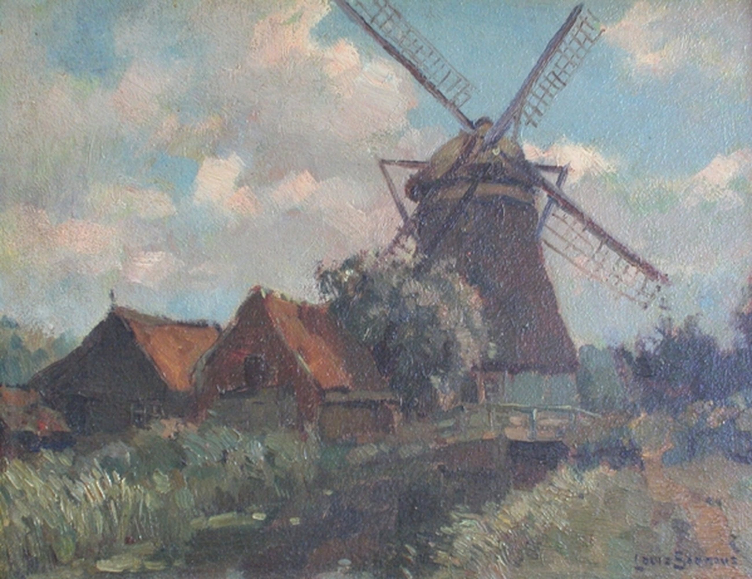 Soonius werkte vaak op klein formaat. Dat had er mee te maken dat hij regelmatig buiten 'a plein air' schilderde. De kleinere formatie waren dan gemakkelijker om op locatie mee te werken en om te transporteren. Dit is ook zo'n klein werkje, van een typisch Hollands landschap: klein maar fijn!