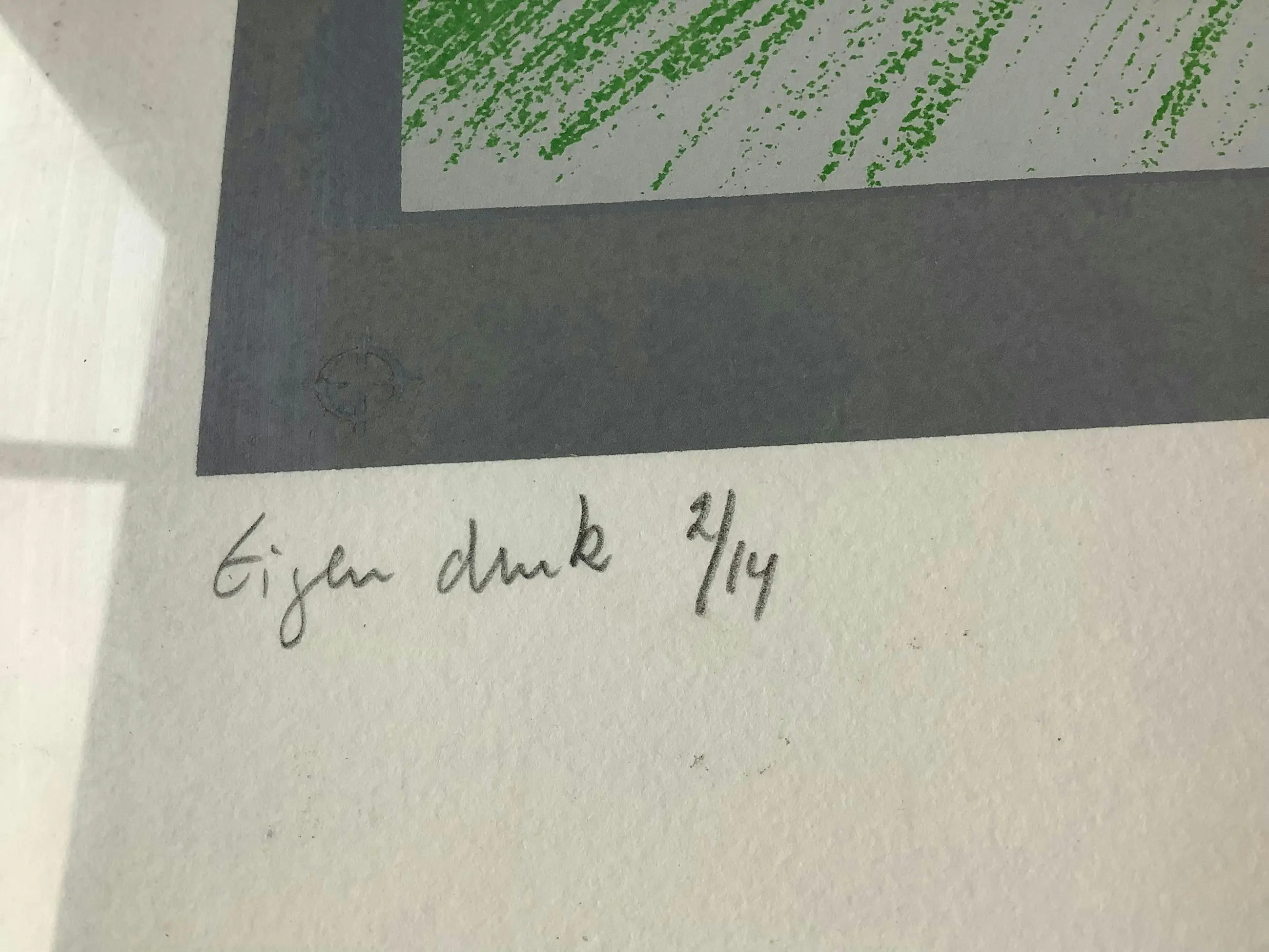 Deze zeefdruk heb ik sinds 1984 in bezit. Het is afkomstig van een collectie van de Culturele Raad Overijssel.