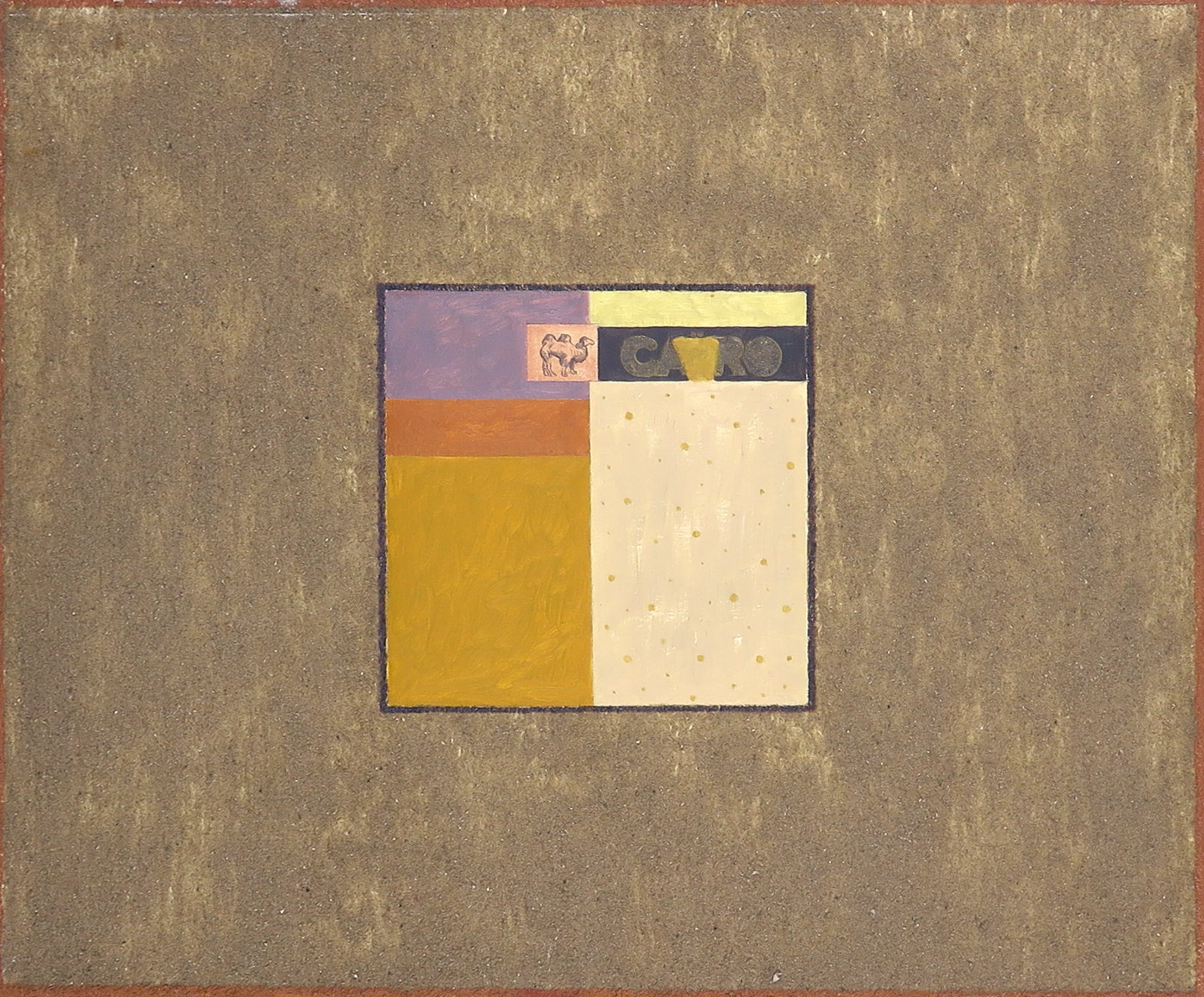 Gemengde techniek op doek, bestaande uit olieverf en structuur (zand).