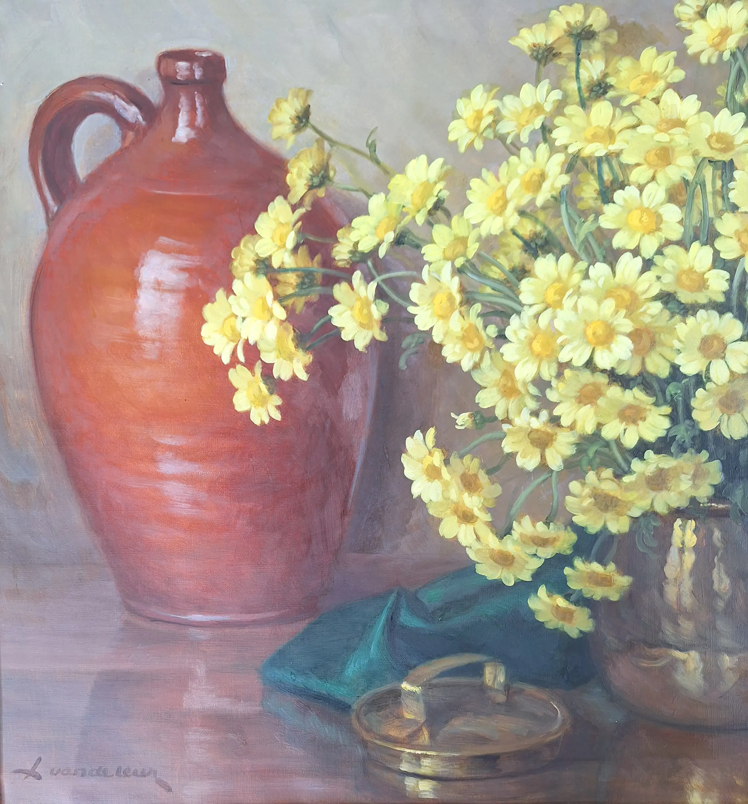 Prachtig groot werk van de bekende bloemenschilder Louis Van de Leur. Veel kleur en vooral in goede staat met prachtige kader.