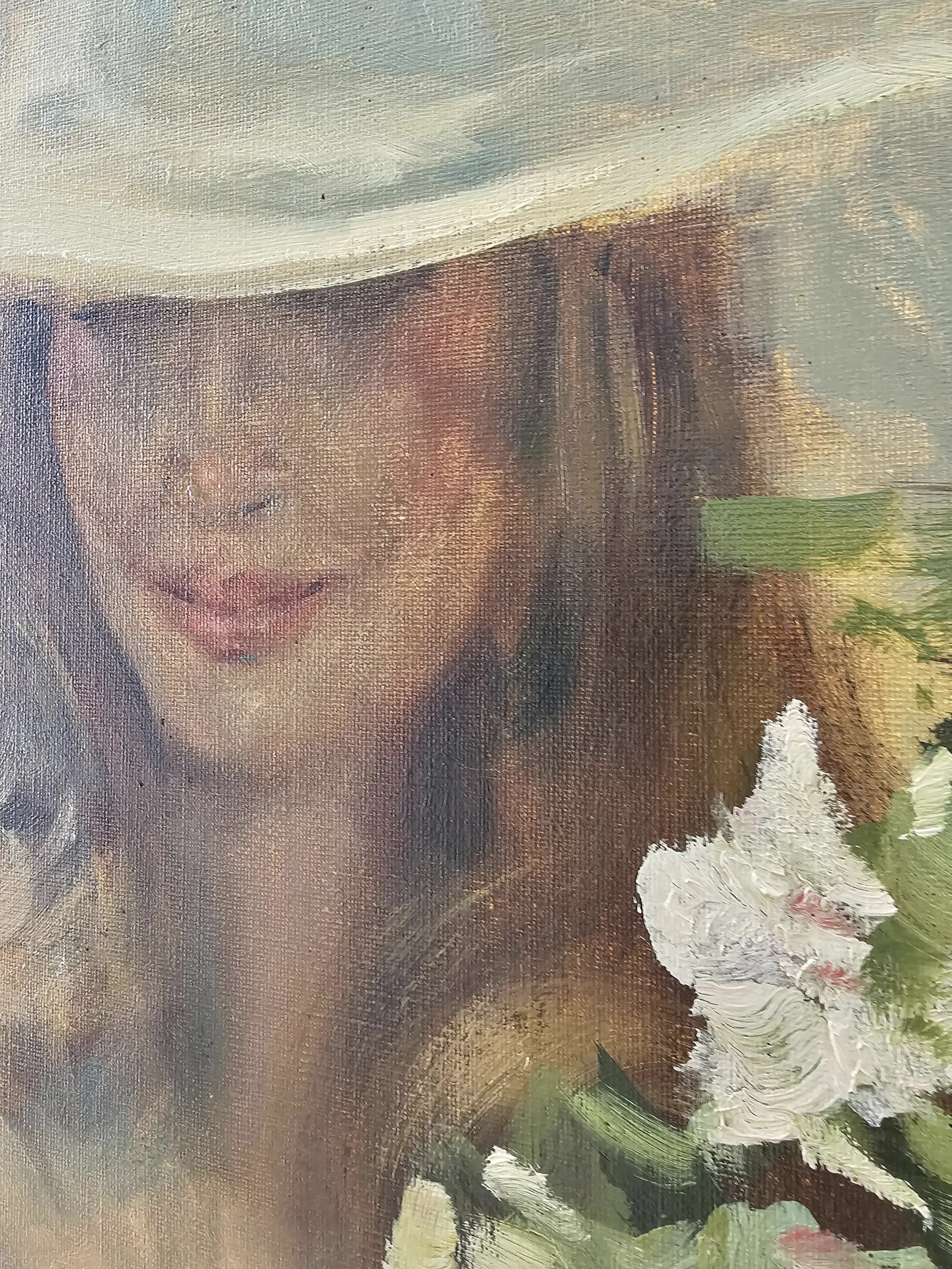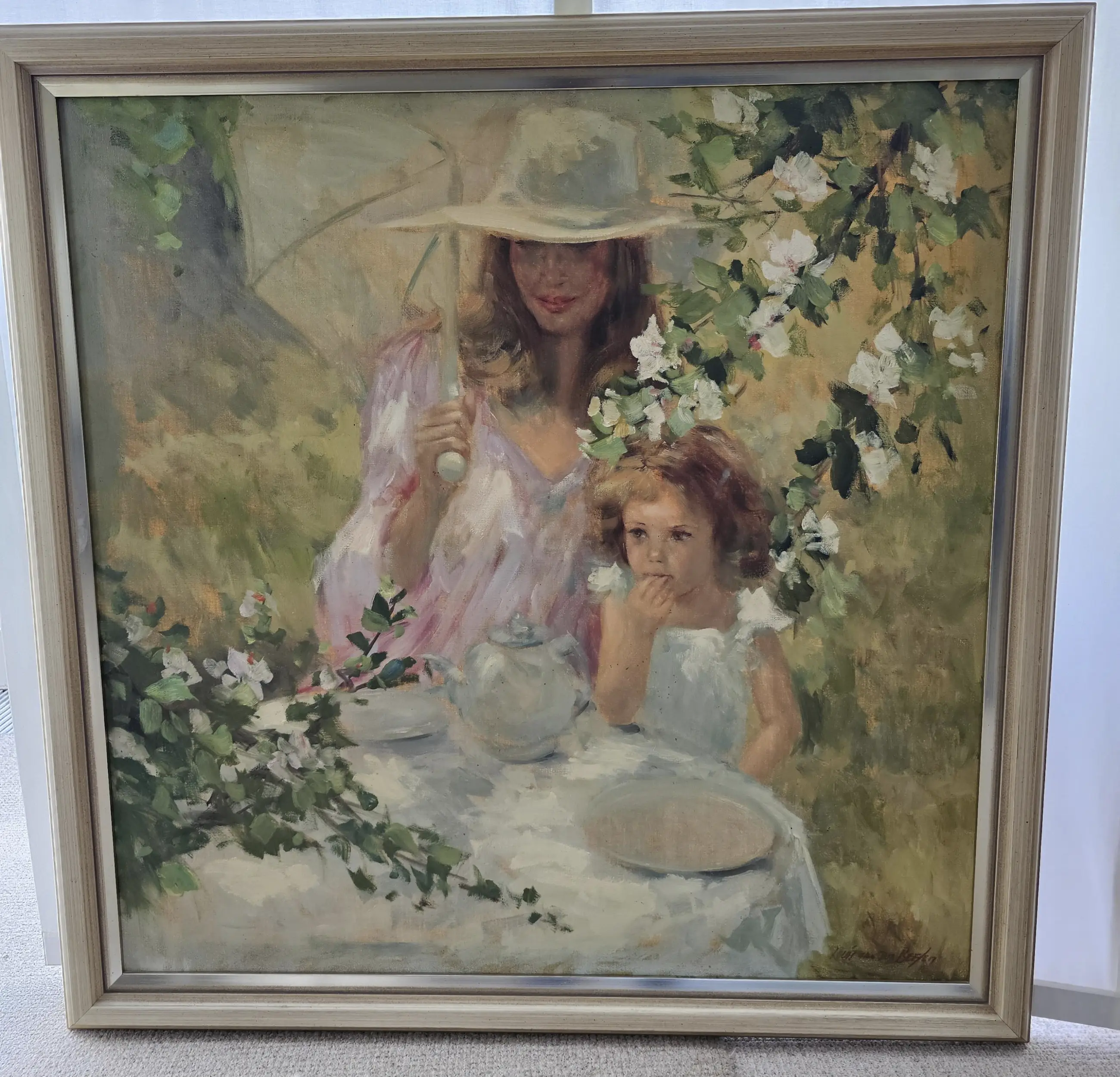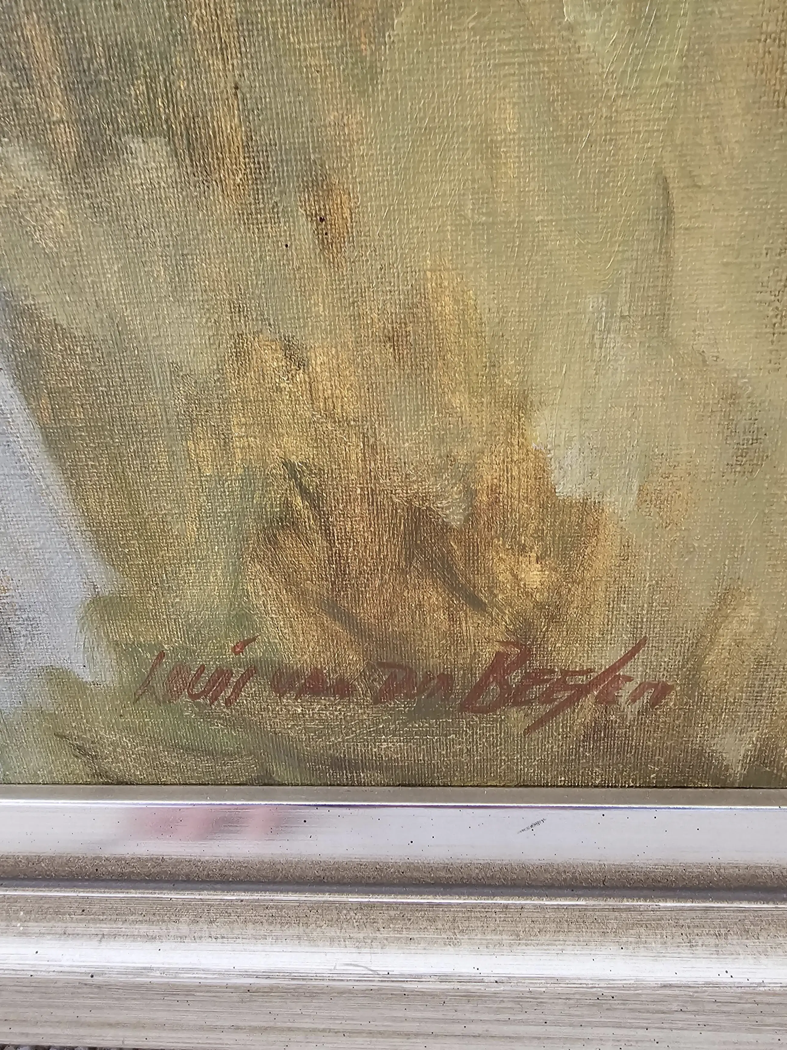 Prachtig olieschilderij op doek. "Moeder met kind", van Louis van der Beesen.