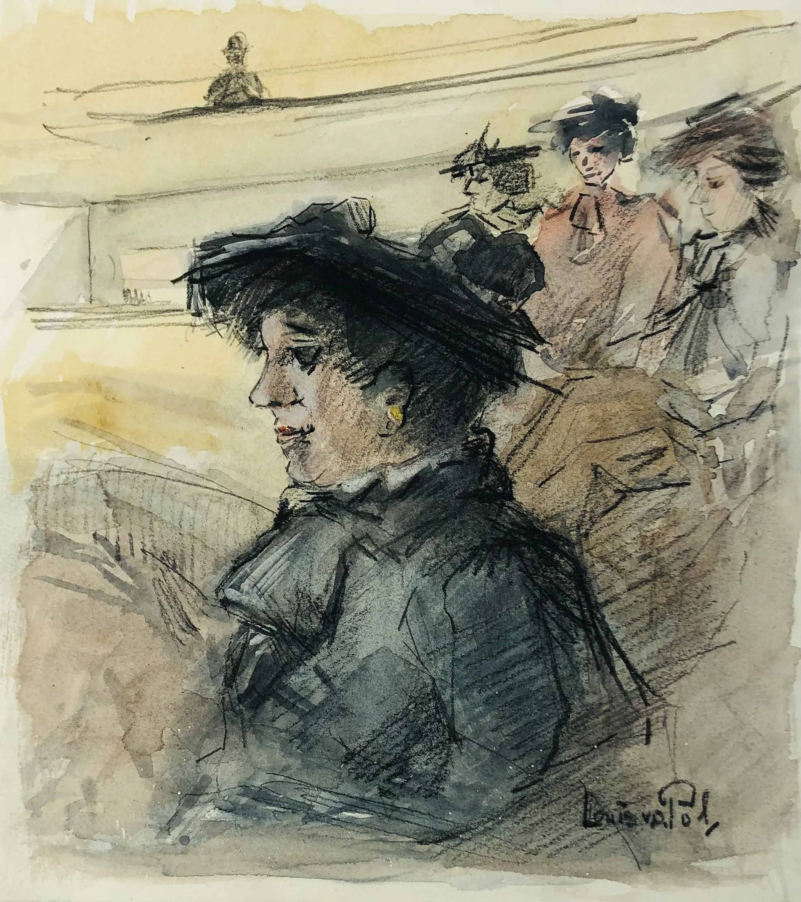 Fraaie aquarel van Louis van der Pol (1915-1986). De aquarel is in goede staat.