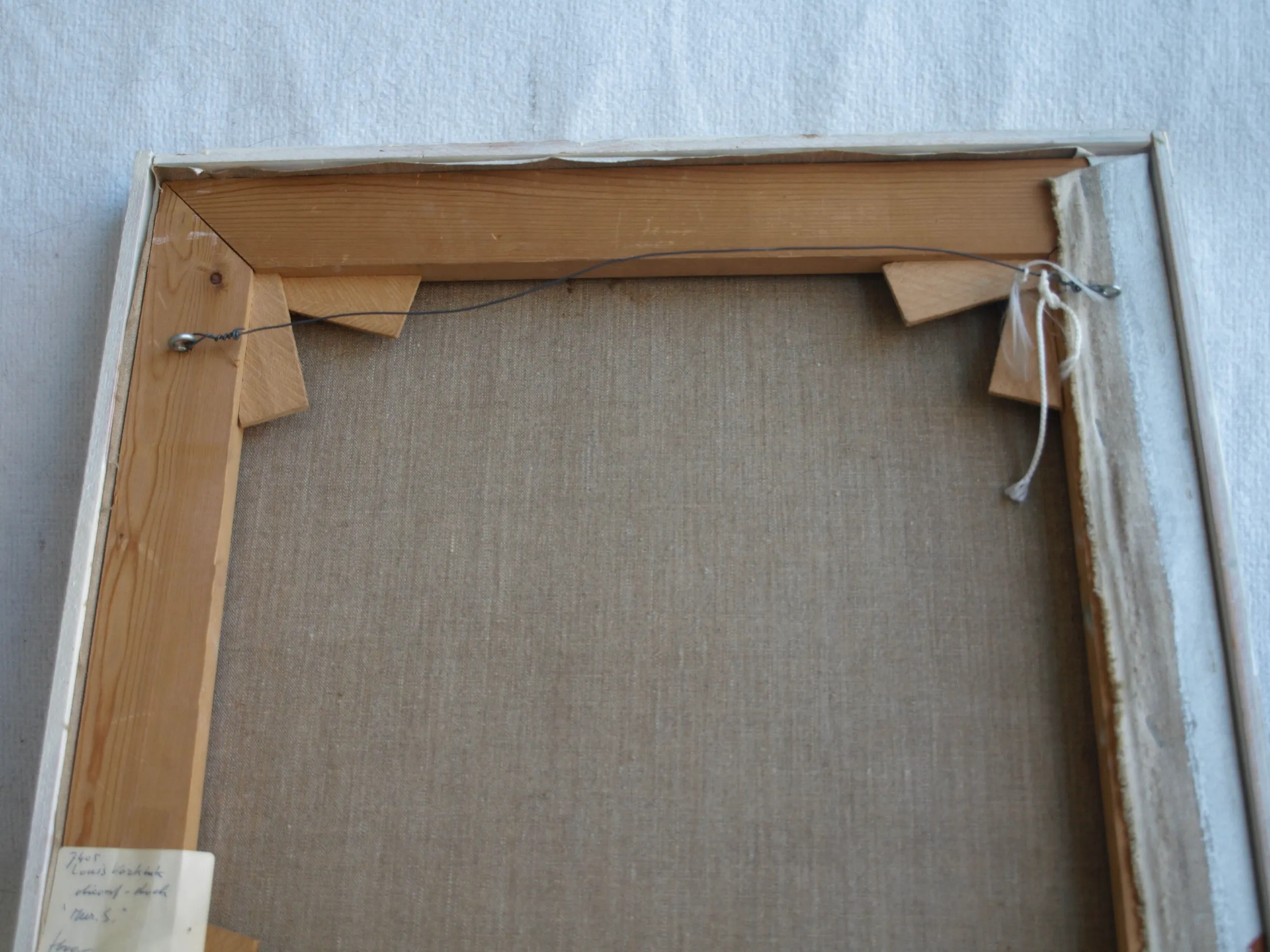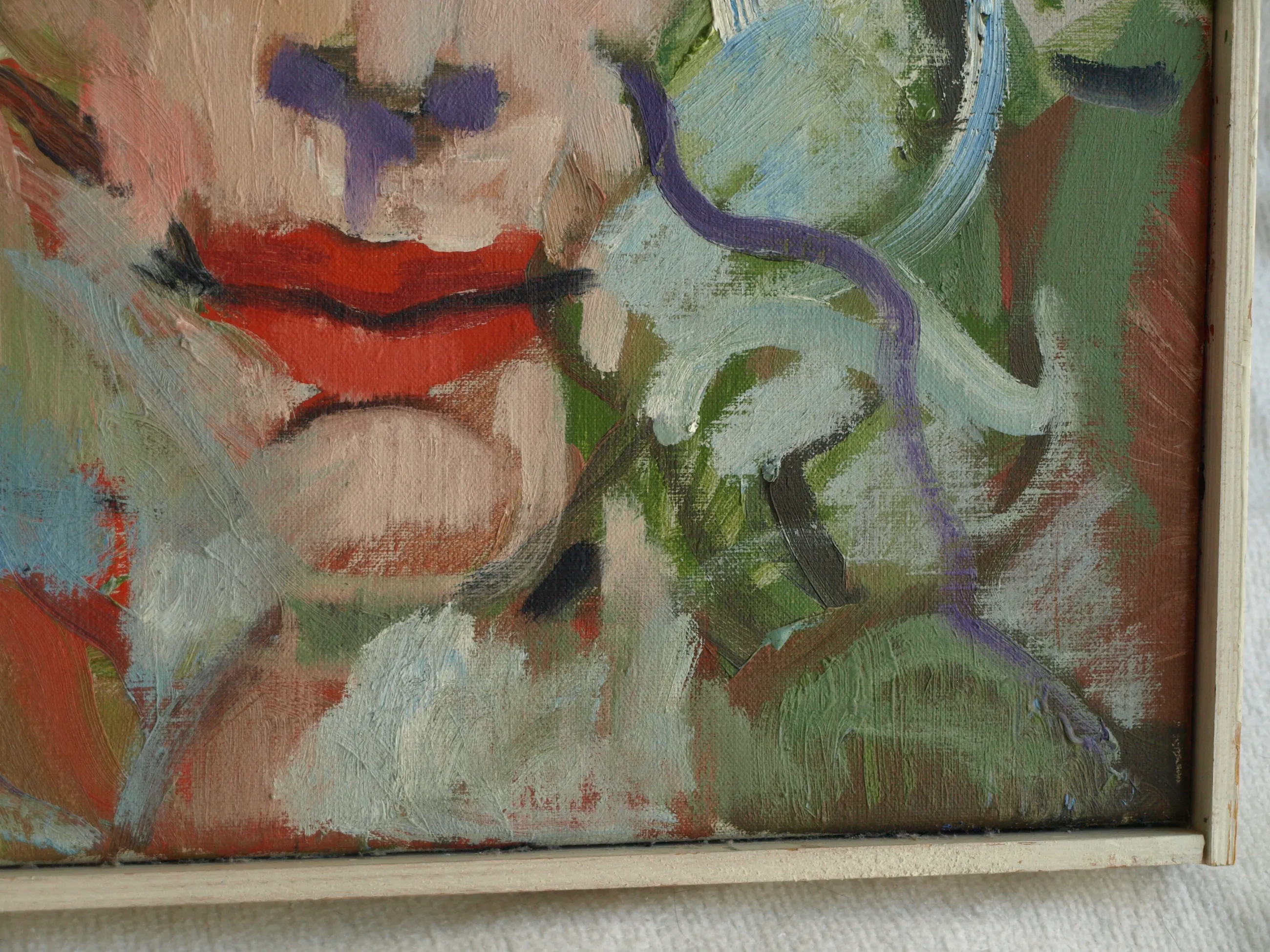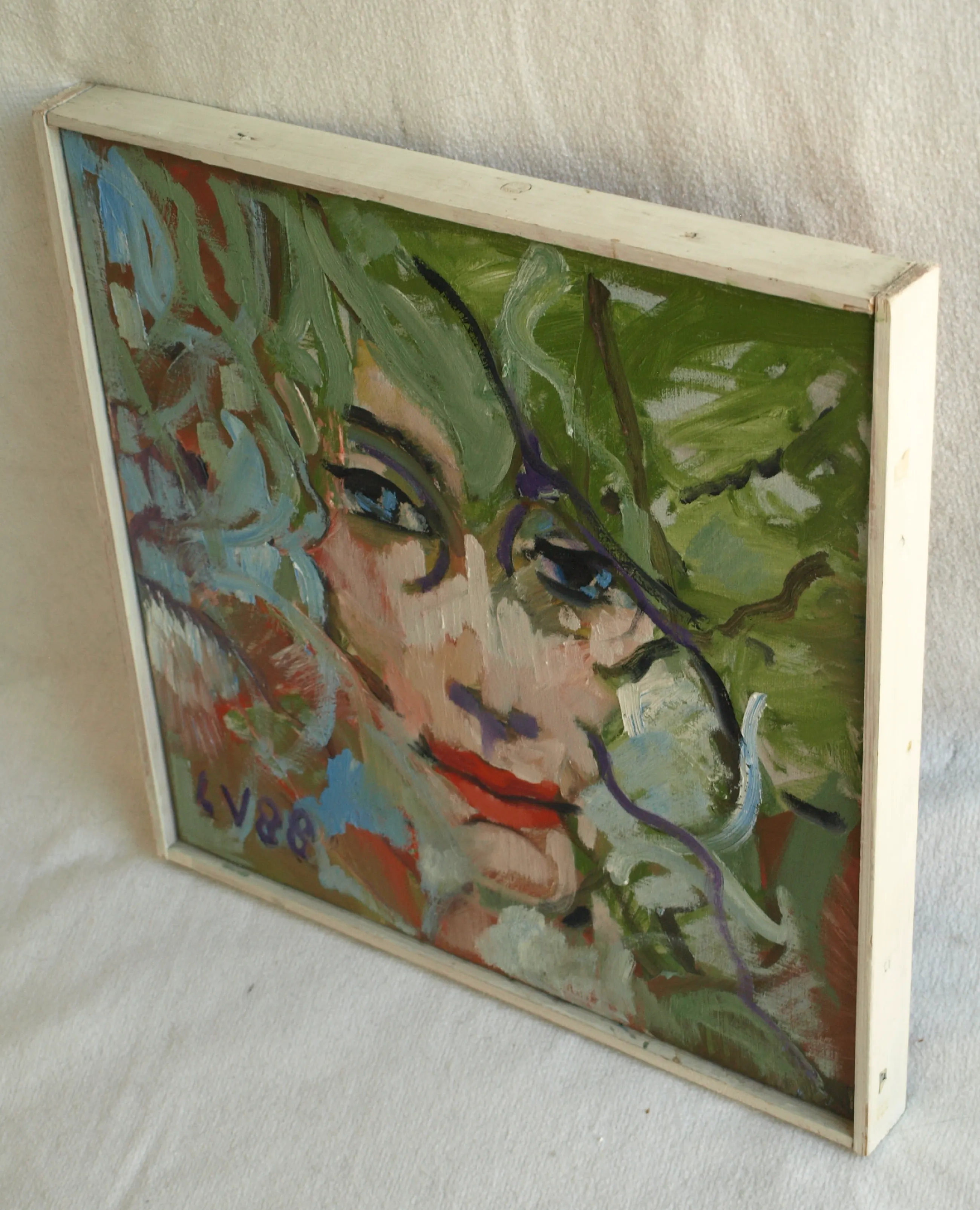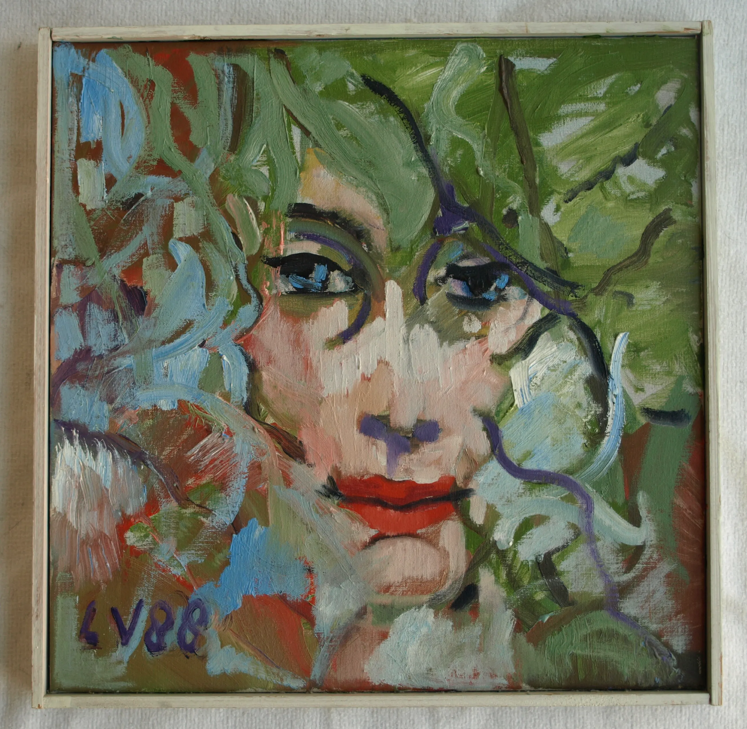 Een ingelijst schilderij uit 1988 van de Nederlandse kunstenaar Louis Vorkink (1933-2010), met een portret van “Mevr. S.”. -Gesigneerd met de initialen van de kunstenaar en gedateerd linksonder in het werk en ook met informatie over het schilderij op de achterkant. -Olieverf op doek, opgespannen op een houten spieraam. -Ingelijst d.m.v. ‘expositielatjes’. -Afmetingen: Lijst, 42 x 42 cm. Spieraam / beeld, 40 x 40 cm. -Herkomst: Uit een inboedel. -Conditie: In prima staat. Zie ook de foto’s voor een eigen indruk. Kan zo aan de muur
