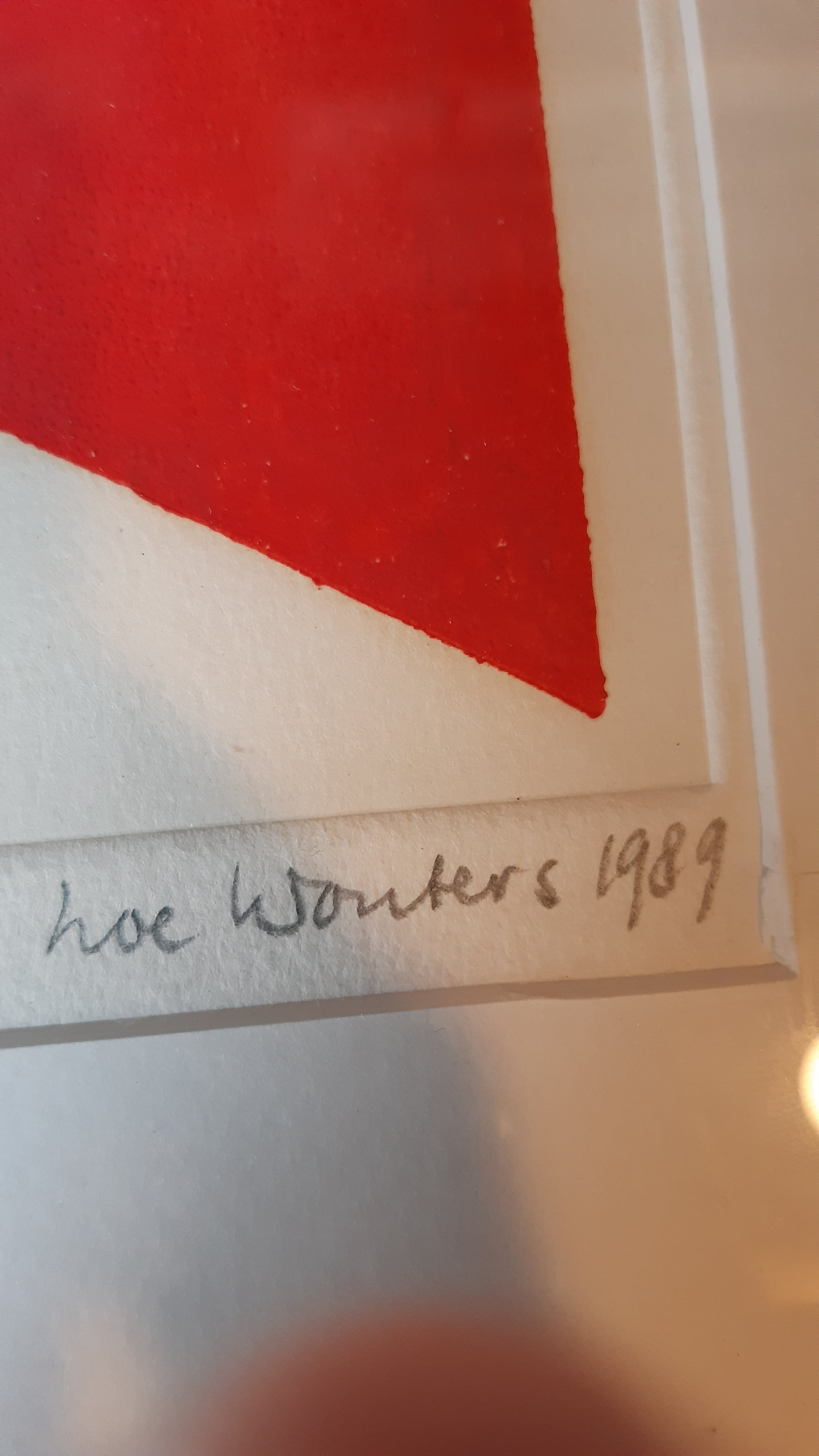 Mooi geometrisch abstract werk van Loe (Louis) Wouters. Unieke combinatie van zeefdruk en preegdruk.