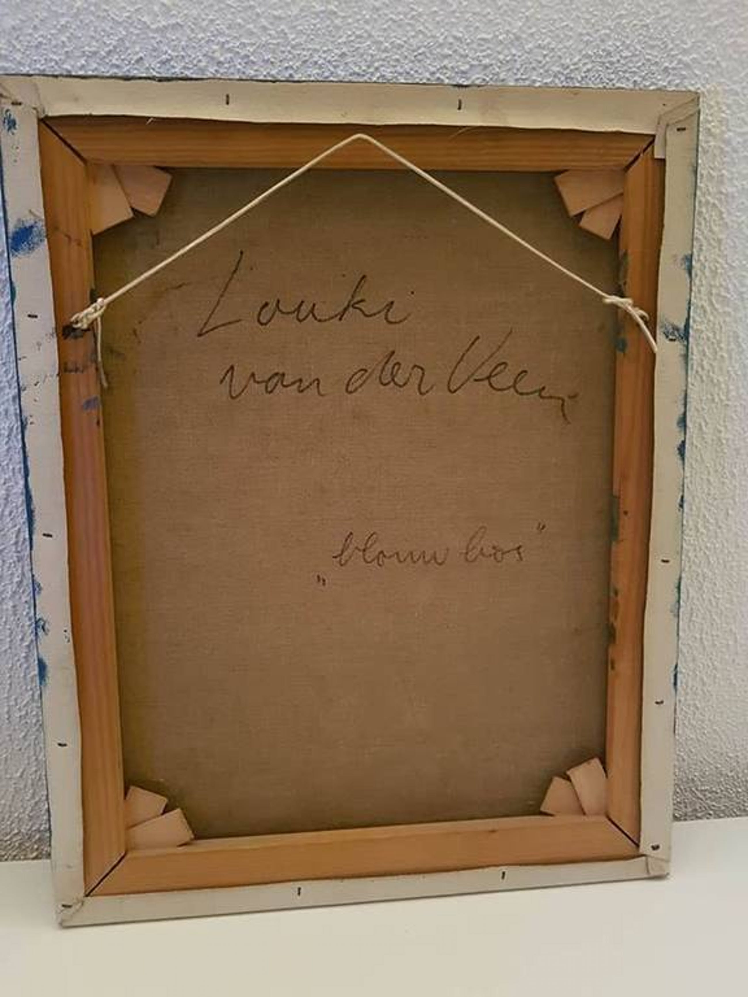 Fraai olieverf schilderij zonder lijst van Louki ( Louise) van der Veen, "Blauw bos" 70-er jaren.