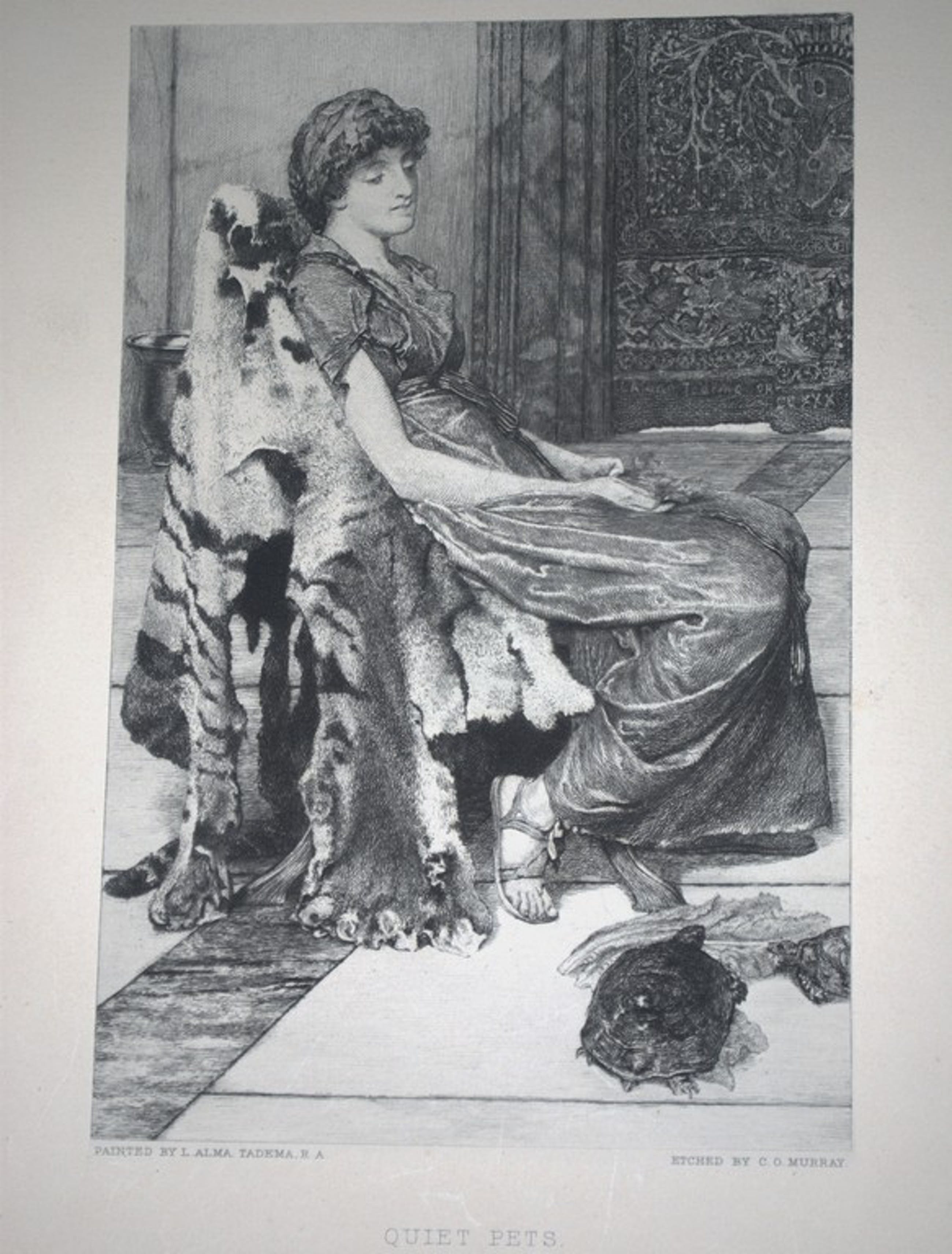 ETS "QUIET PET'S" DOOR C.O. MURRAY NAAR HET SCHILDERIJ VAN TADEMA. IN GOEDE STAAT; ZIT LOS IN HET BOEK (MET PAG. 17/18).