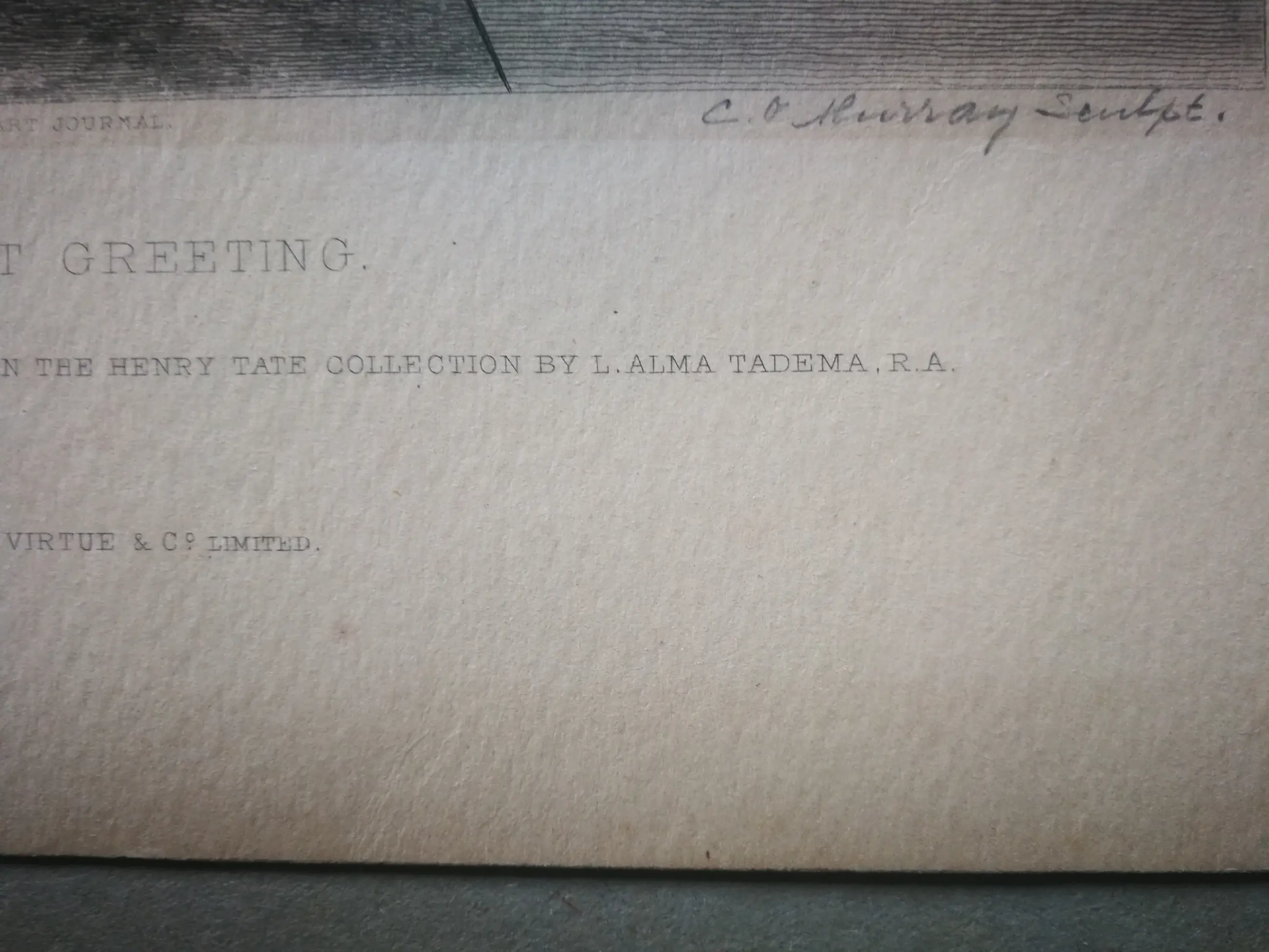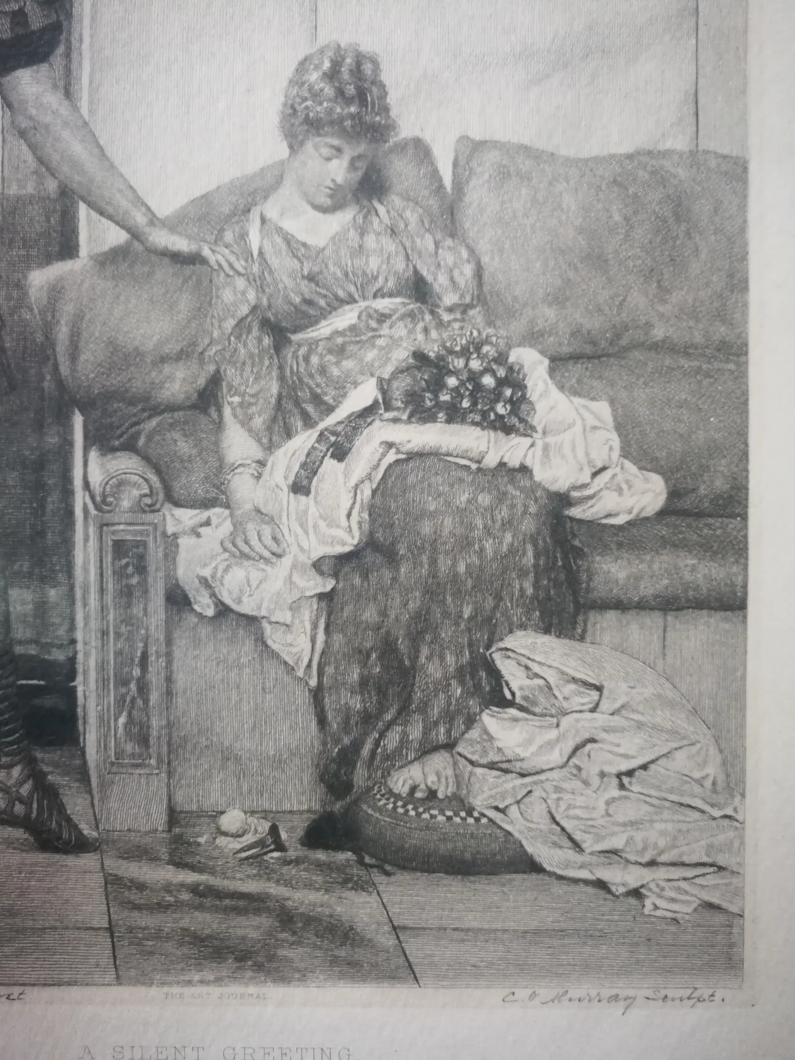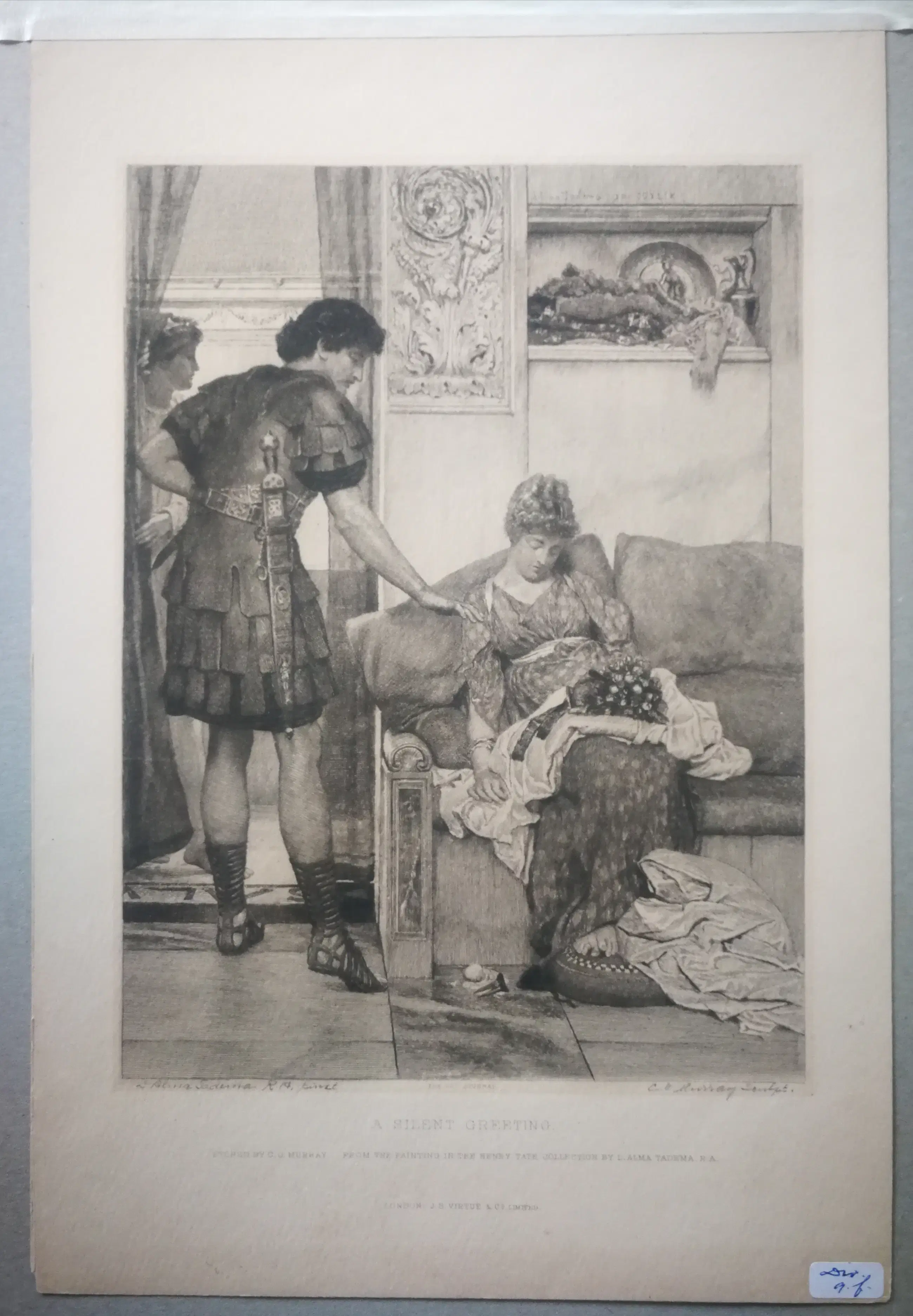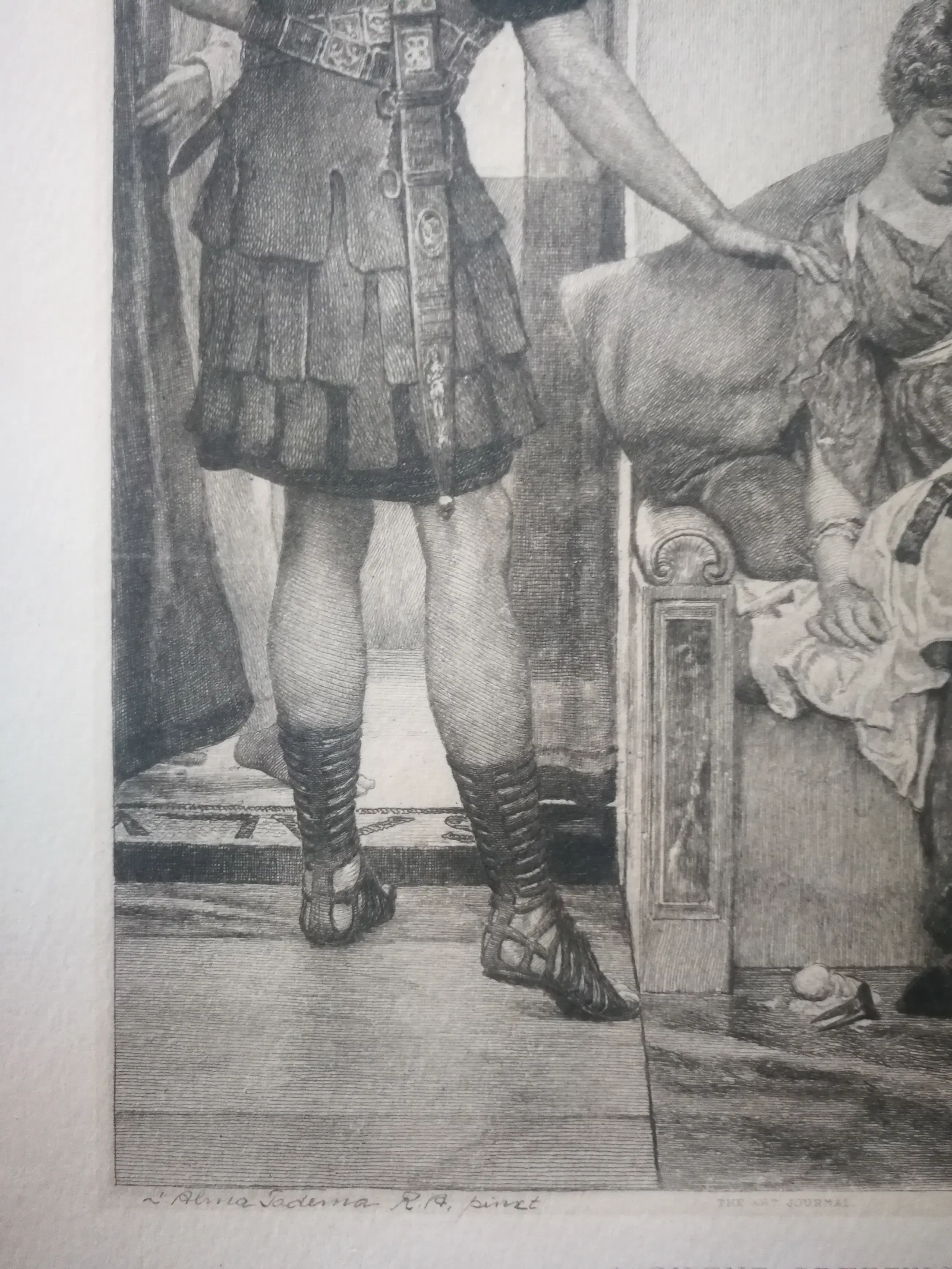 Mooie gravure. Mogelijk handgesigneerd door Tadema zelf. Algemeen goede staat. Bovenzijde geplakt. Zie foto's voor eigen oordeel kwaliteit en meer informatie.