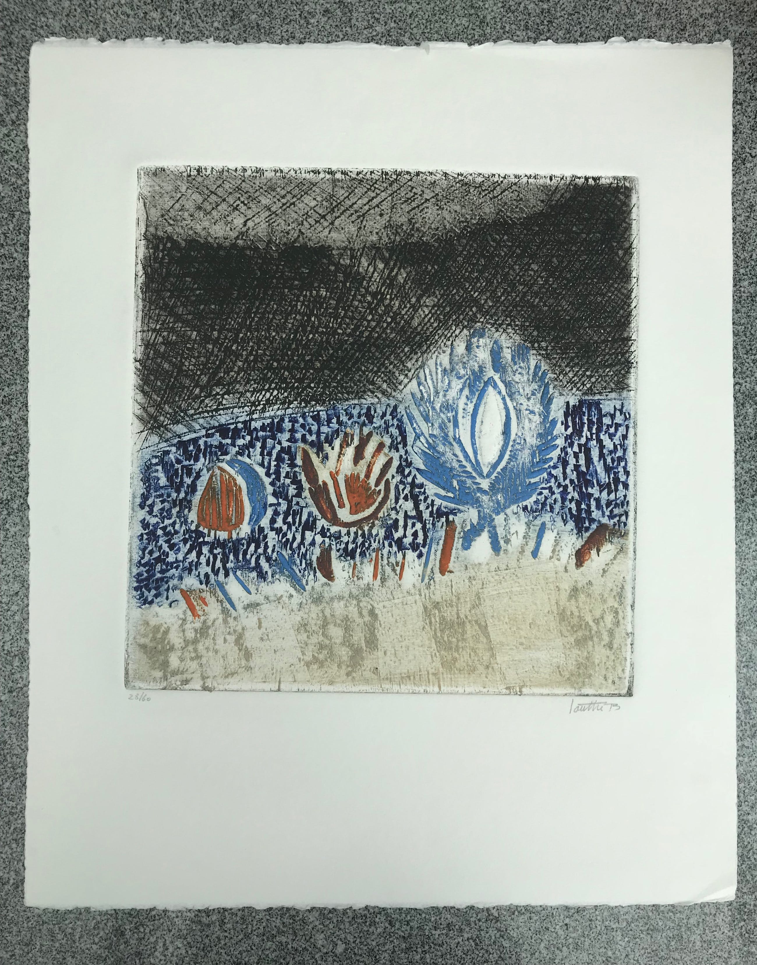 Louttre.B, pseudoniem van Marc-Antoine Bissière, geboren op 15 juli 1926 in Parijs en daar ook overleden op 6 april 2012. Was een Franse schilder en graveur, wiens niet-figuratieve werk voor het eerst werd ontwikkeld vanaf 1962 in de zin van een allusieve voorstelling die zowel poëtisch als humoristisch is.