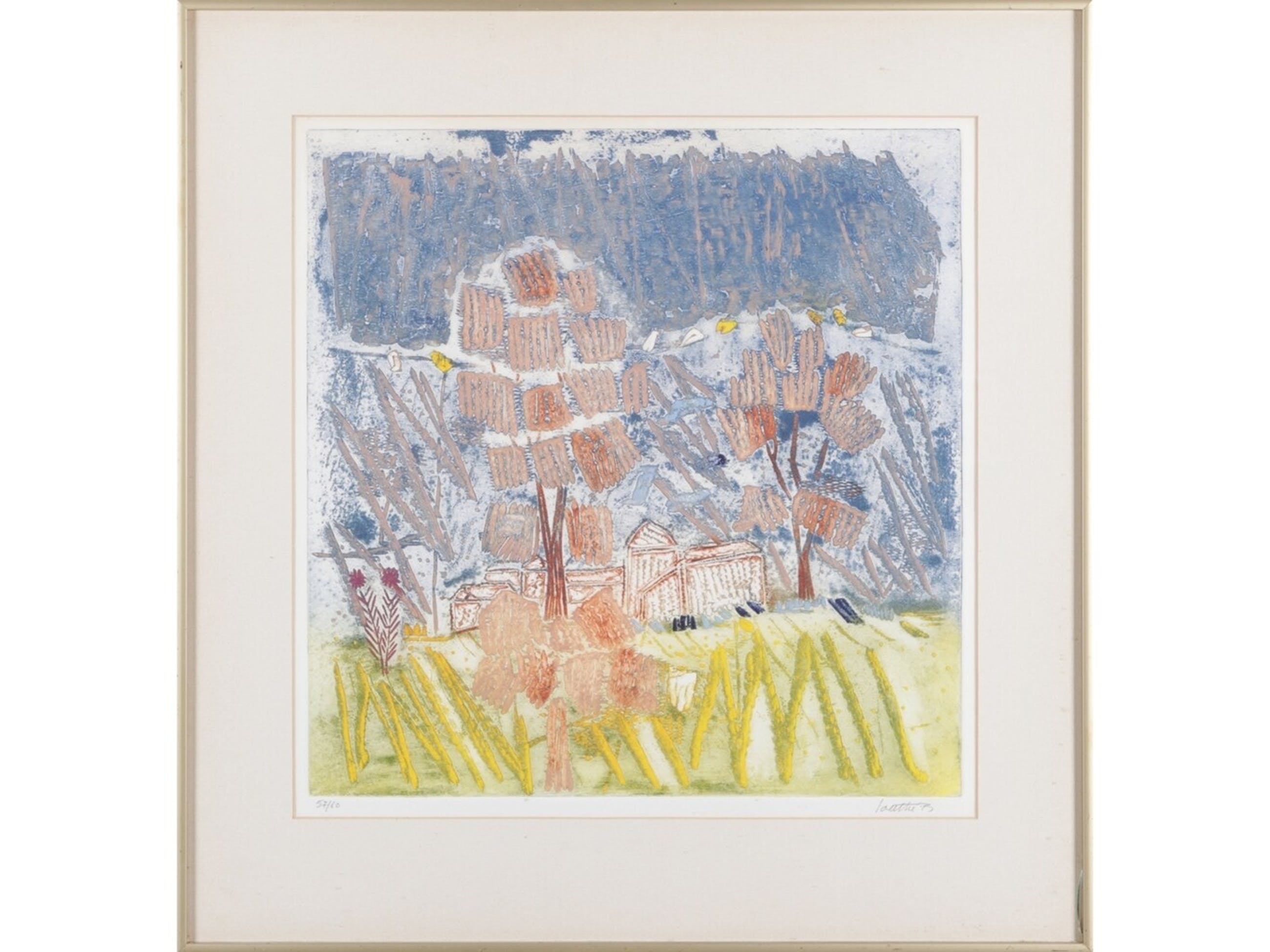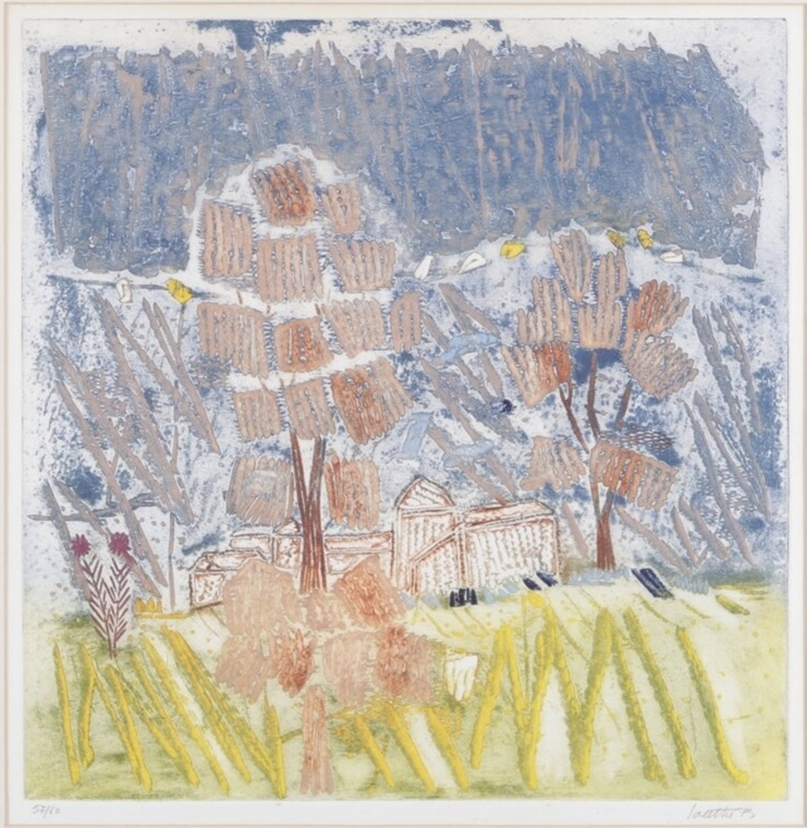Zeer fraaie gravure in kleur met reliëfdruk ( embossing ) van bekende franse kunstenaar Louttre B ( Marc-Antoine Bissière ). Afkomstig van kunsthandel M. de Boer te Amsterdam.