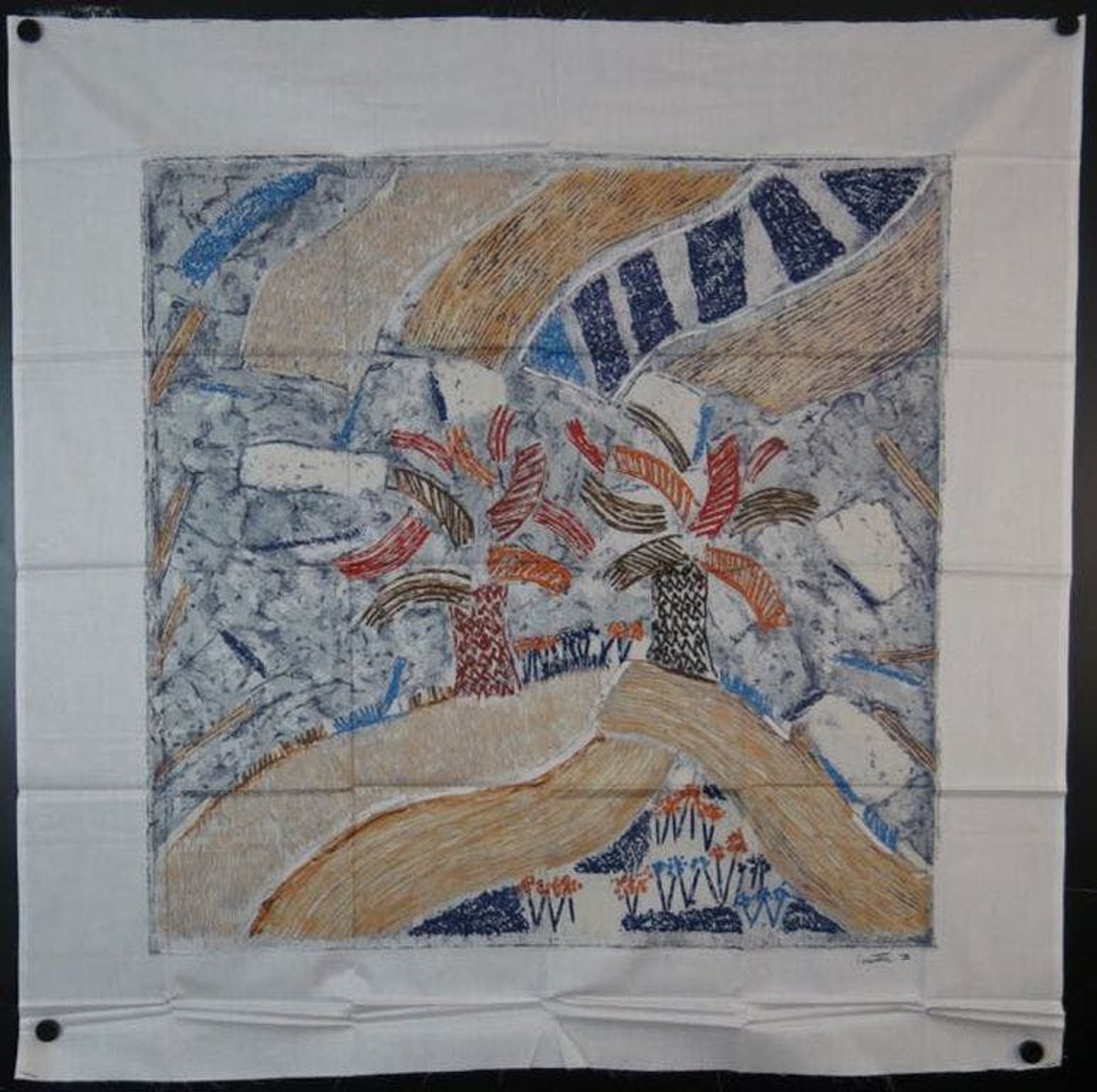 Texoprint bv vroeg jaarlijks een kunstenaar voor de vervaardiging van een zeefdruk op textiel, welke werd uitgebracht in een gelimiteerde oplage. Wij veilen nu diverse van deze uitgaves.