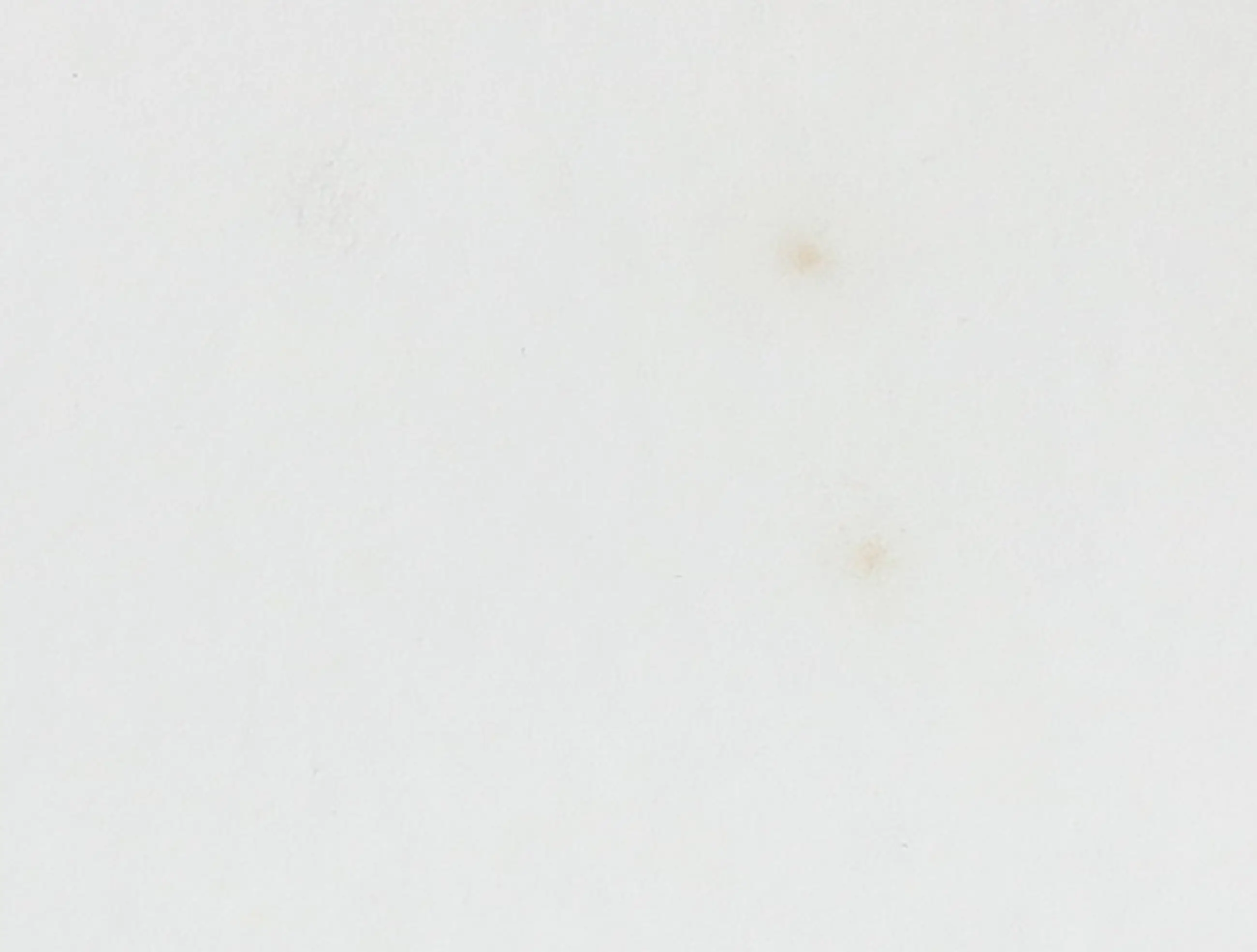 Enkele lichte oppervlaktekrassen op de blauwe achtergrond. Er zit een kleine vouw in de rechterbovenhoek. Daarnaast is er wat foxing te zien in het witte raster. Zie detailfoto's.