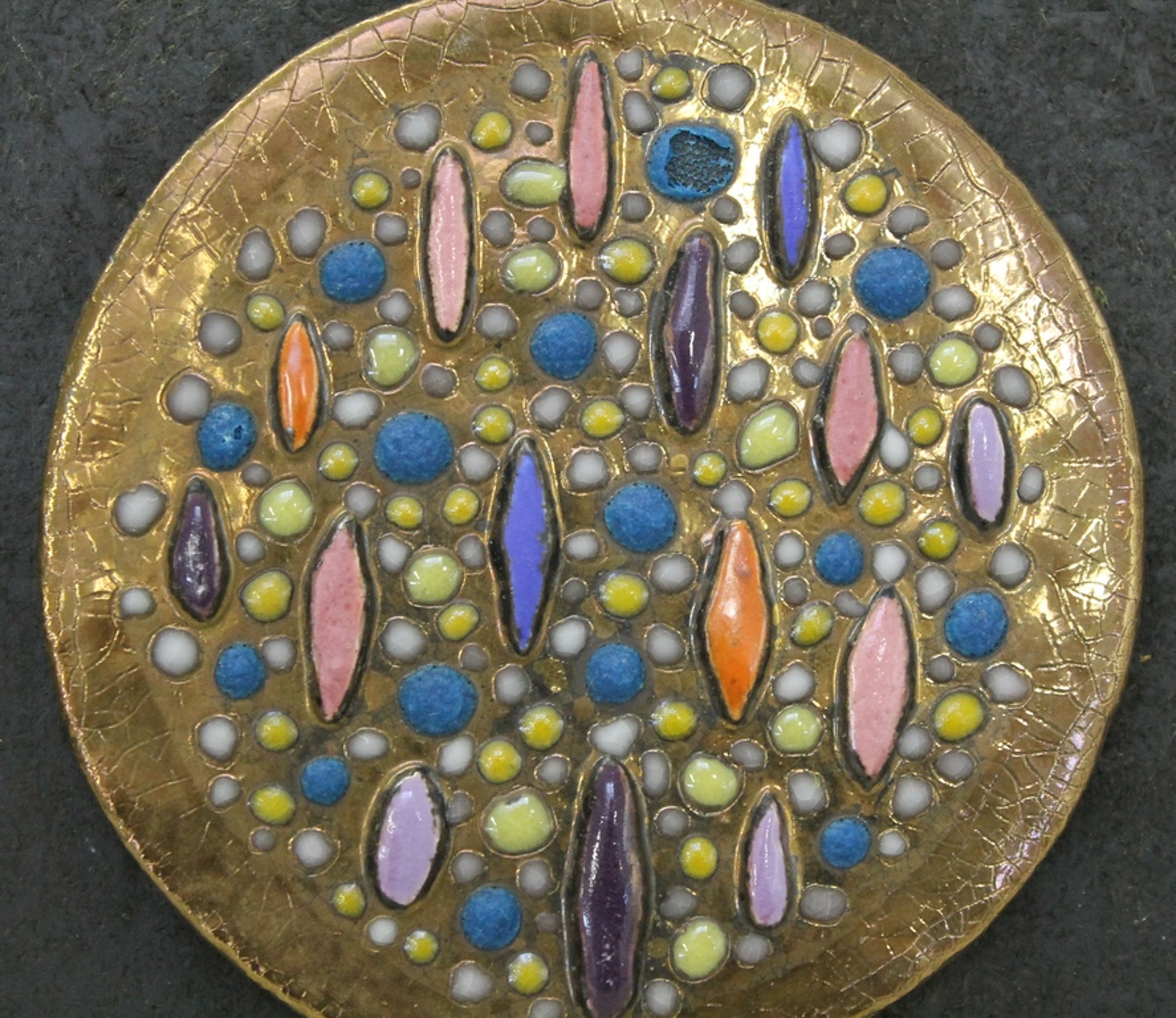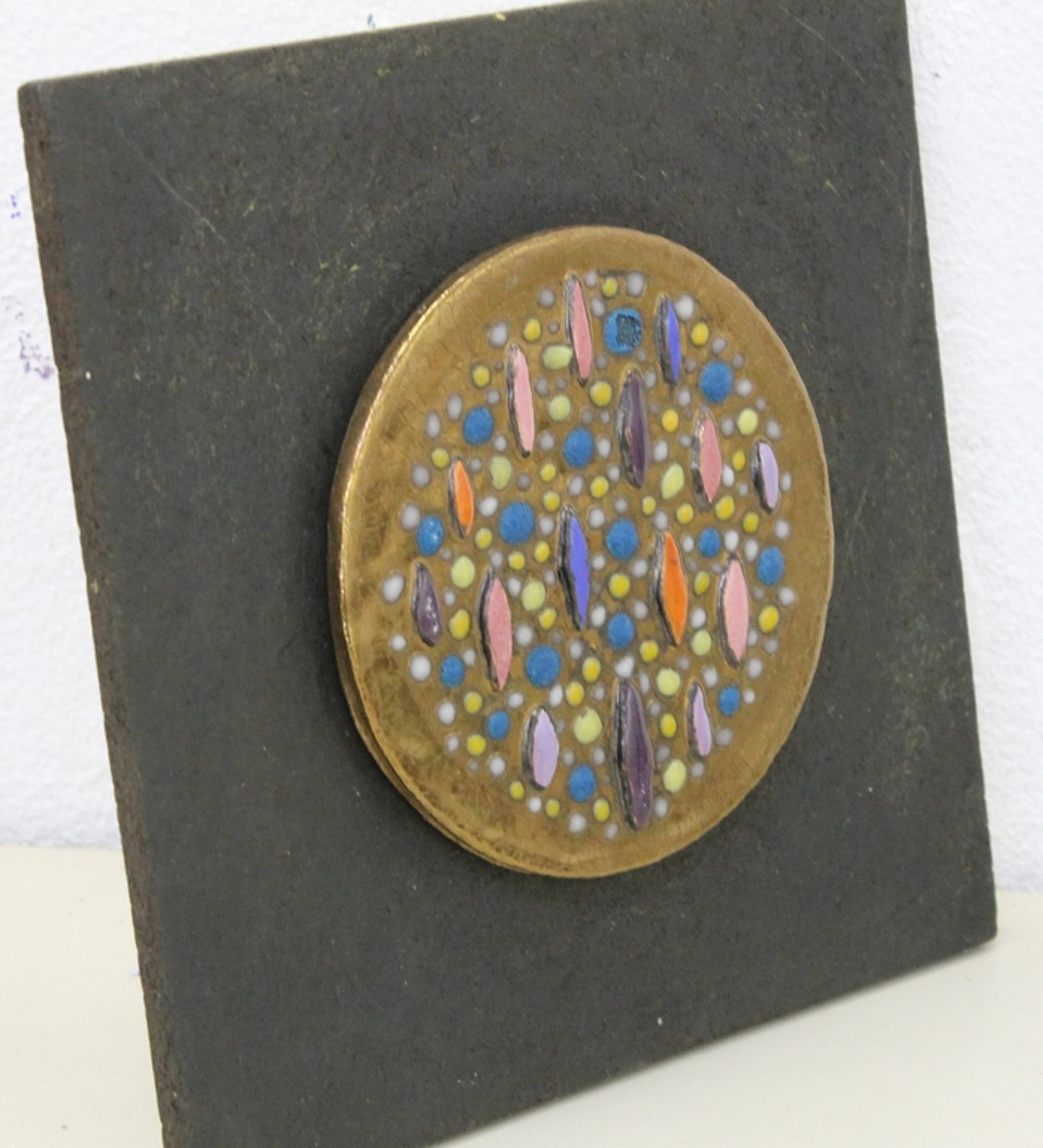 Bijzondere ronde keramische tegel, 23 cm diameter, uniek exemplaar,