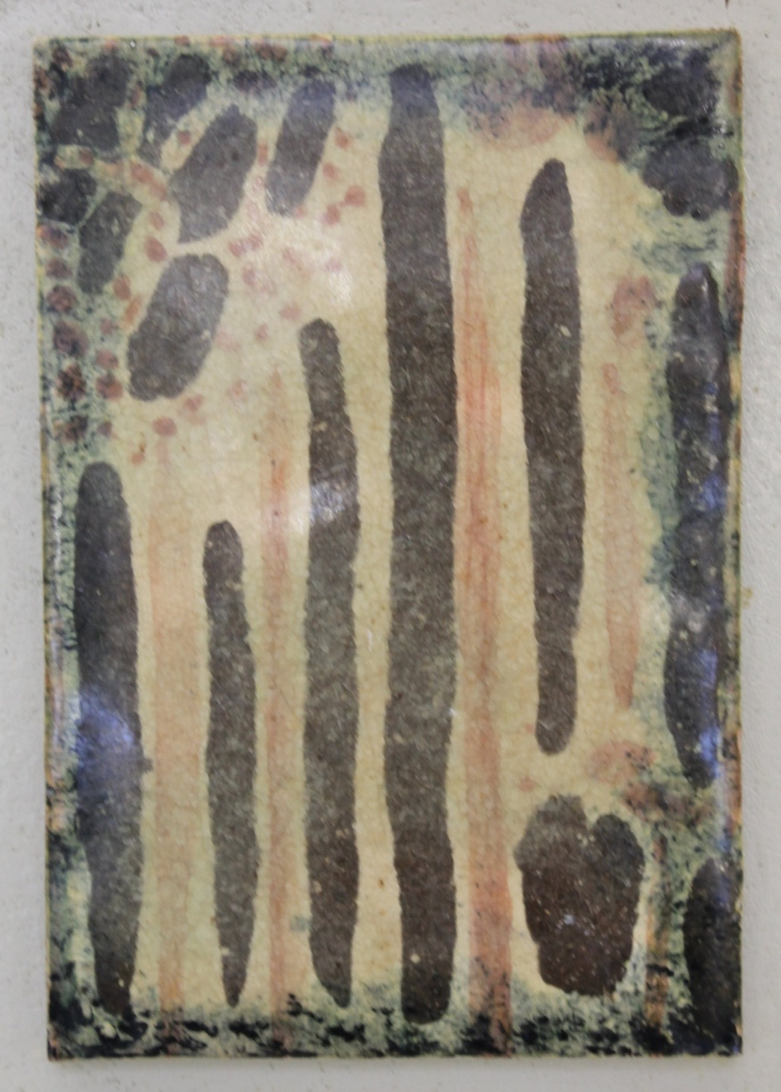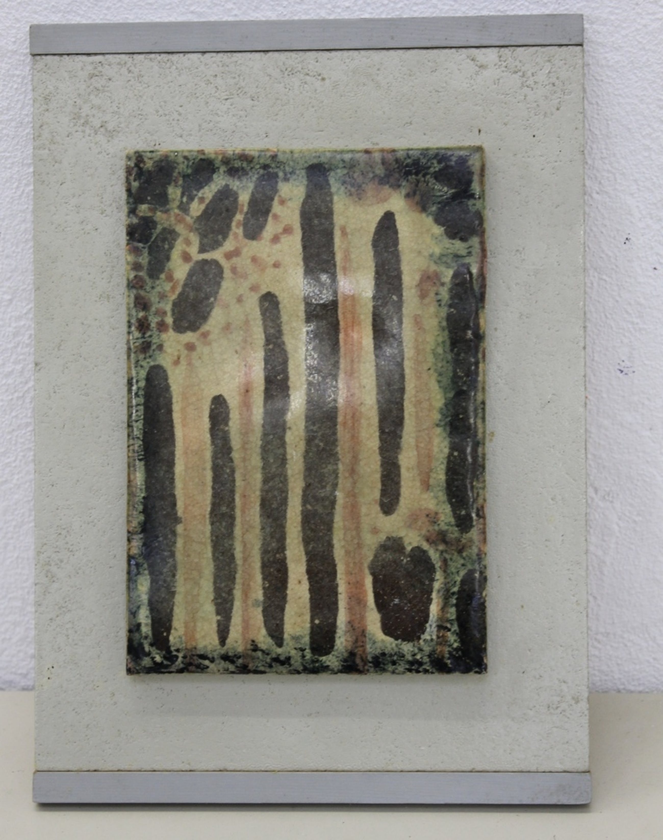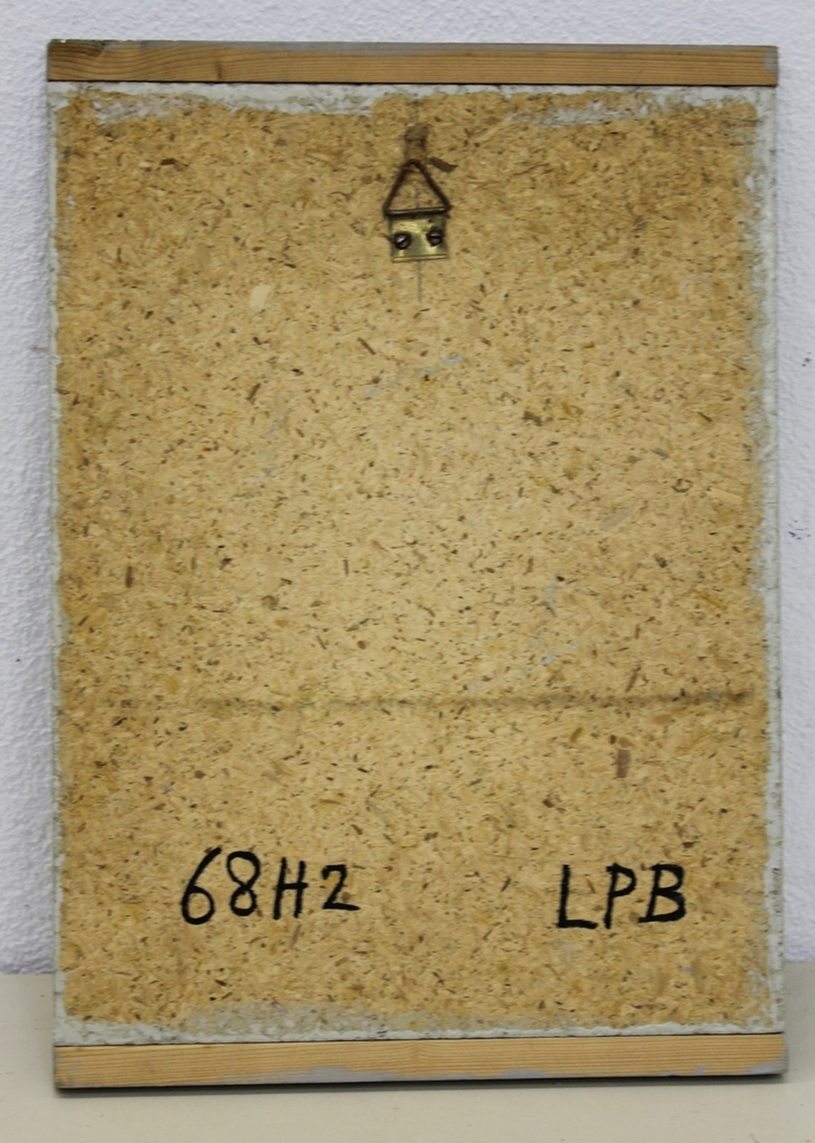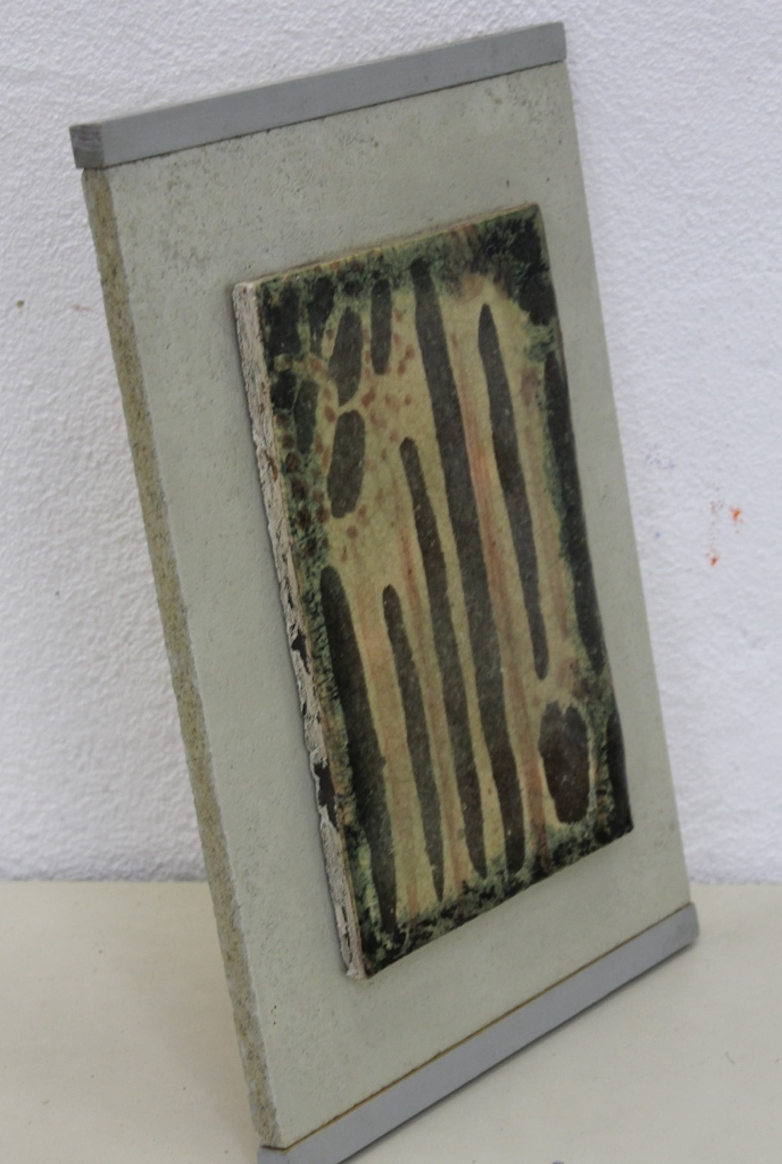 afmeting tegel 23 x 16 cm, bevestigd op geverfd spaanplaat 35 x 25 cm