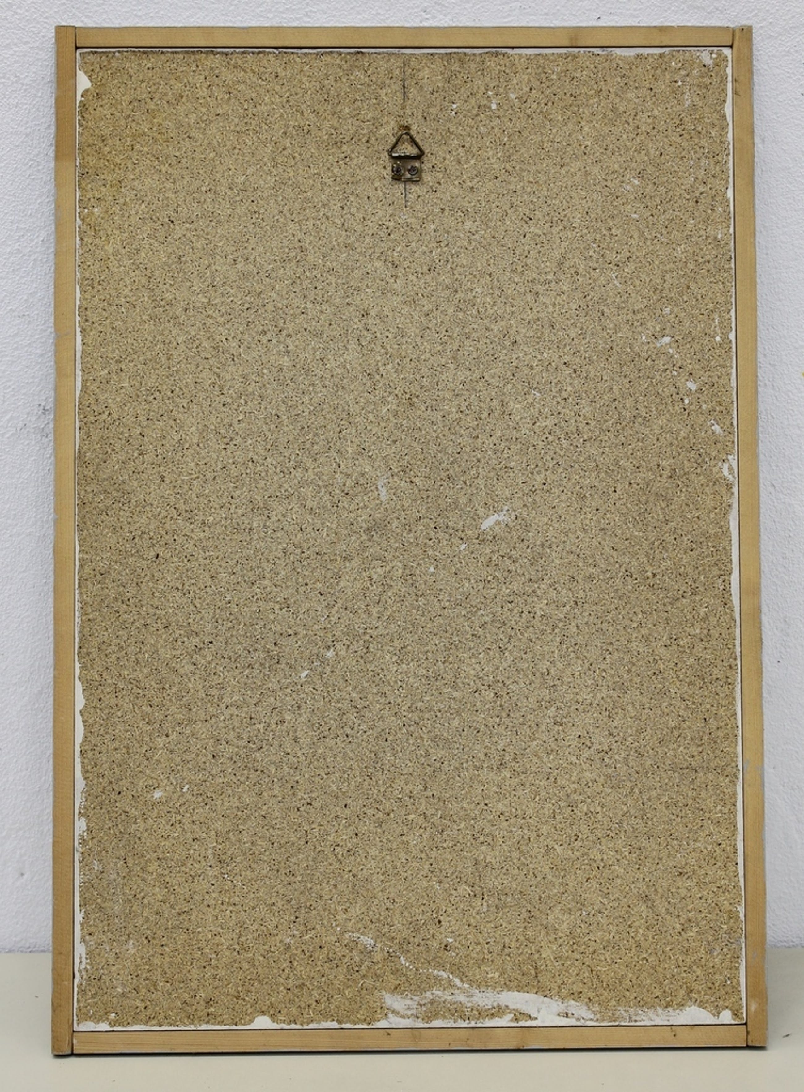 Gouache op papier geplakt op spaanplaat, bevestigd op groter bord.