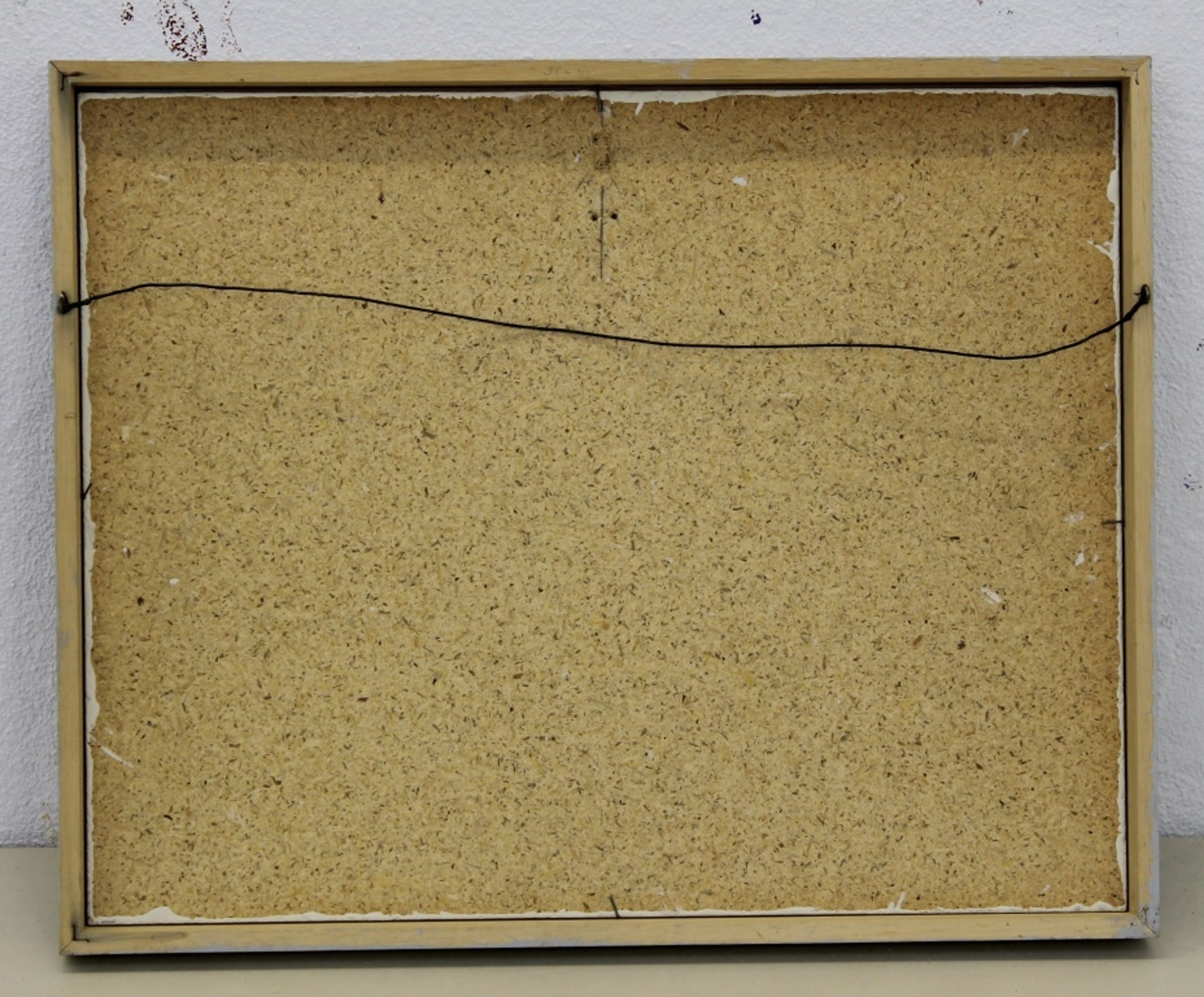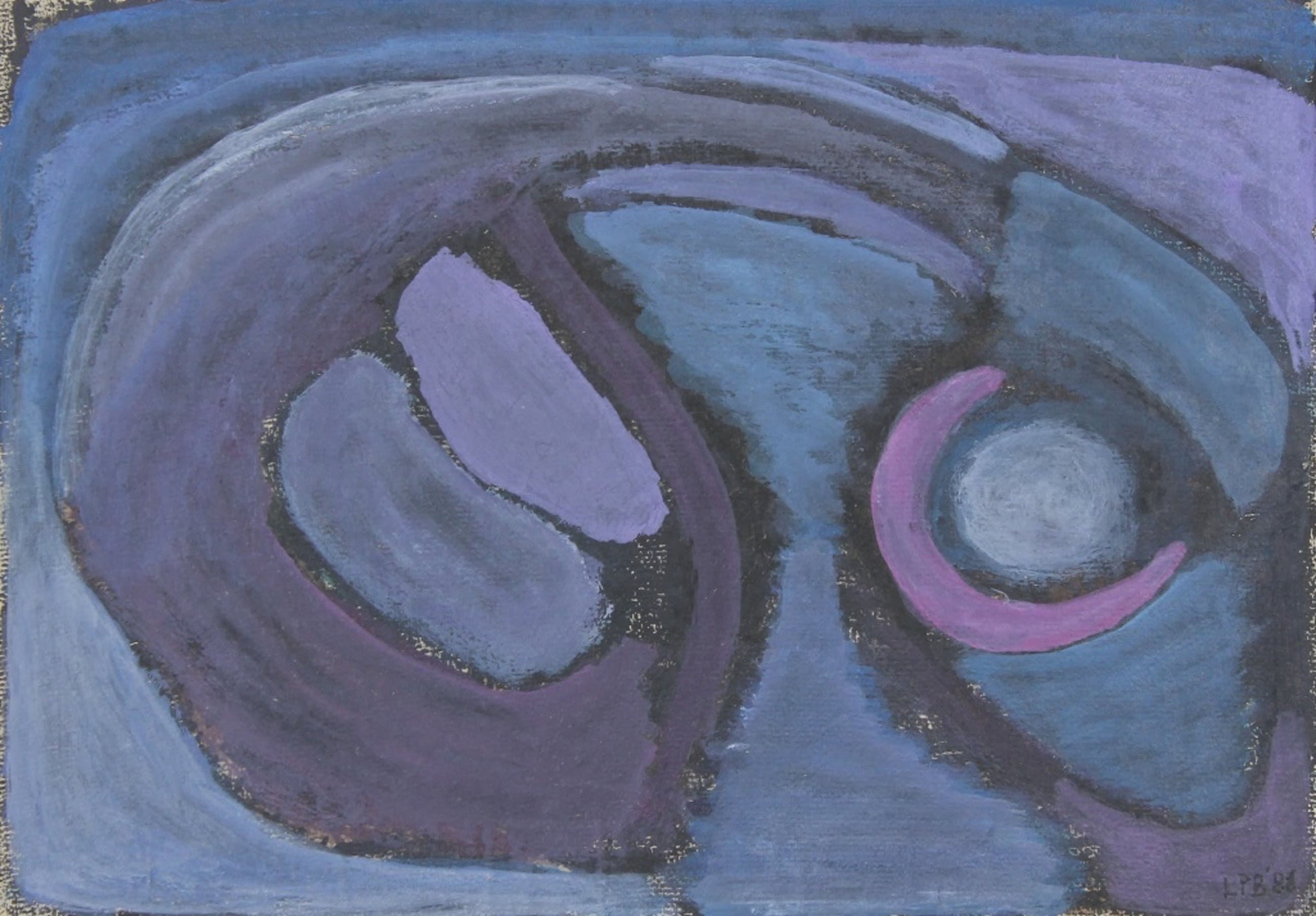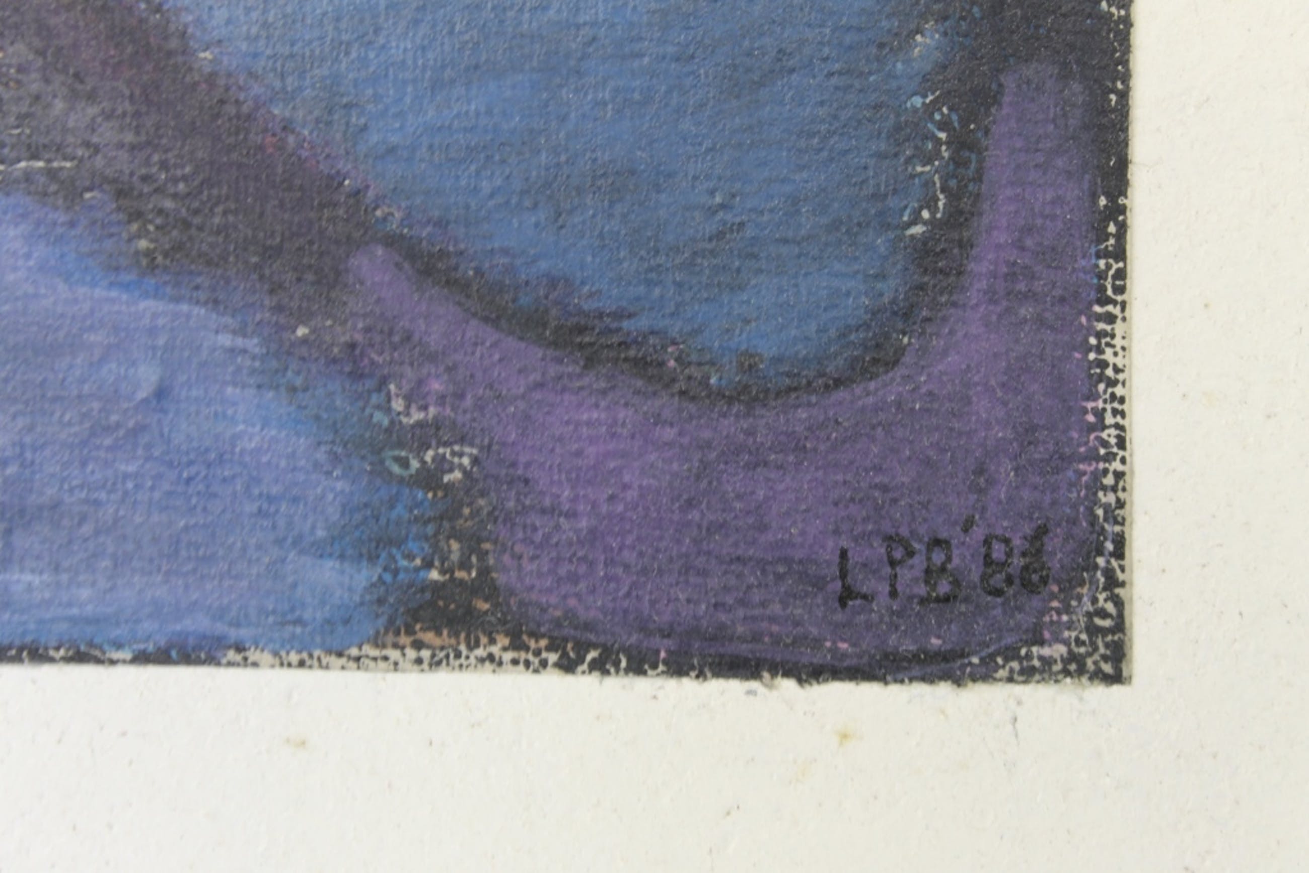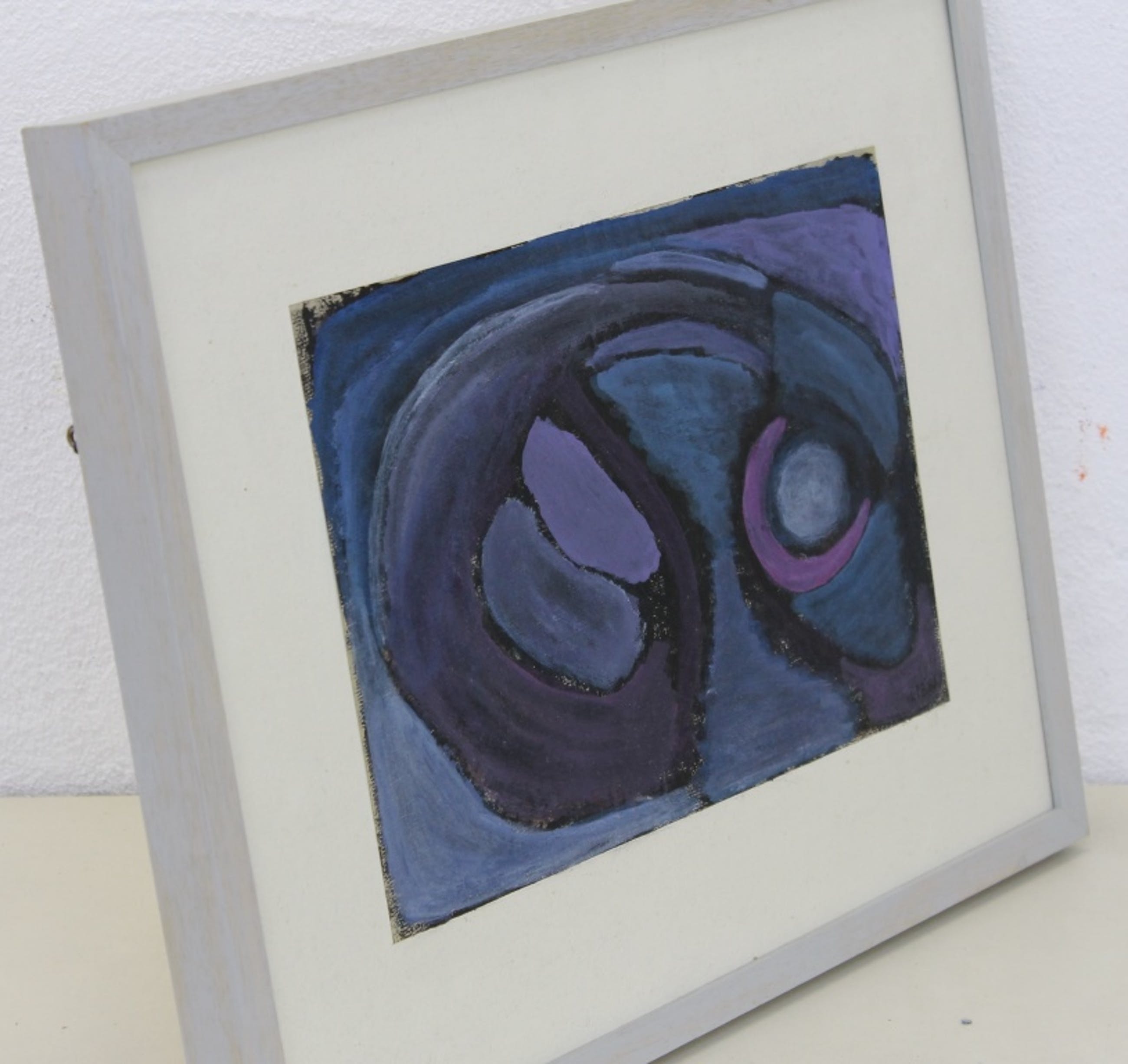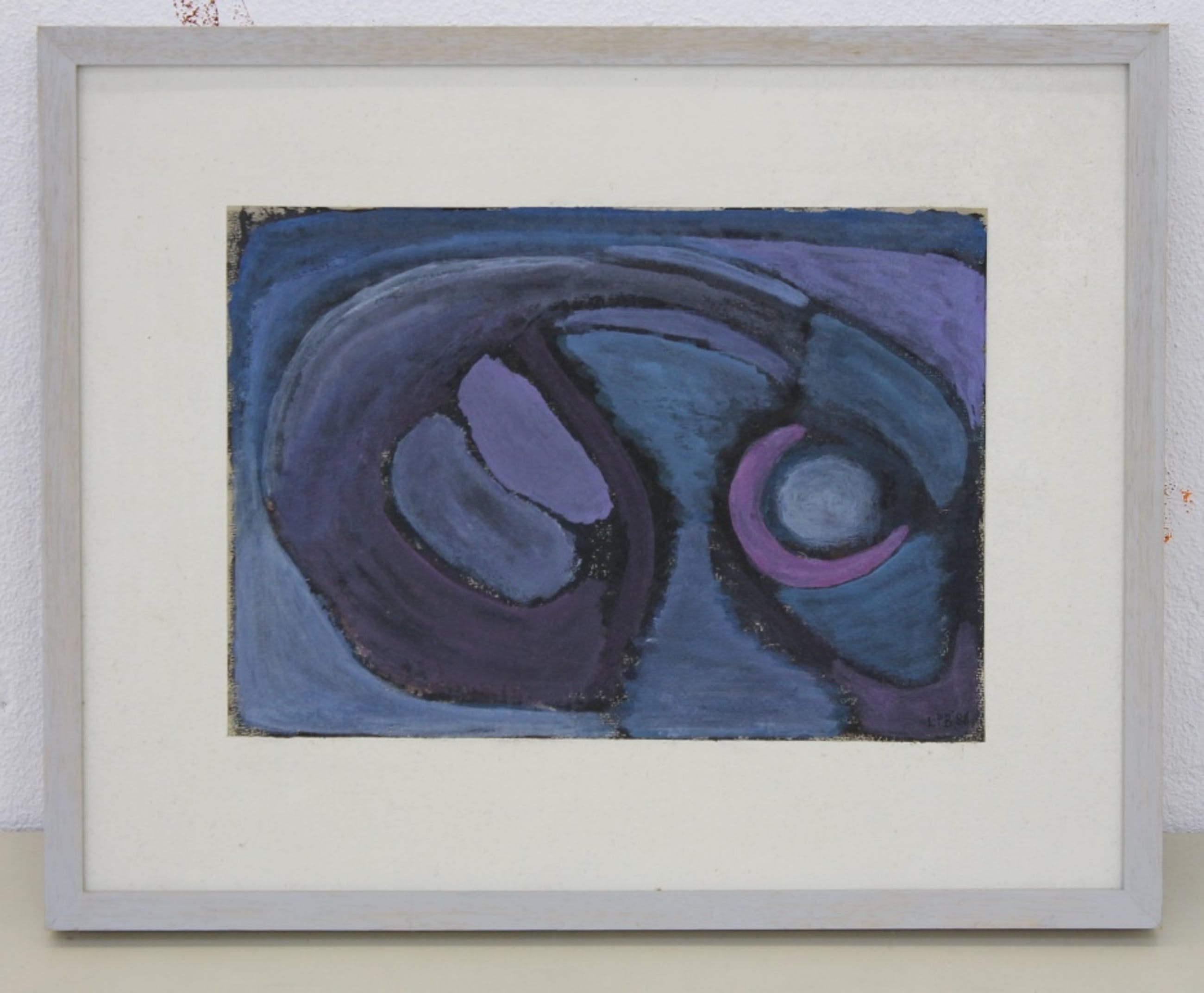 Kleine abstracte gouache uit 1986 (beeldmaat 22 x 31 cm), ingelijst zonder glas,