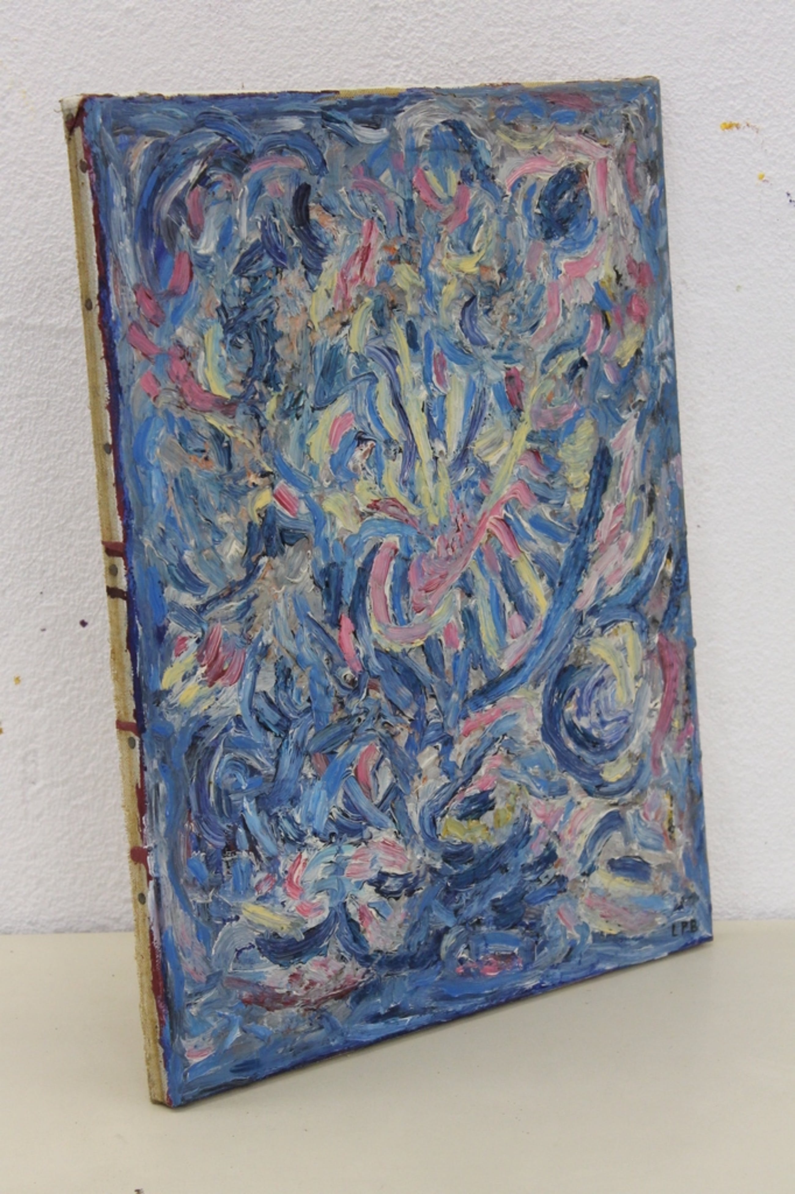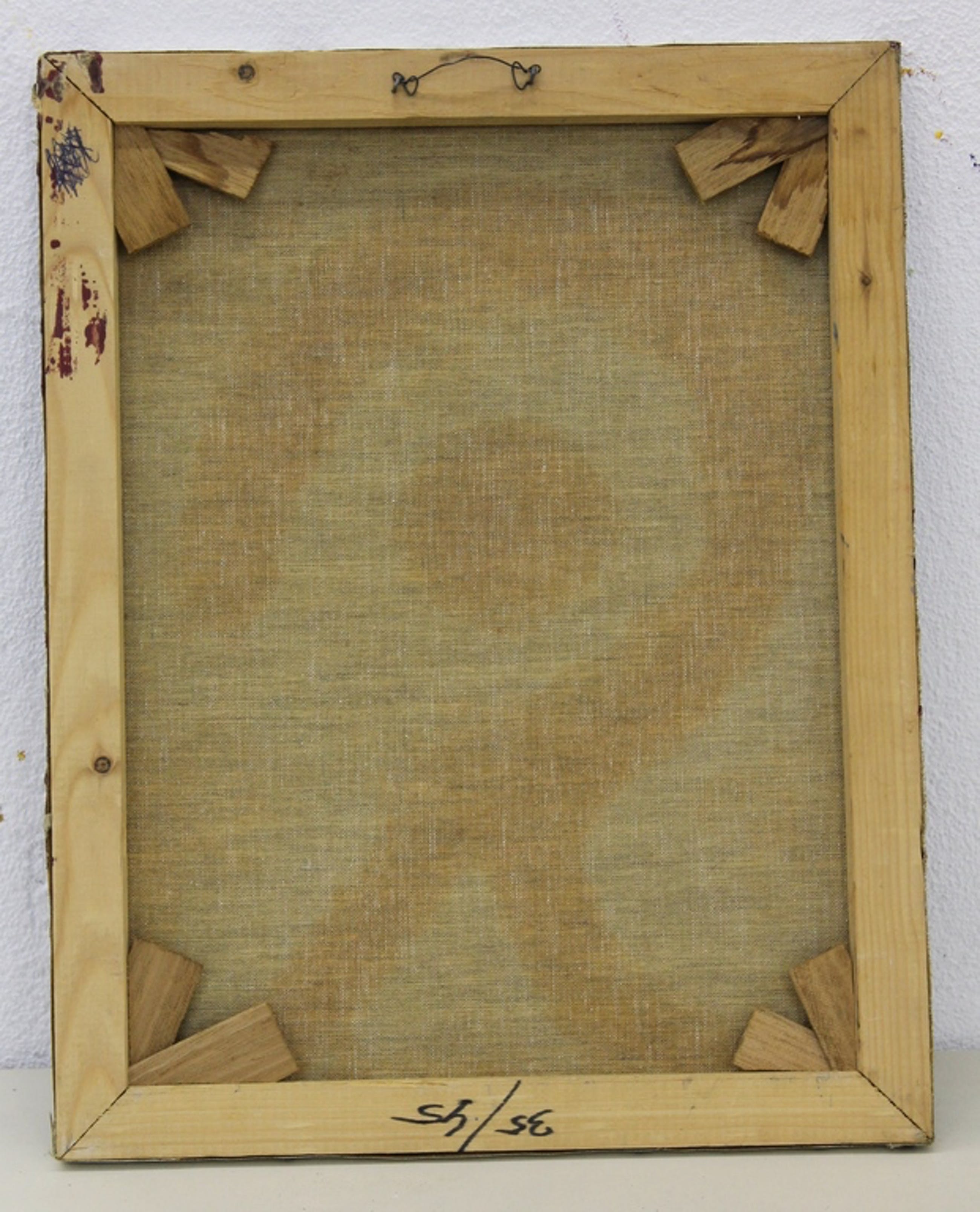 Olieverfschilderij op doek, in dikke lagen aangebracht. Het werk is gesigneerd maar heeft geen jaartal. Het is vermoedelijk rond 1980 gemaakt.