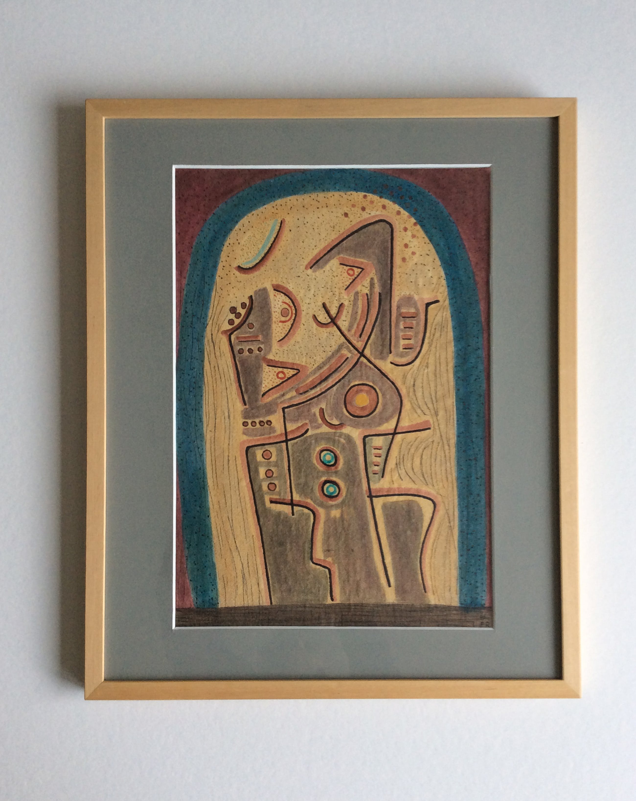 Papier op hout, afmeting beeld 30 x 45 cm, incl. houten lijst 48 x 58 cm