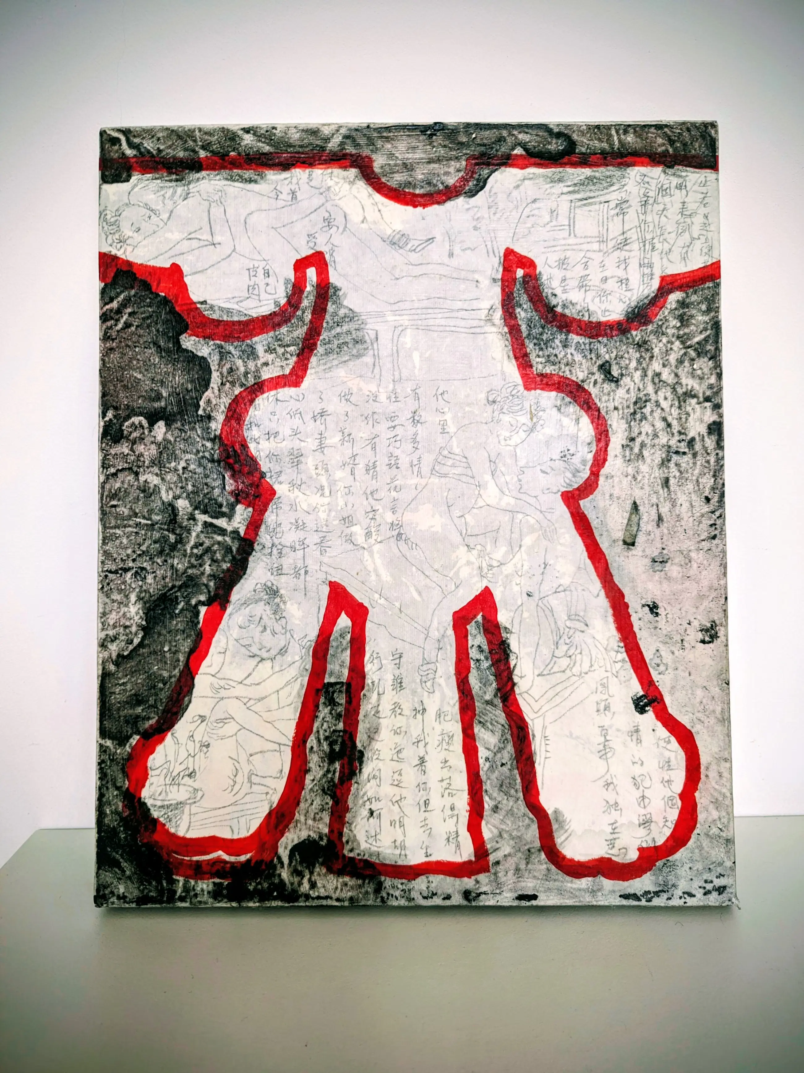 Werk afkomstig uit de vroege periode van Lu Luo (2004), waarin de kunstenaar experimenteert met gelaagde structuren en figuratieve abstractie. De combinatie van gemengde techniek en expressieve lijnen is typerend voor haar ontwikkeling in deze jaren. Het werk is aangekocht via Galerie Majke Husstege en wordt geleverd met certificaat van echtheid.