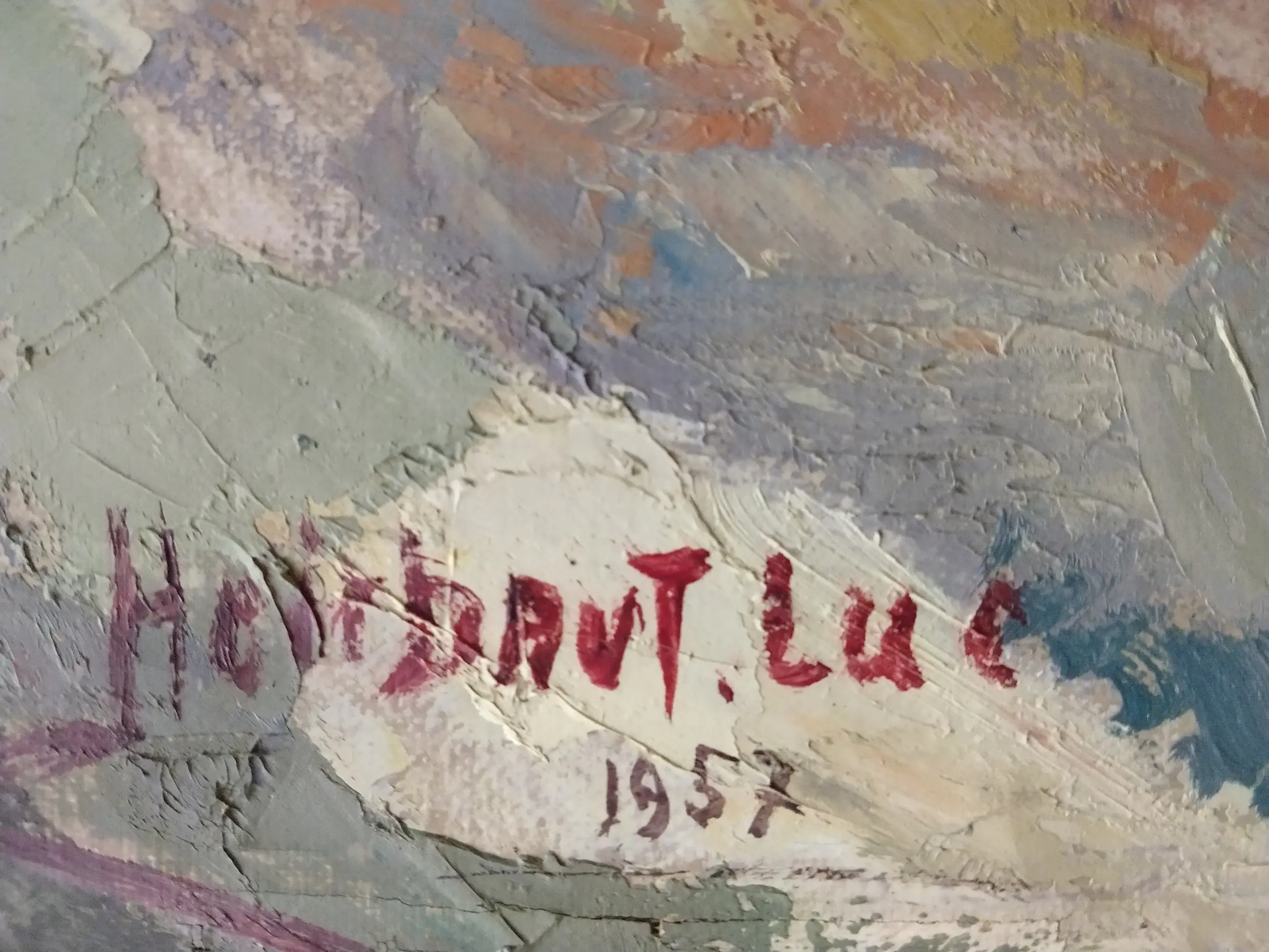 Luc Heirbaut was een Belgische kunstenaar geboren in 1919 te Berchem/Antwerpen en gestorven in 2014 te Nieuwkerken-Waas. Hij was een schilder. Opleiding aan de Academie te Sint-Niklaas o.l.v. S. Wijnants, G. Fonteyn, J. Horenbant. Grondlegger van het Vrije Kunstsalon te Nieuwkerken. Schilderde portretten, landschappen, stillevens en religieuze taferelen. Evolueerde van een expressionistisch naar een meer surrealistisch georiënteerd oeuvre. Uit de pers: ‘In zijn artistieke loopbaan zijn duidelijk twee perioden te onderscheiden. De portretten, religieuze taferelen, landschappen, straattaferelen, bloemen, enzovoort uit de beginperiode vertonen een sterk expressionistische inslag terwijl hij sedert het einde van de jaren ’60 surrealistische doeken schildert.’ Vermeld in BAS I en twee eeuwen signaturen van Belgische kunstenaars. (PIRON)