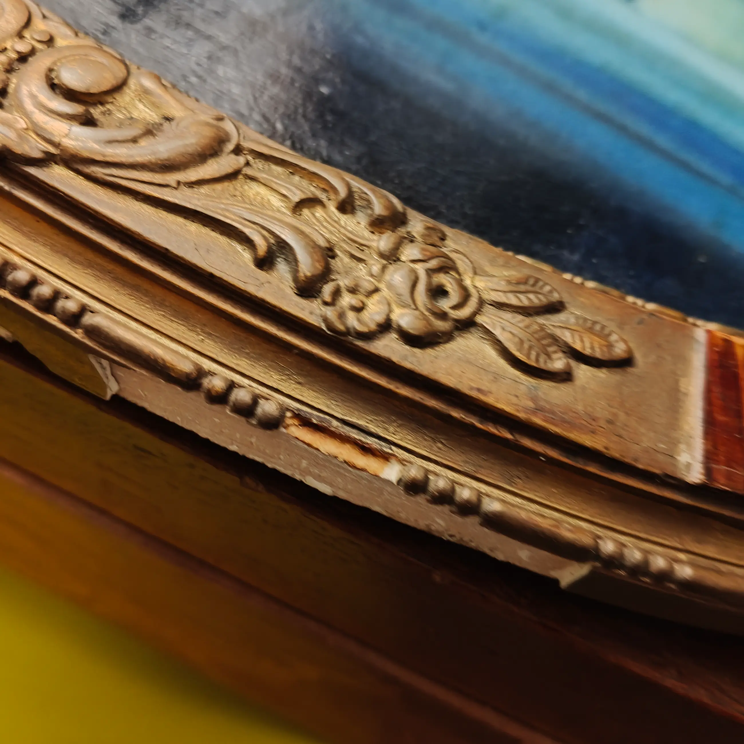 ✔ Origineel olieverfschilderij op paneel ✔ Dubbel gesigneerd (voor- en achterzijde) ✔ Uitstekende staat (schilderij) ✔ Originele decoratieve lijst (met beschadigingen)