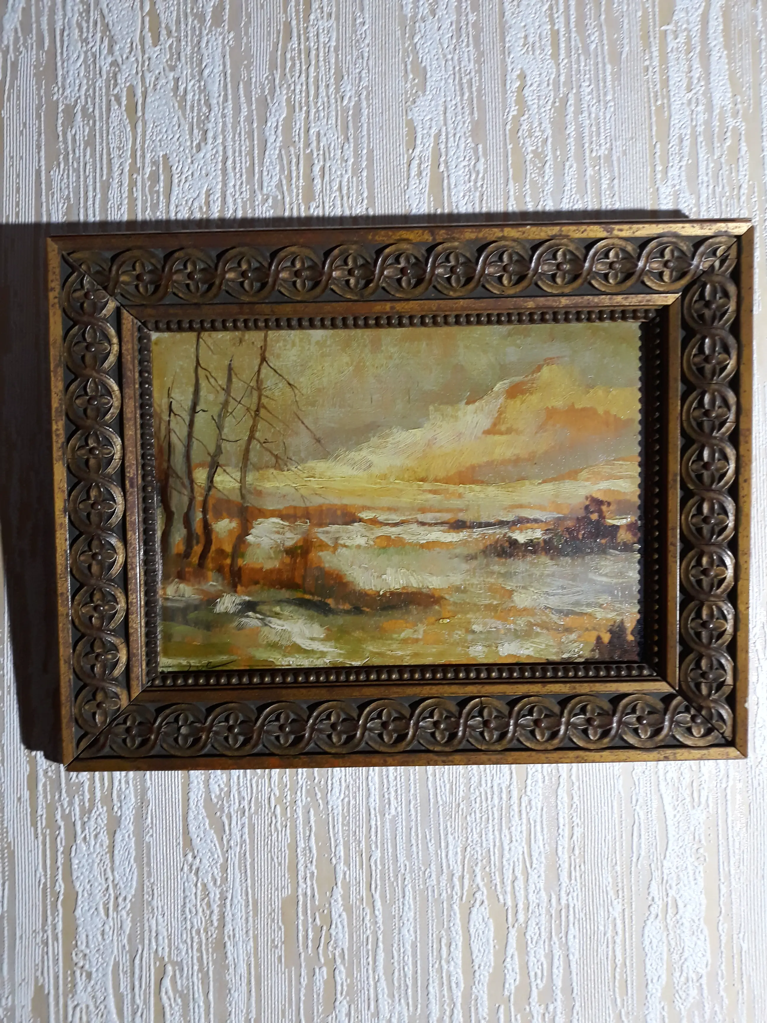 Handgesigneerd. Dromerig winterlandschap. Opsturen is mogelijk, gelieve mij dan te contacteren met verzendingskosten ten uwen lasten.
