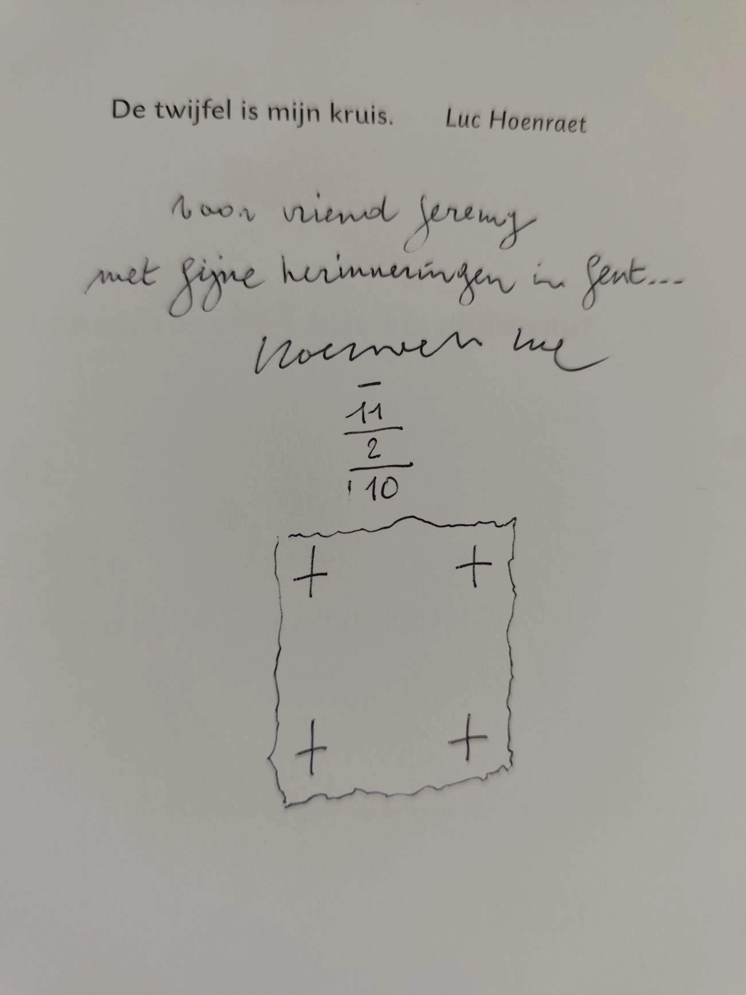 Gesigneerd door Luc Hoenraet zelf, met fijne herinneringen aan Gent in 2010.