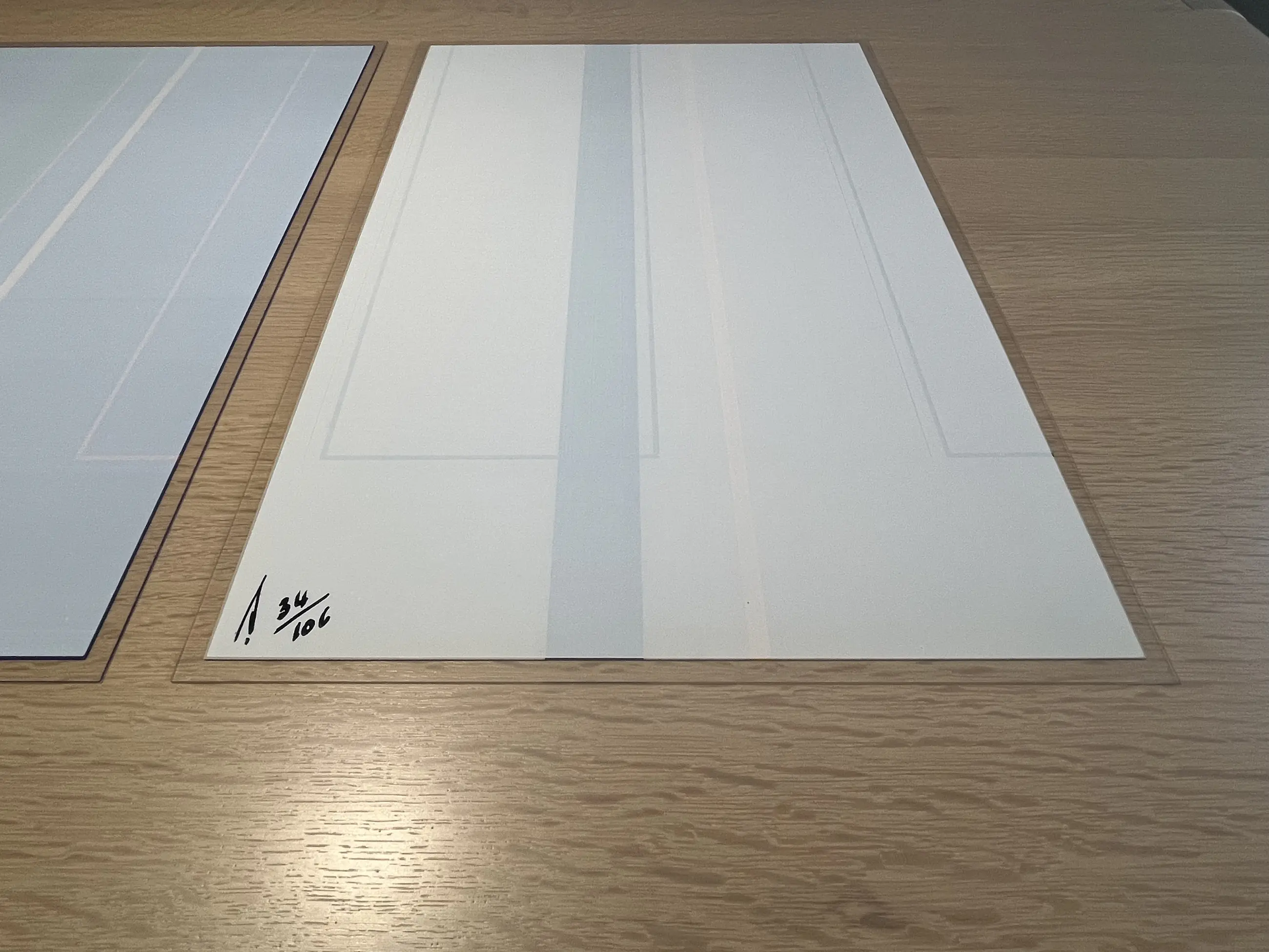Op de versozijde, door de kunstenaar, gelijk genummerd en handgesigneerd met viltstift