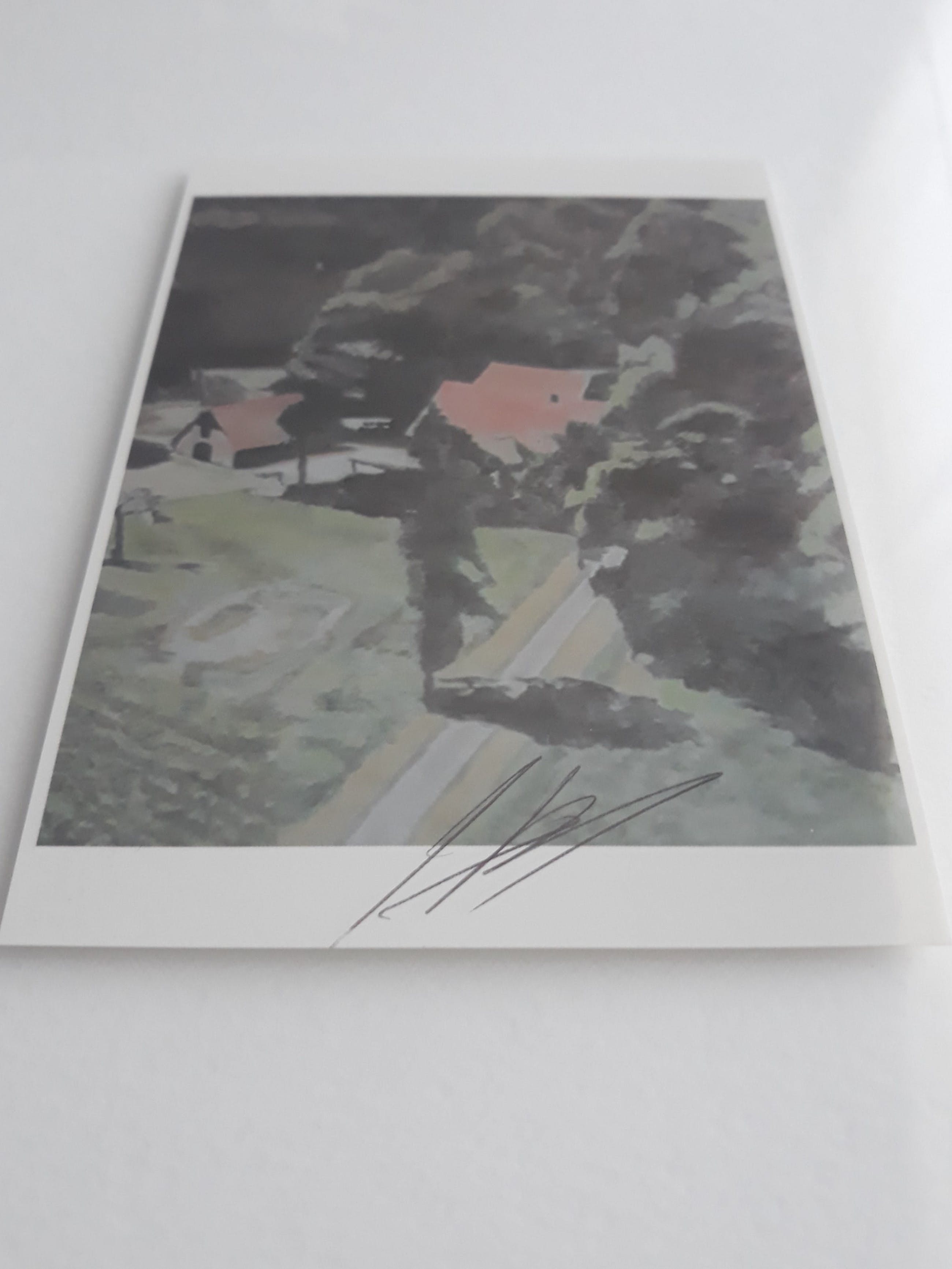 Dit is een gesigneerde kunstkaart door Luc Tuymans. Afgebeeld werk: Backyard