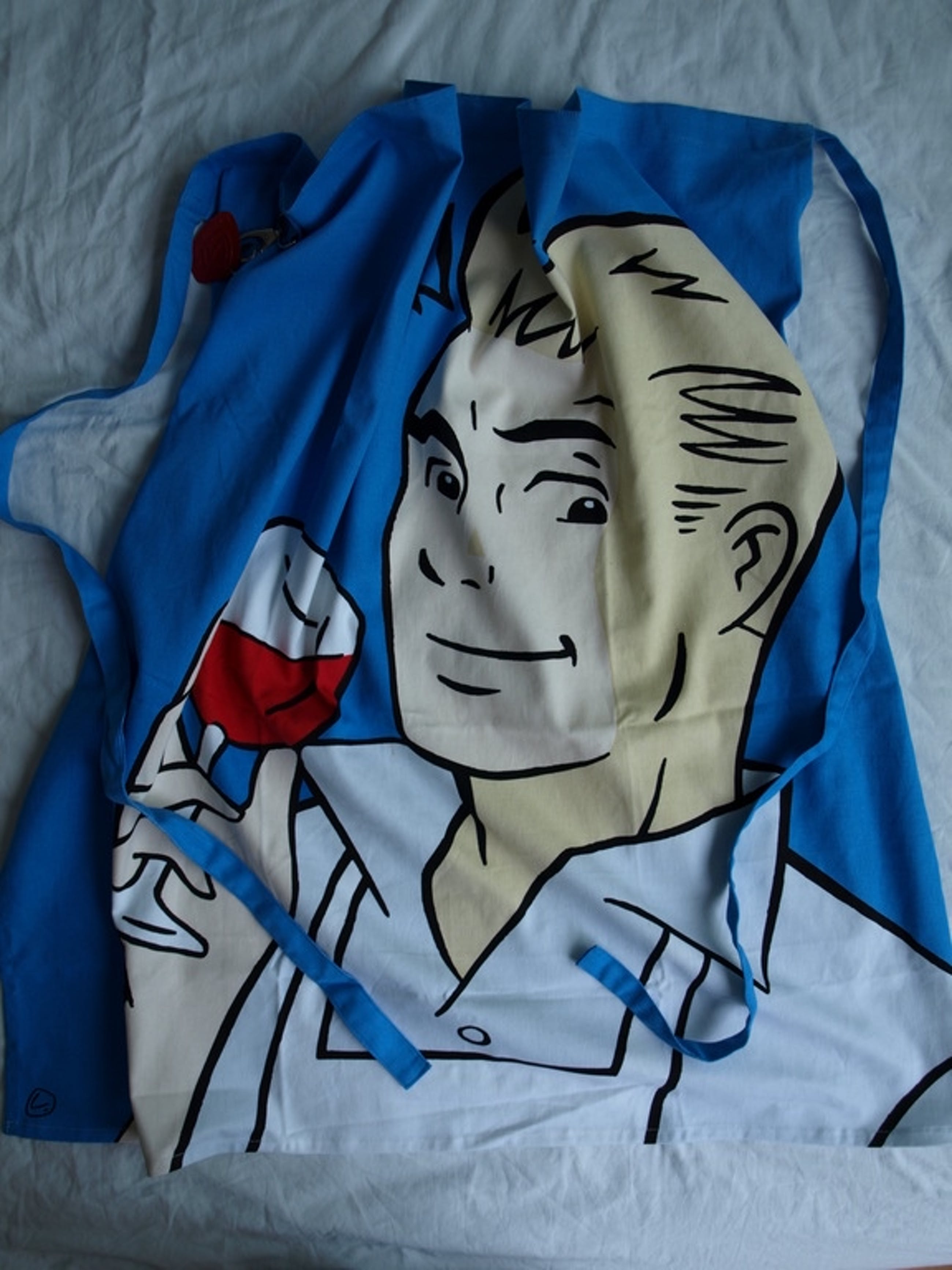 Een keuken / barbecue-schort met een afbeelding ontworpen door de Nederlandse kunstenaar Luc Verschuuren (1950).