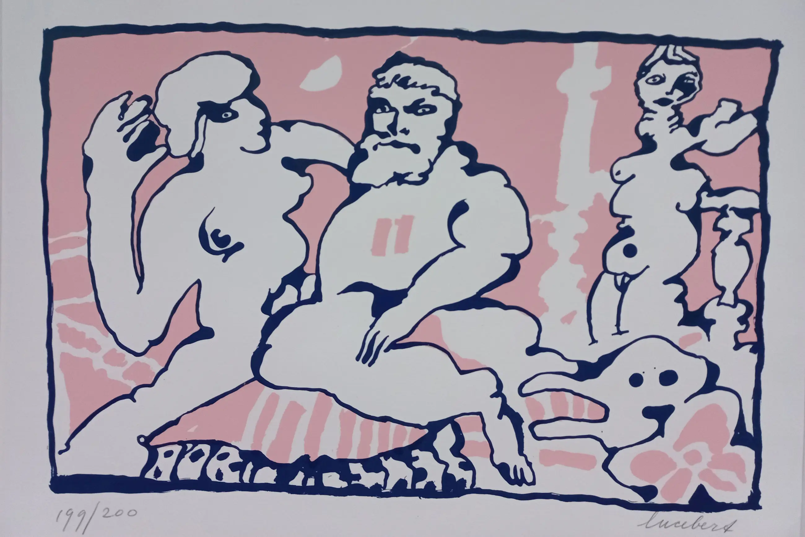 Titel: 11Zeefdruk in blauw aluminium lijst Beeldmaat 48 x 31.5 cm, lijstmaat 74 x 59 cm (b x h) Oplage 199/200 1971 Eenzelfde exemplaar bevindt zich in de collectie van het Stedelijk Museum Amsterdam.