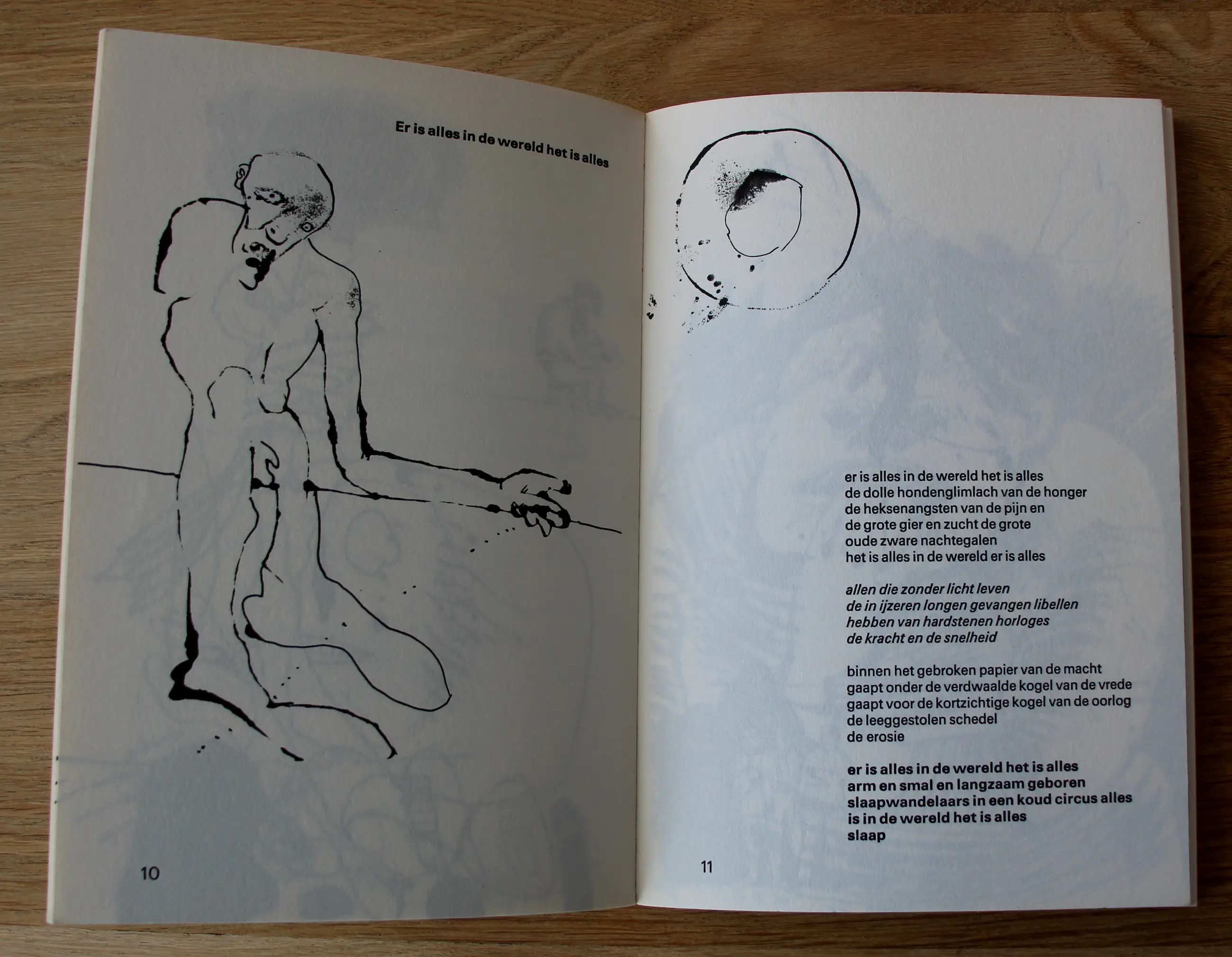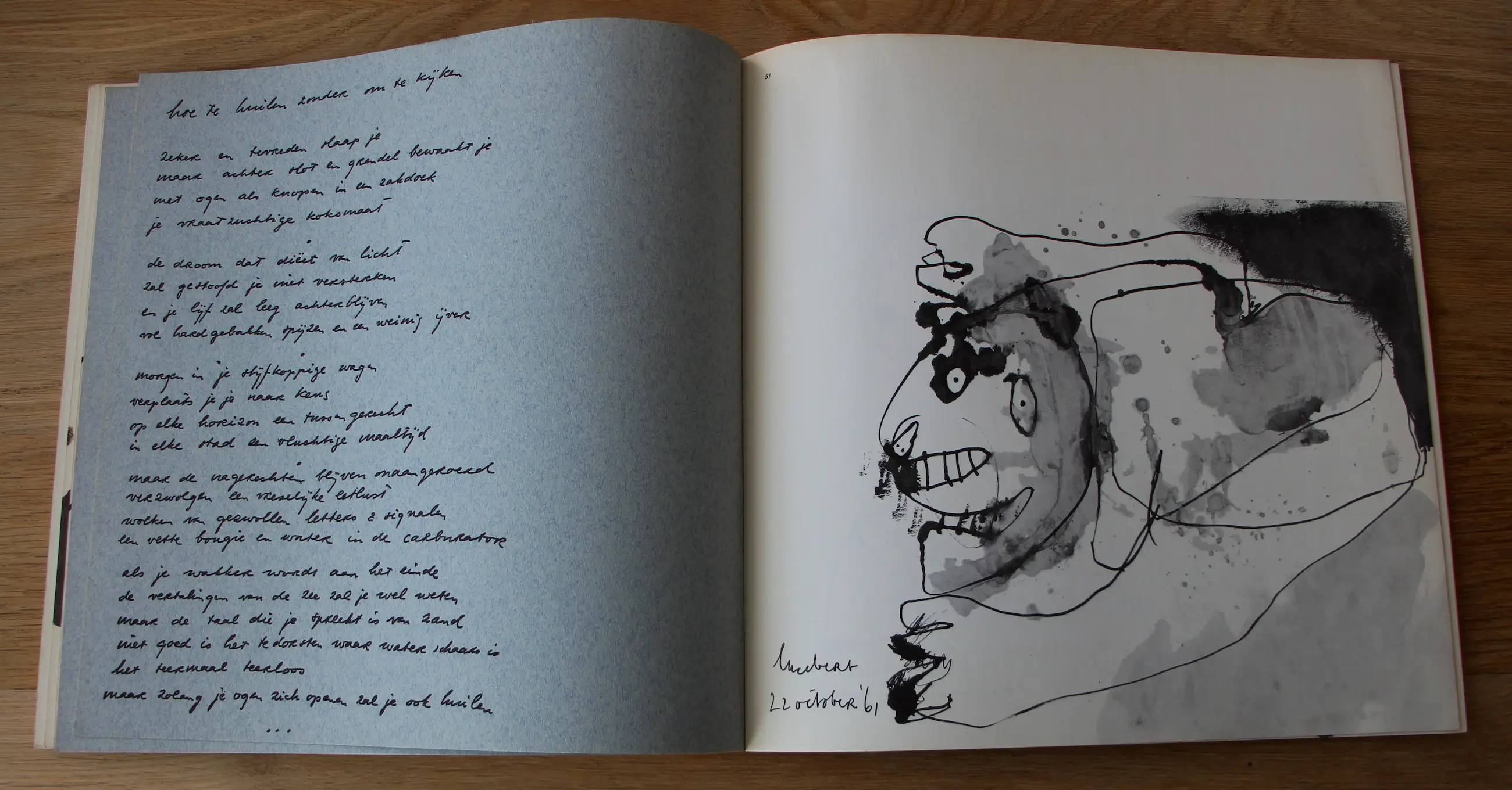 1: Drie lagen diep, tekeningen en gedichten. Uitgave Stedelijk Museum Amsterdam, 1969. Het boek heeft waterschade.