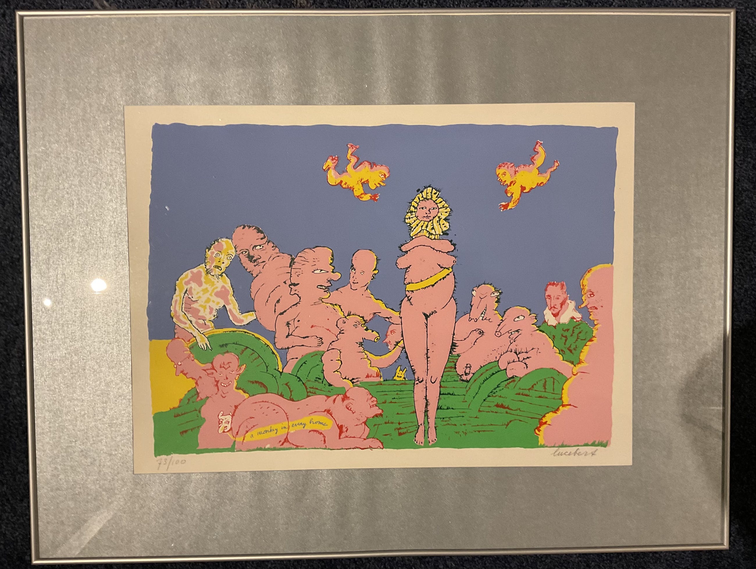 Zeefdruk van Lucebert. Titel ‘A monkey in every home’. Betreft nummer 73 van 100.