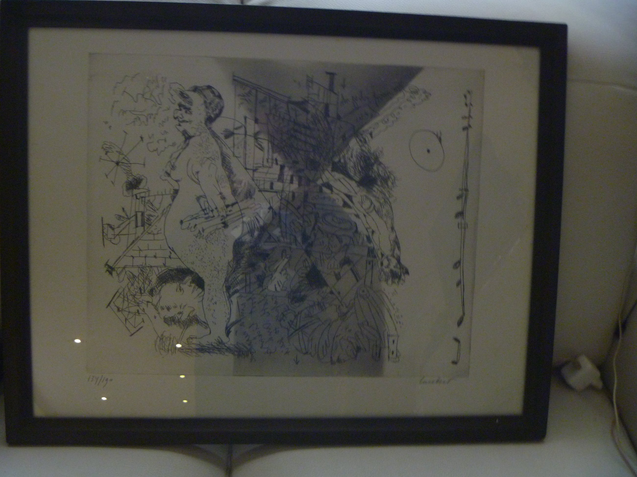 een zeer fraaie ets van Lucebert in groot formaat , genummerd en gesigneerd .