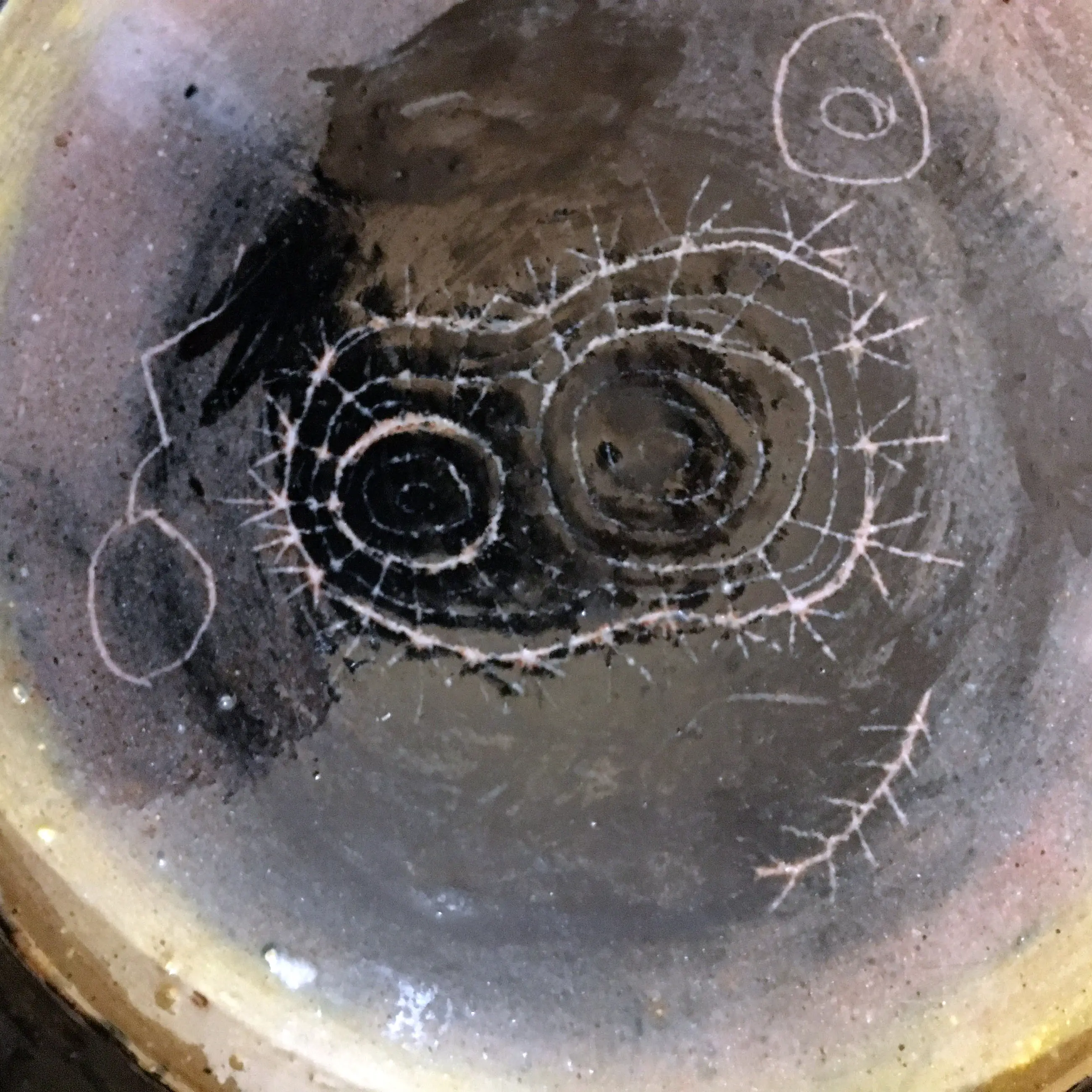Een met de hand gevormde keramische schaal, geglazuurd en gesigneerd