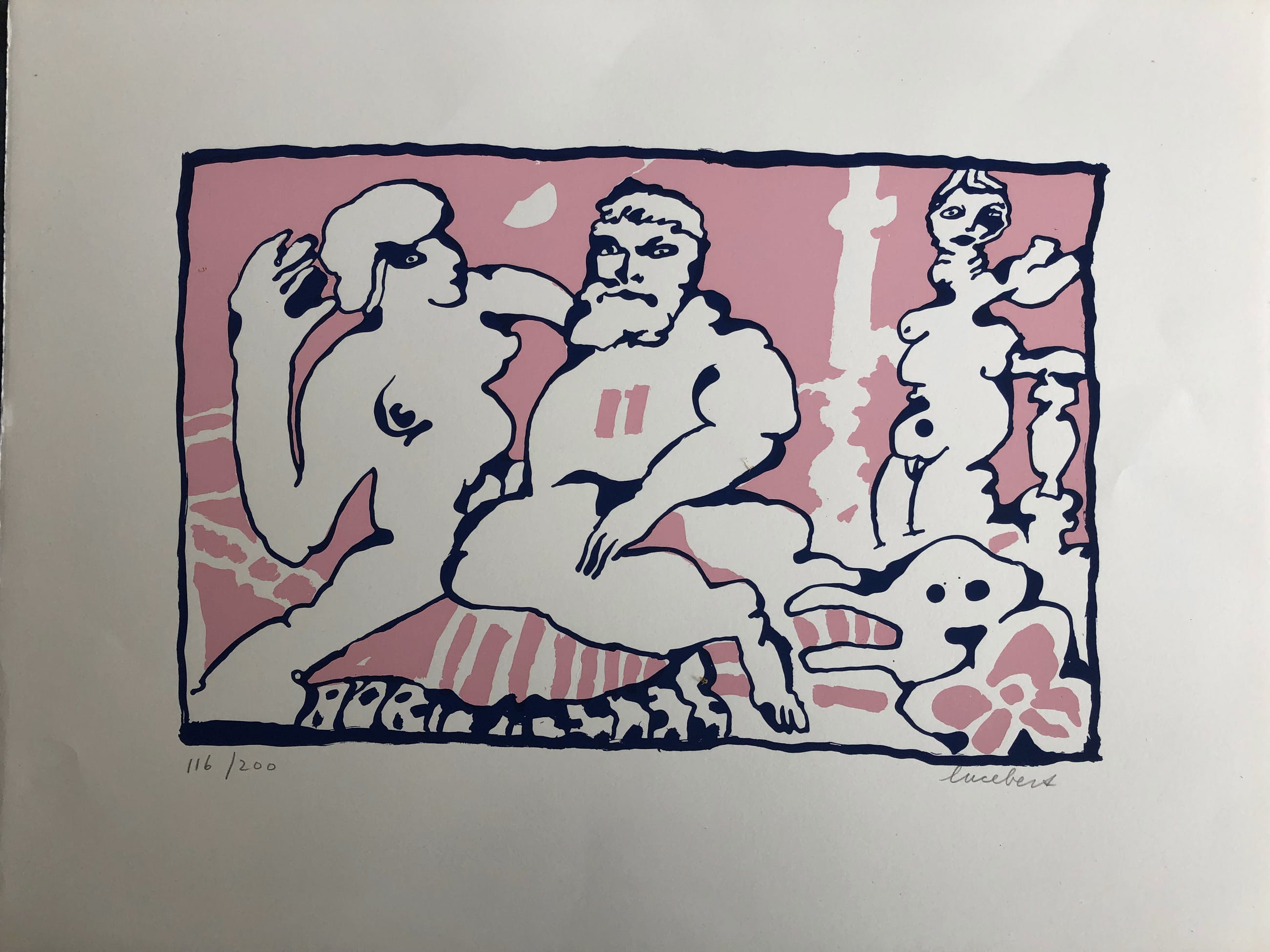 Fraaie zeefdruk in kleur op handgeschept papier. Het werk verkeert in goede staat en is nooit ingelijst geweest. Handgesigneerd en genummerd (116/200) in potlood. Afmetingen: 65,5 x 50,5 cm.